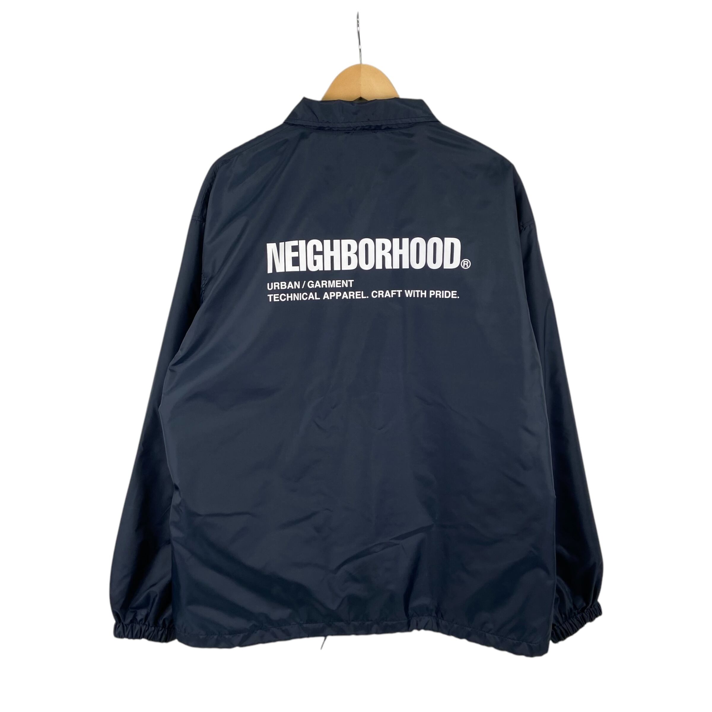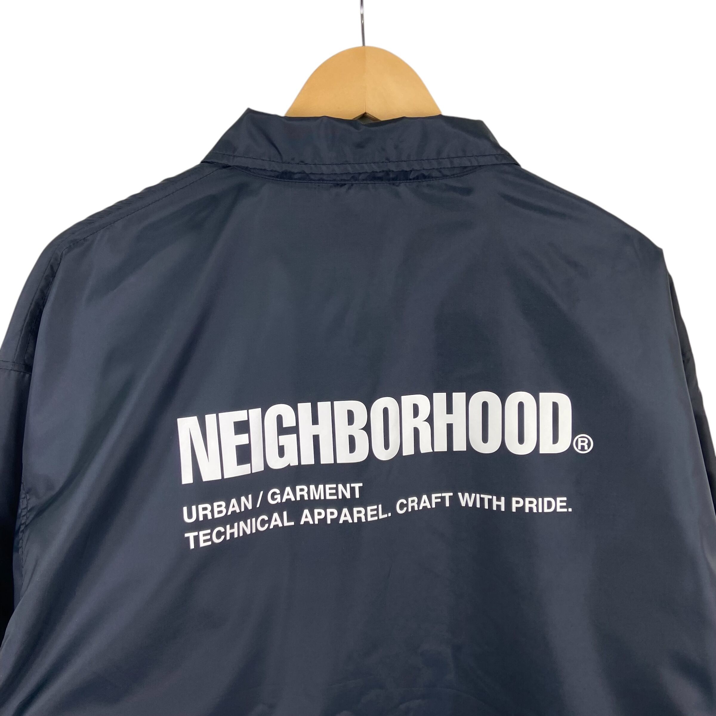 シャリ感のあるナイロンタフタを使用したネイバーフッドのコーチジャケット。フロントはスナップボタンによる開閉、左右にスラッシュポケットを配置。裏地は吸水速乾性に優れたフィールドセンサーを備え、左胸と背面にブランドロゴをプリント。