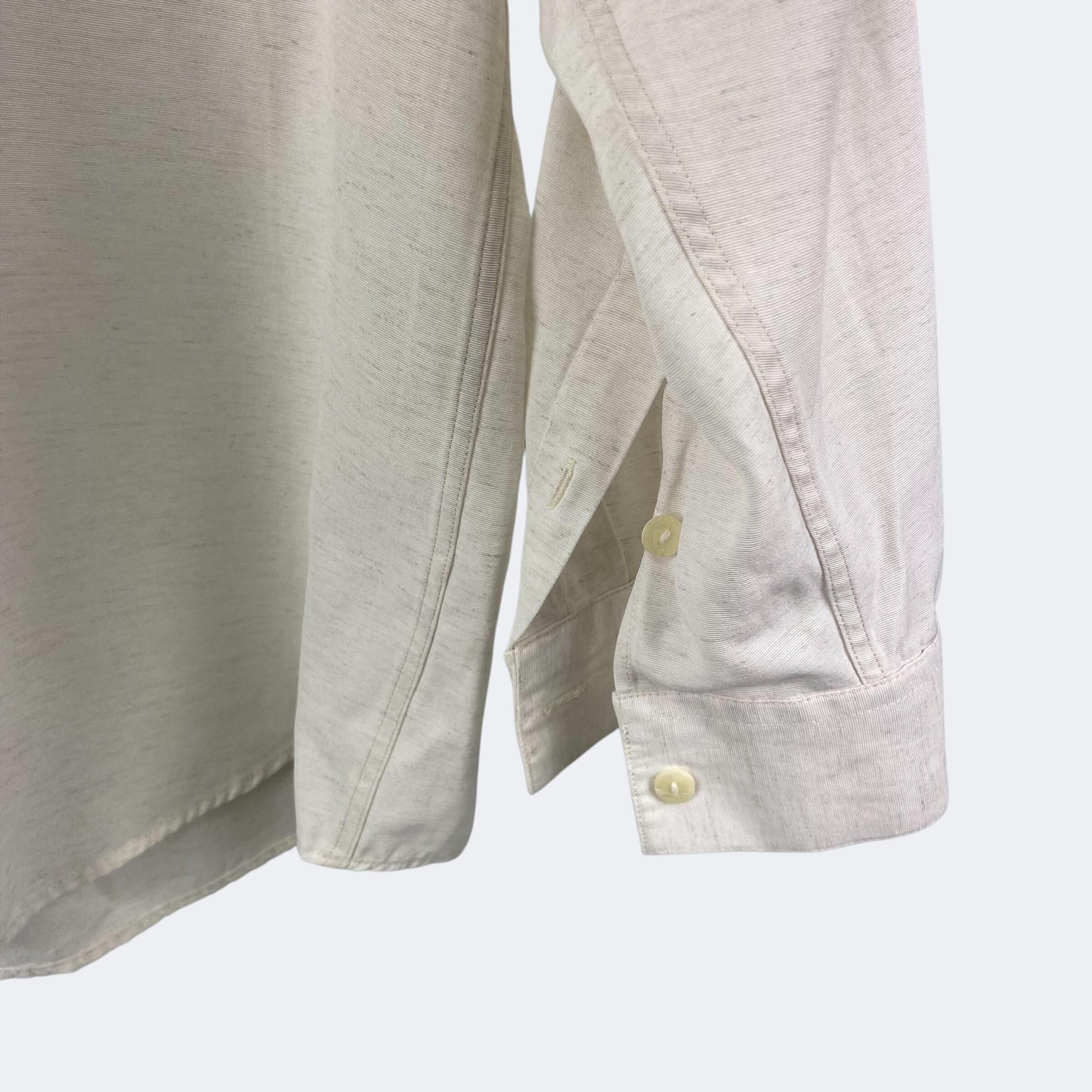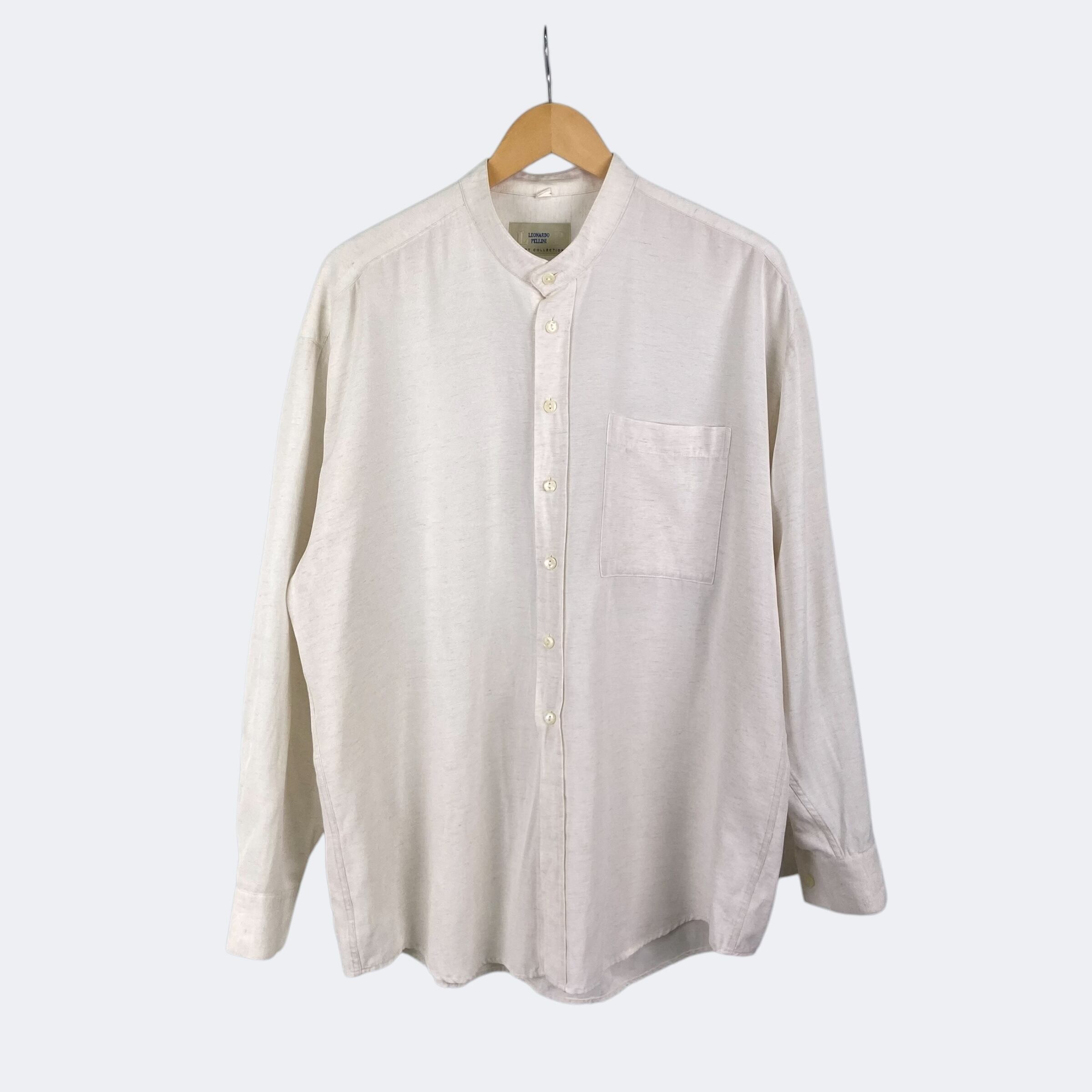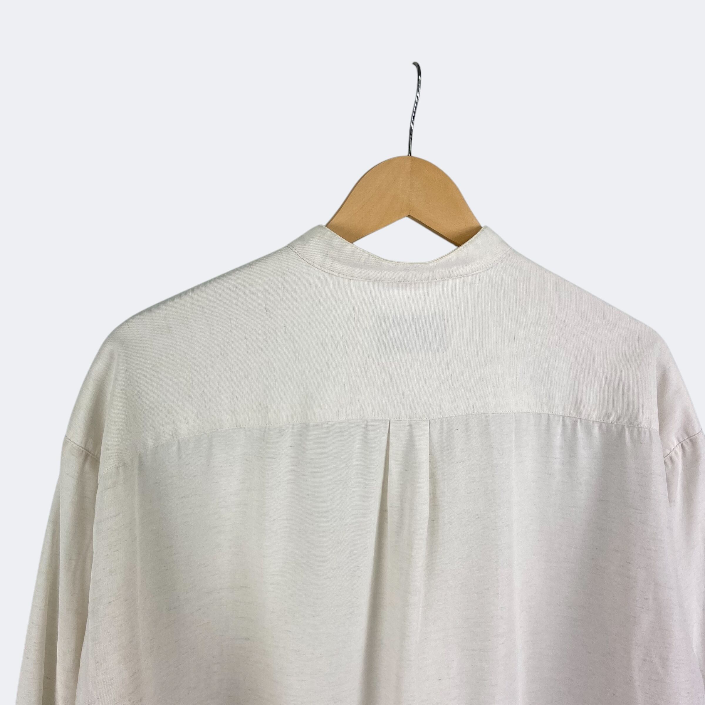 ドバイ発のブランド、レオナルド・フェリーニのスタンドカラーシャツになります。生成りの様な表情を持つ柔らかく肌触りの良い生地を使用しており、胸にはポケットが付く仕様です。