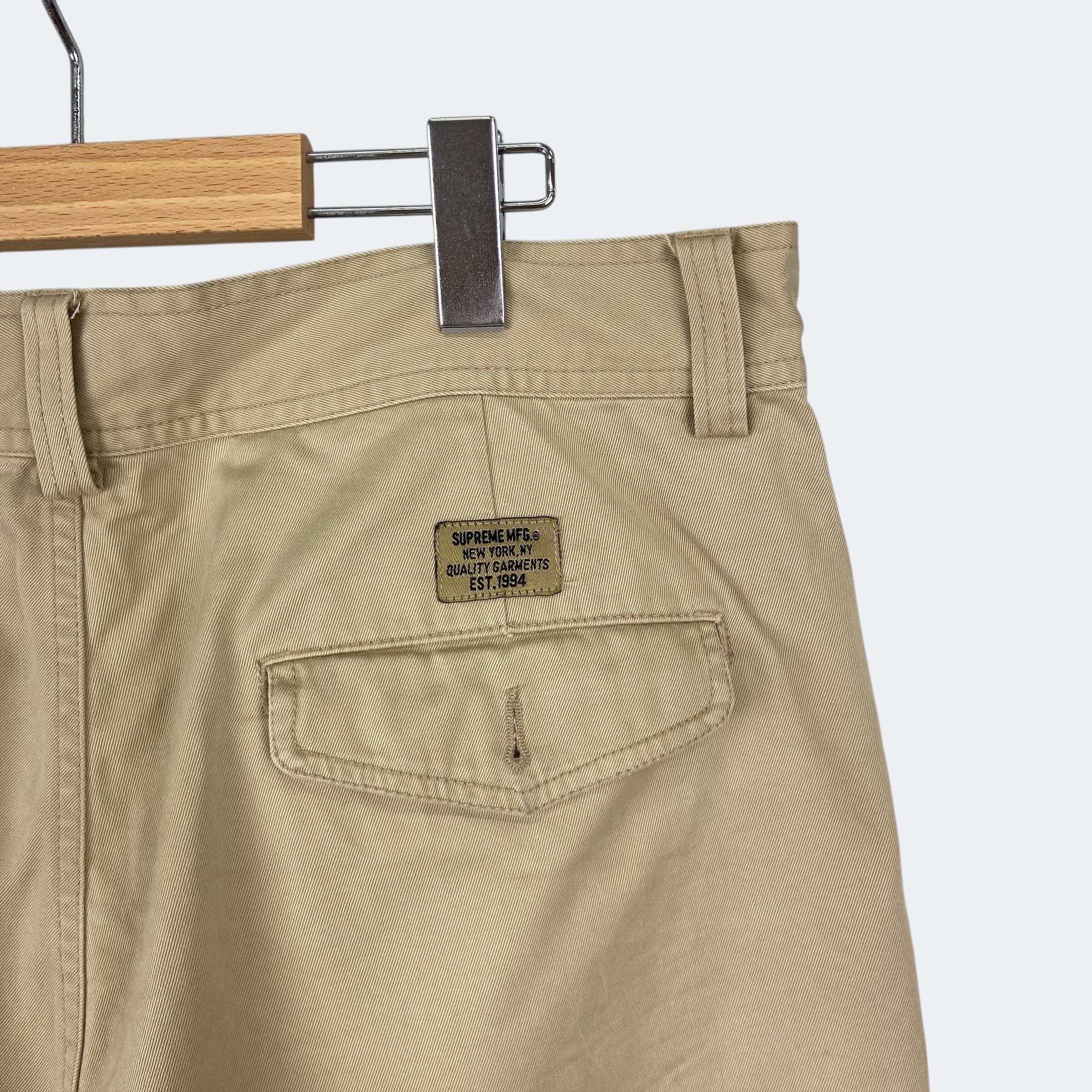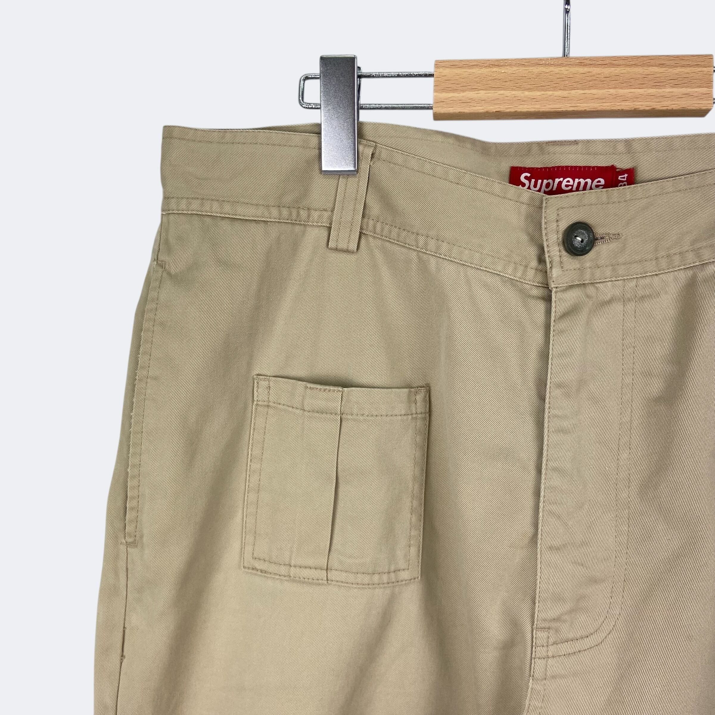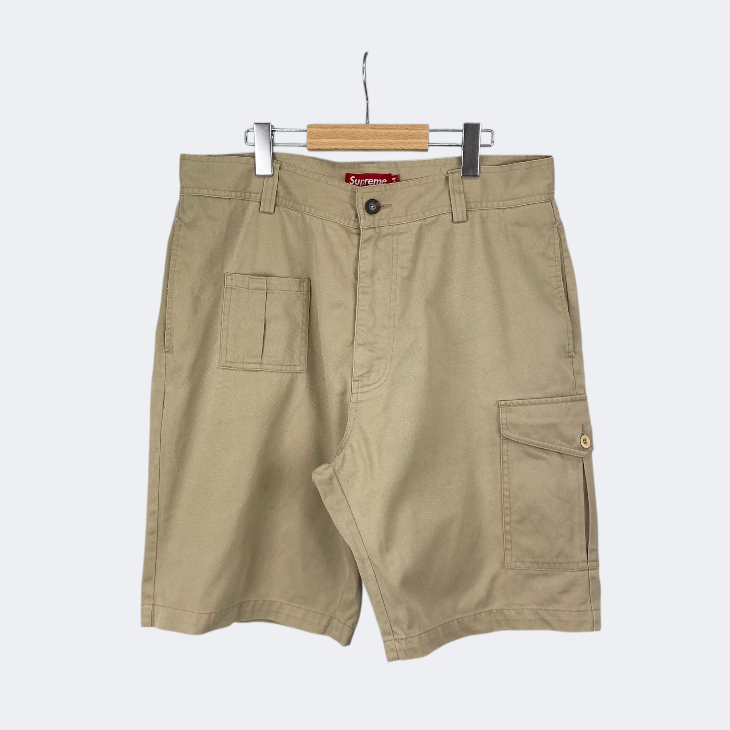 チノ素材を使用したシュプリームのカーゴショートパンツになります。フロントポケット、ユーティリティーポケット、カーゴポケット、バックポケットからなる計6ポケット仕様になります。ボタン留のジップフライになり、バックには織りネームタグが付きます。