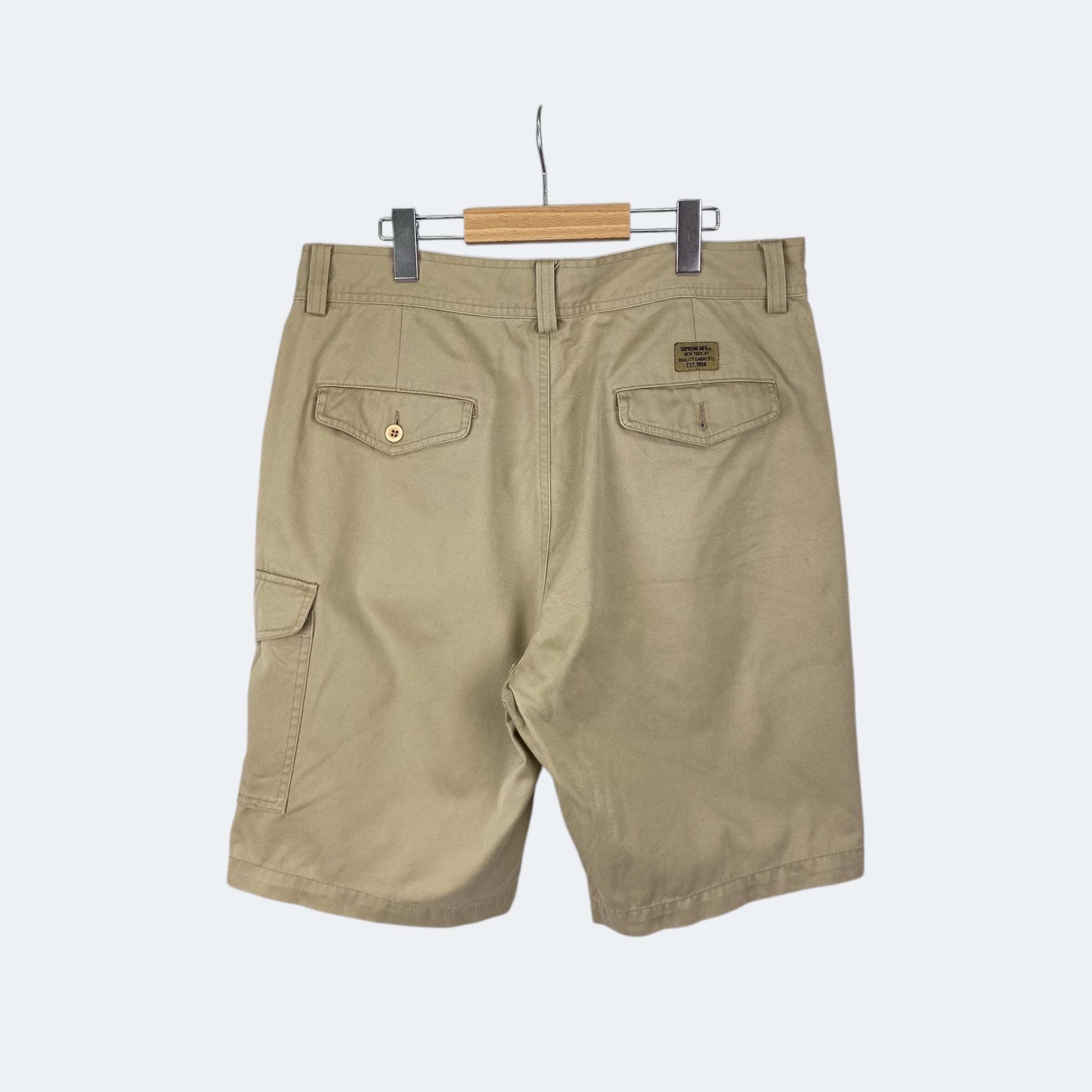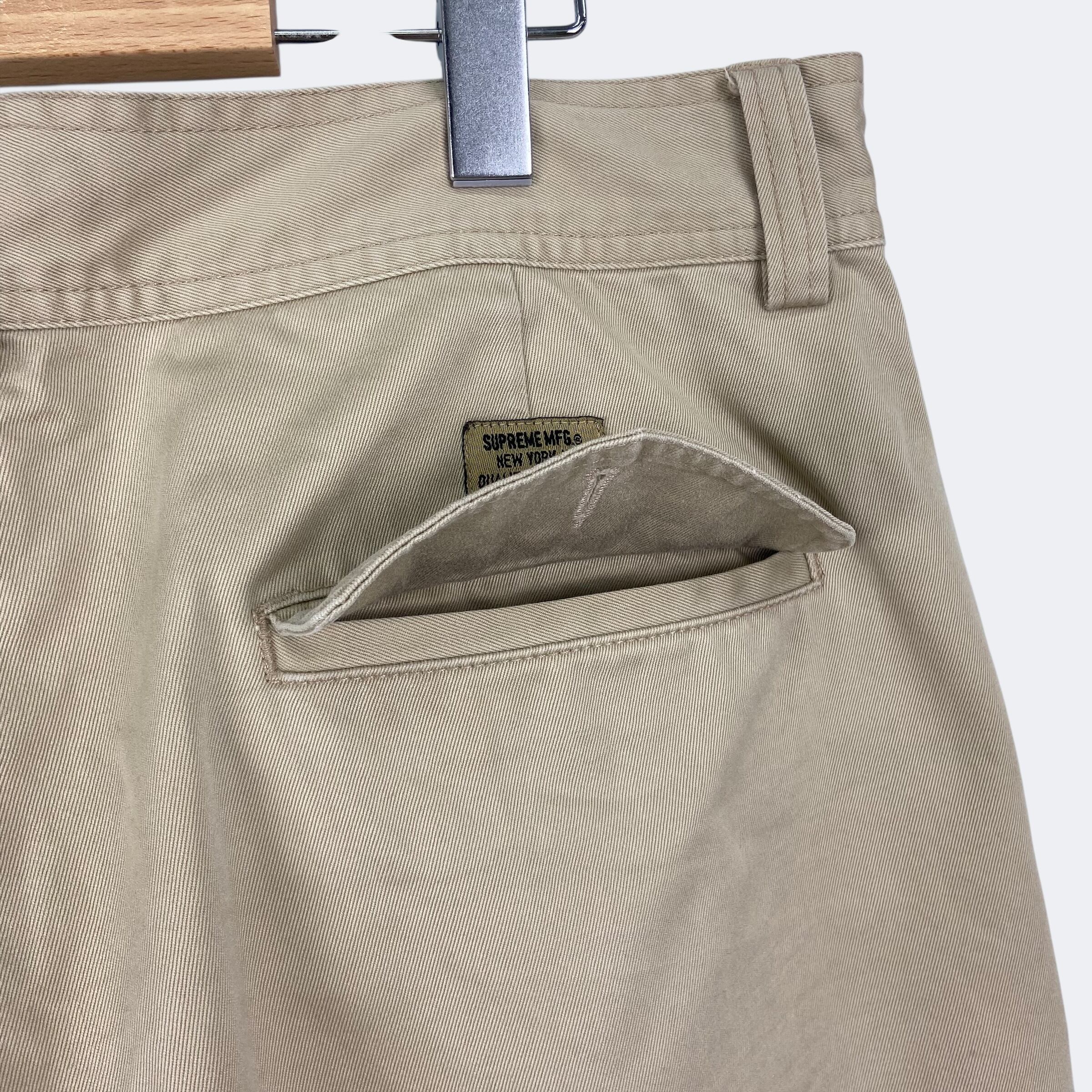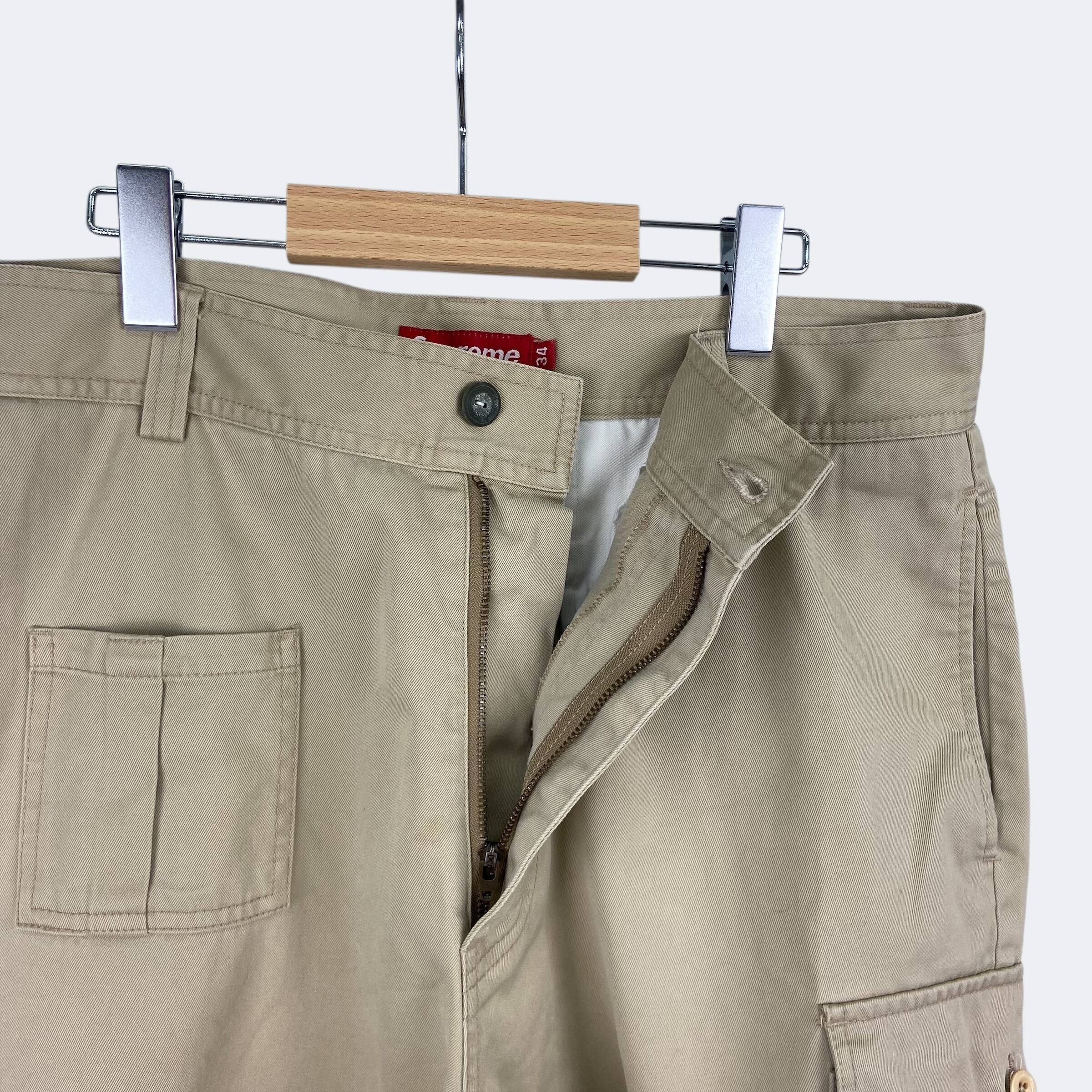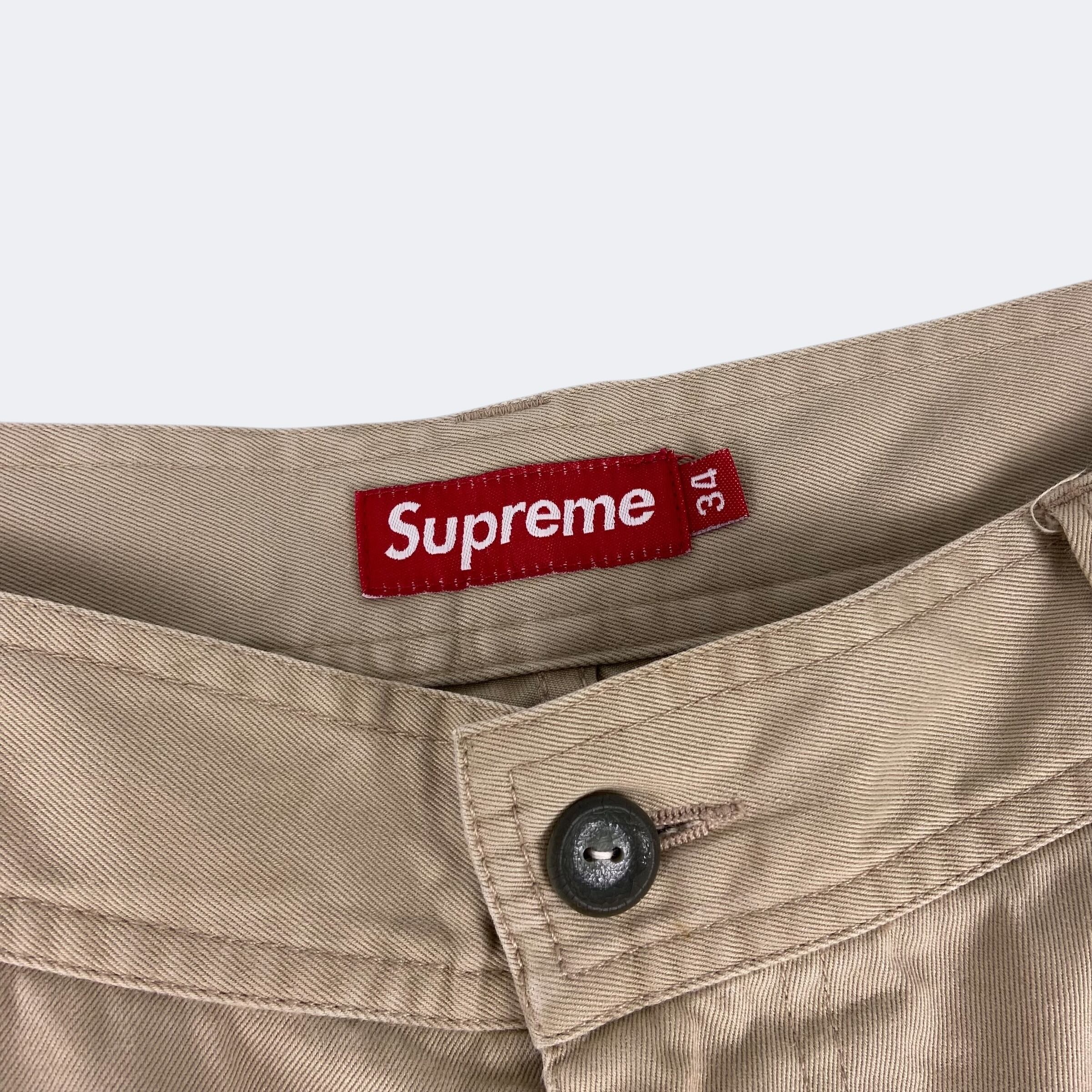 チノ素材を使用したシュプリームのカーゴショートパンツになります。フロントポケット、ユーティリティーポケット、カーゴポケット、バックポケットからなる計6ポケット仕様になります。ボタン留のジップフライになり、バックには織りネームタグが付きます。
