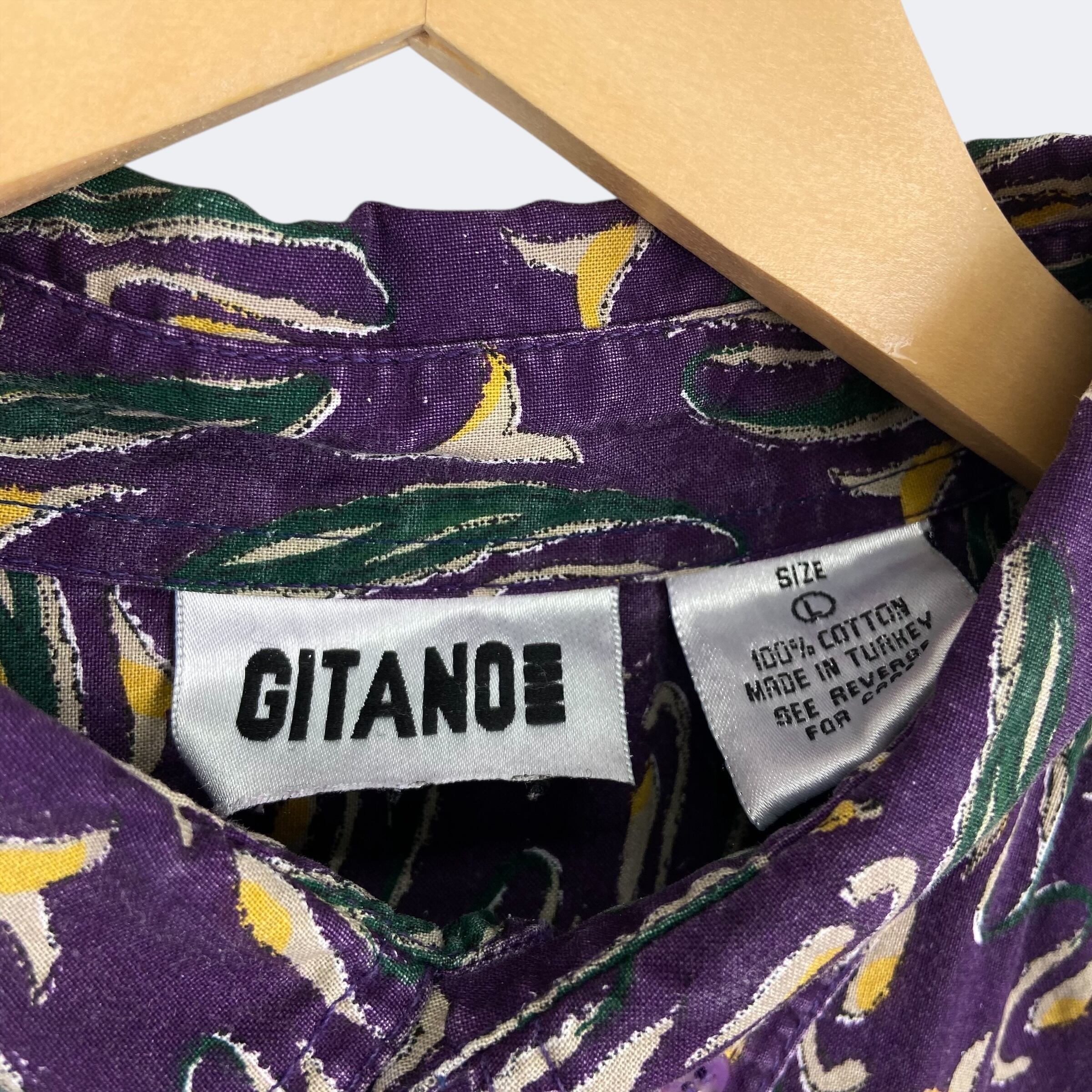 1960年代に設立されたアメリカのファッションブランド、GITANOのコットンシャツになります。80年代にアメリカで人気を博したファッションブランドで、POPなデザインのアイテムを多く展開していました。近年では、古着市場で80年代のGITANOアイテムが再評価されています。