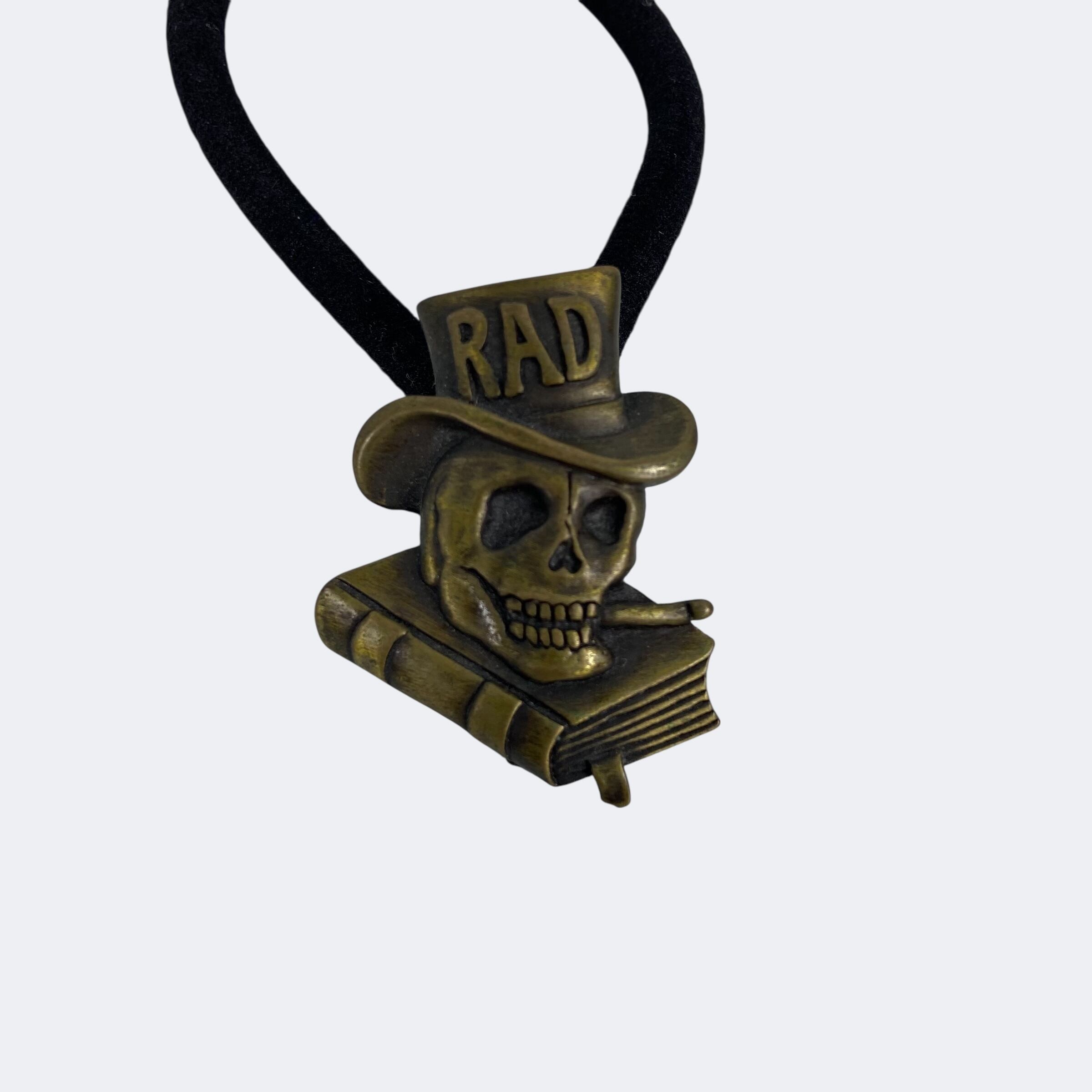 オリジナルのスカルオンブックモチーフを使用したコンチョになります。ブレスレットとしても、カード類を束ねて車に置いておいたりと、いろいろな用途で使用可能です。