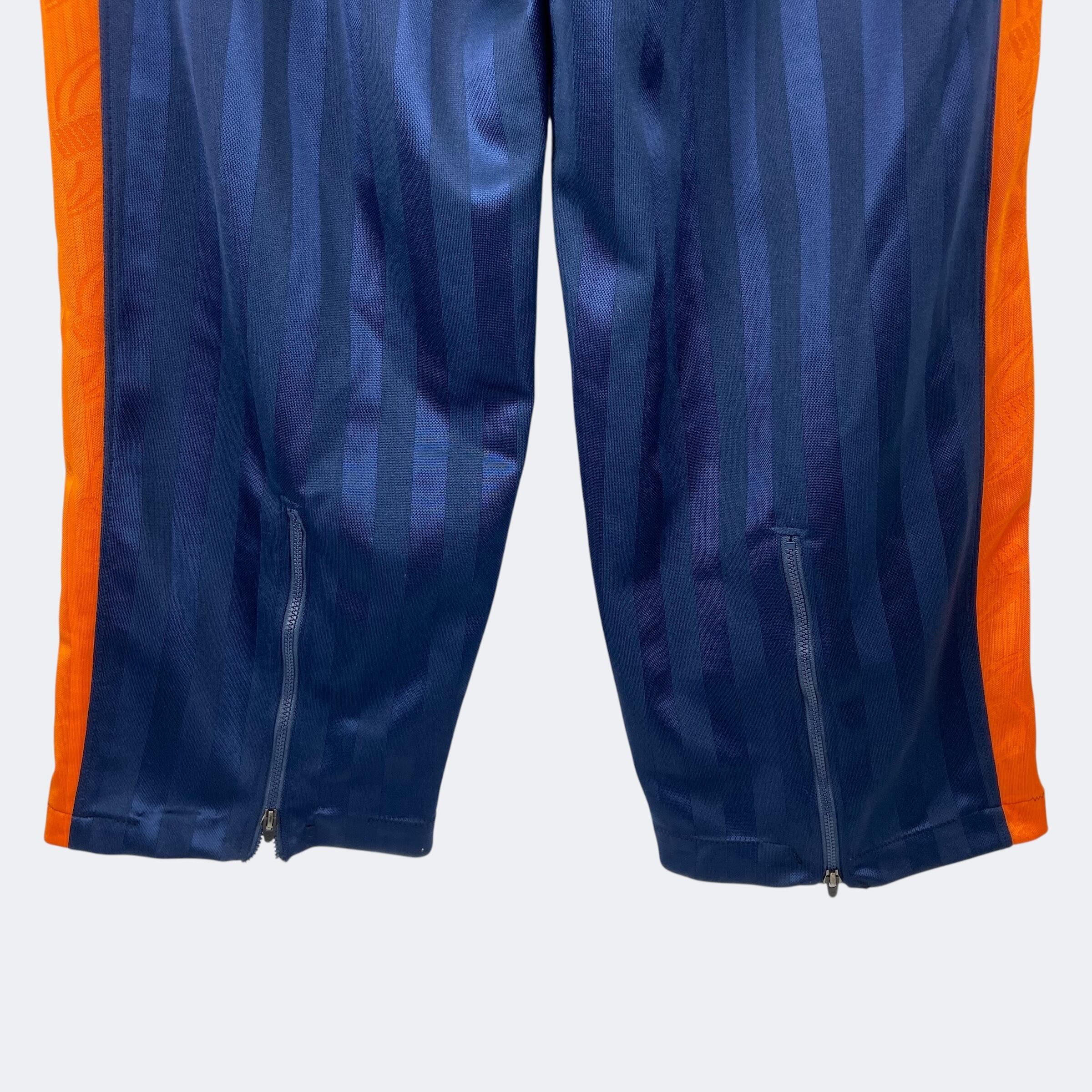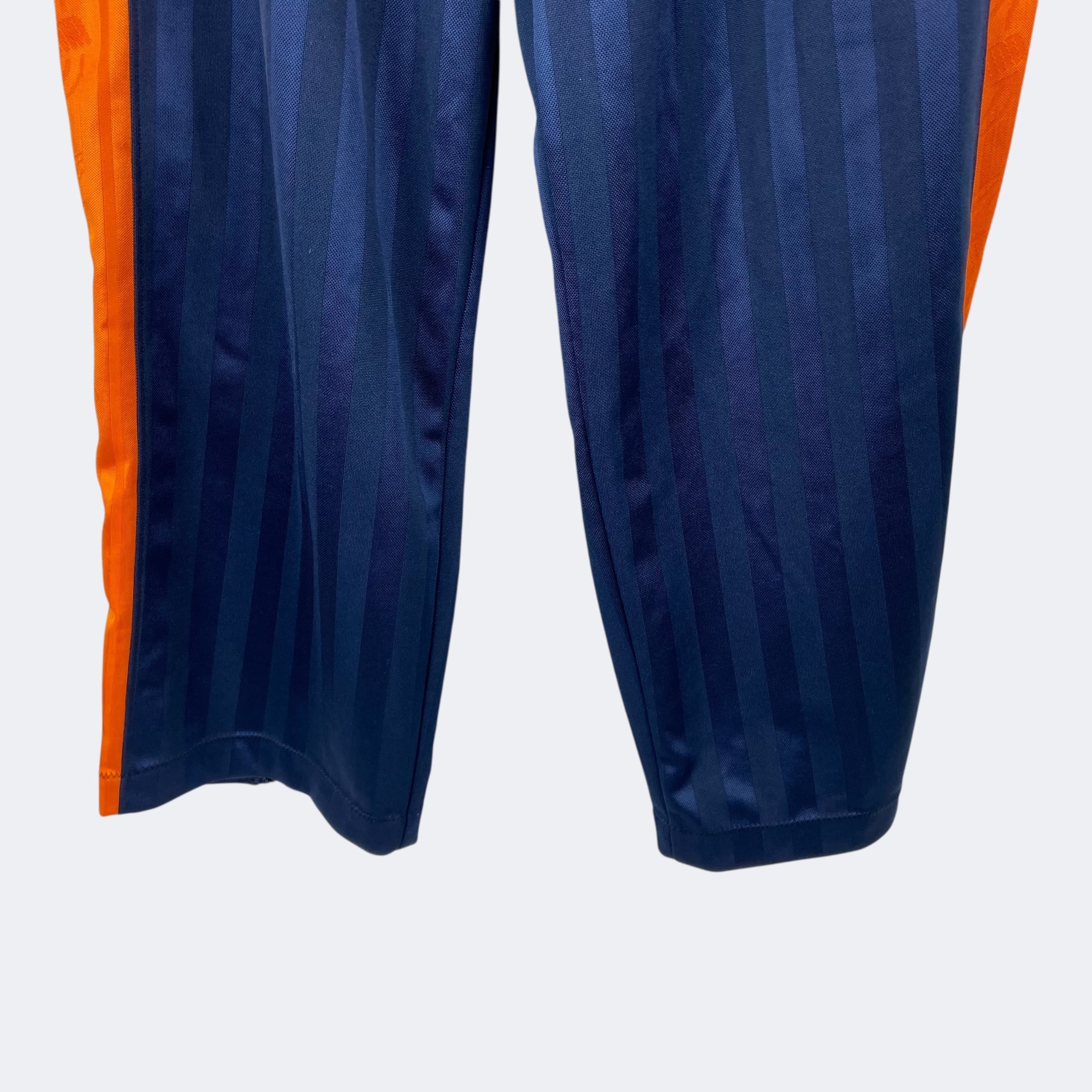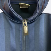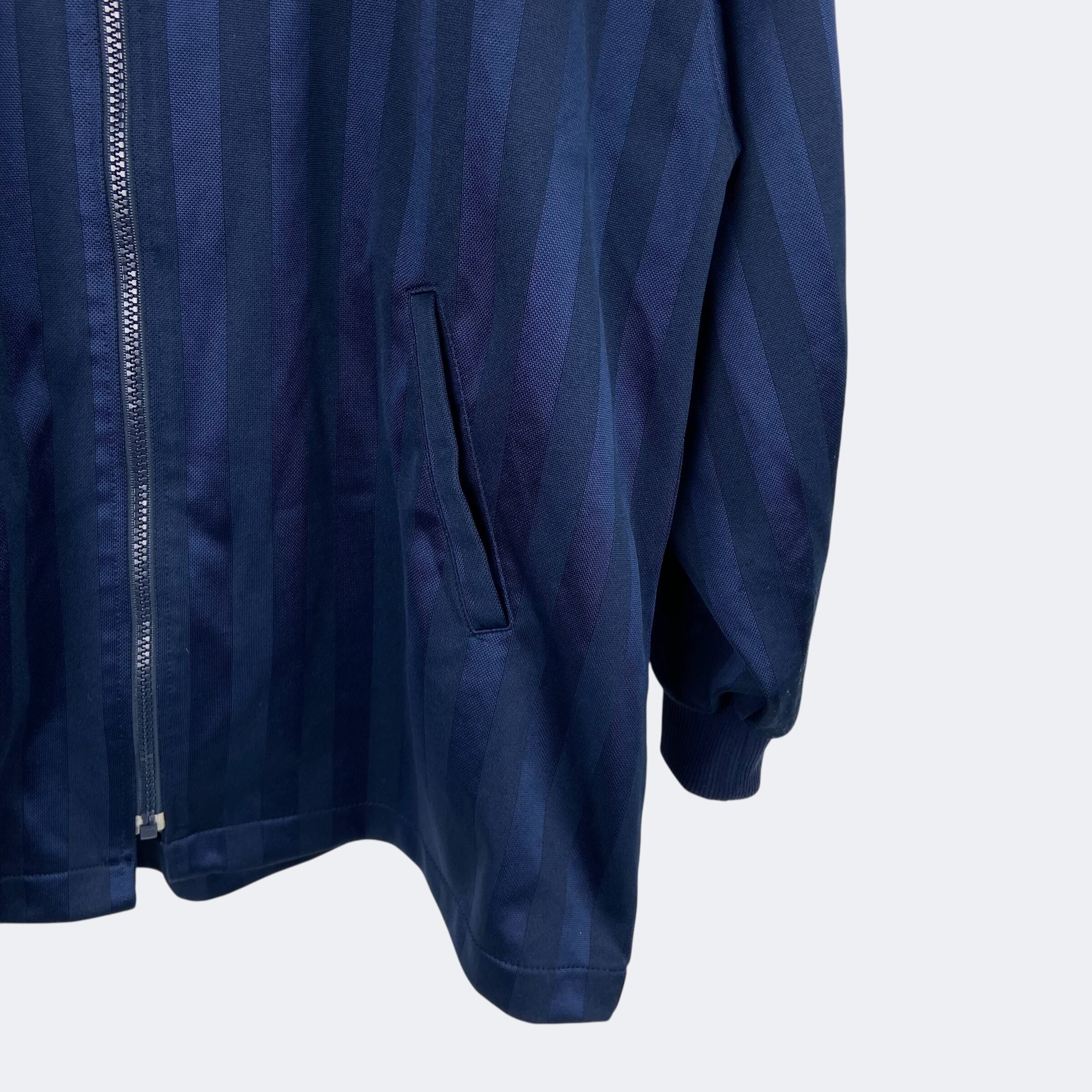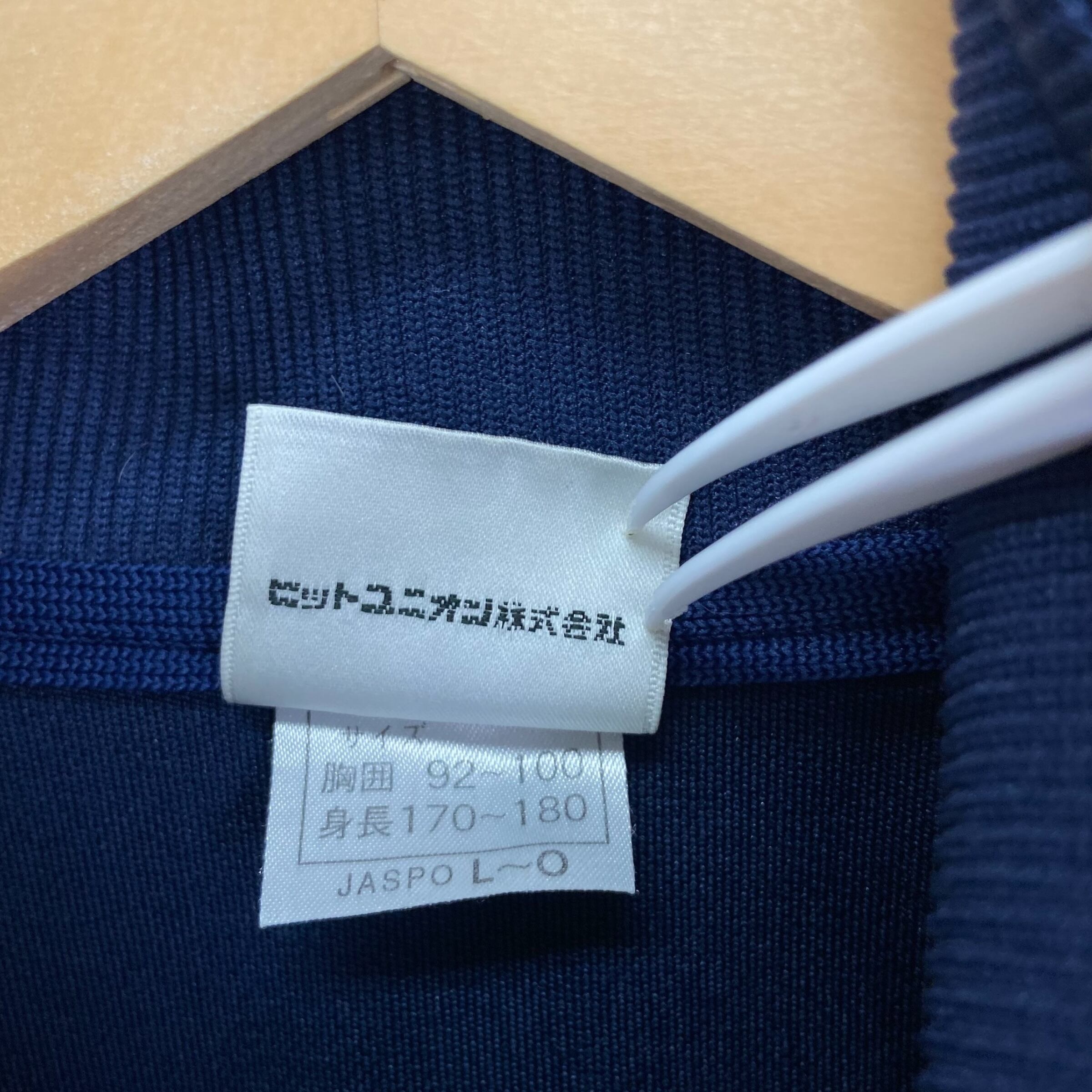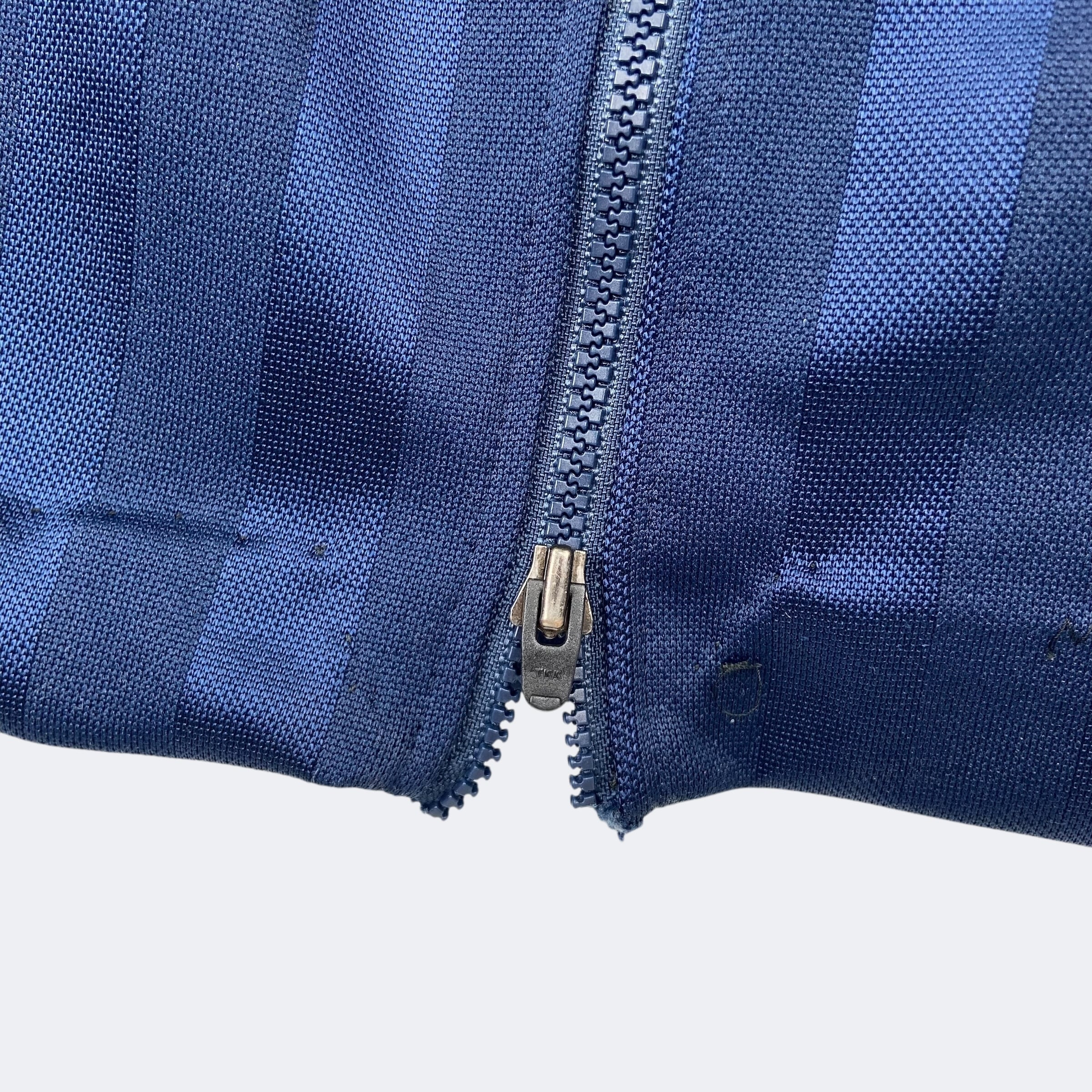 胸部分に刺繍ロゴが施されたヒットユニオン期のトラックジャージ、上下のセットになります。ボディ全体にはストライプ織りが施され、切り替え部分にはジャガードでロゴが入ります。