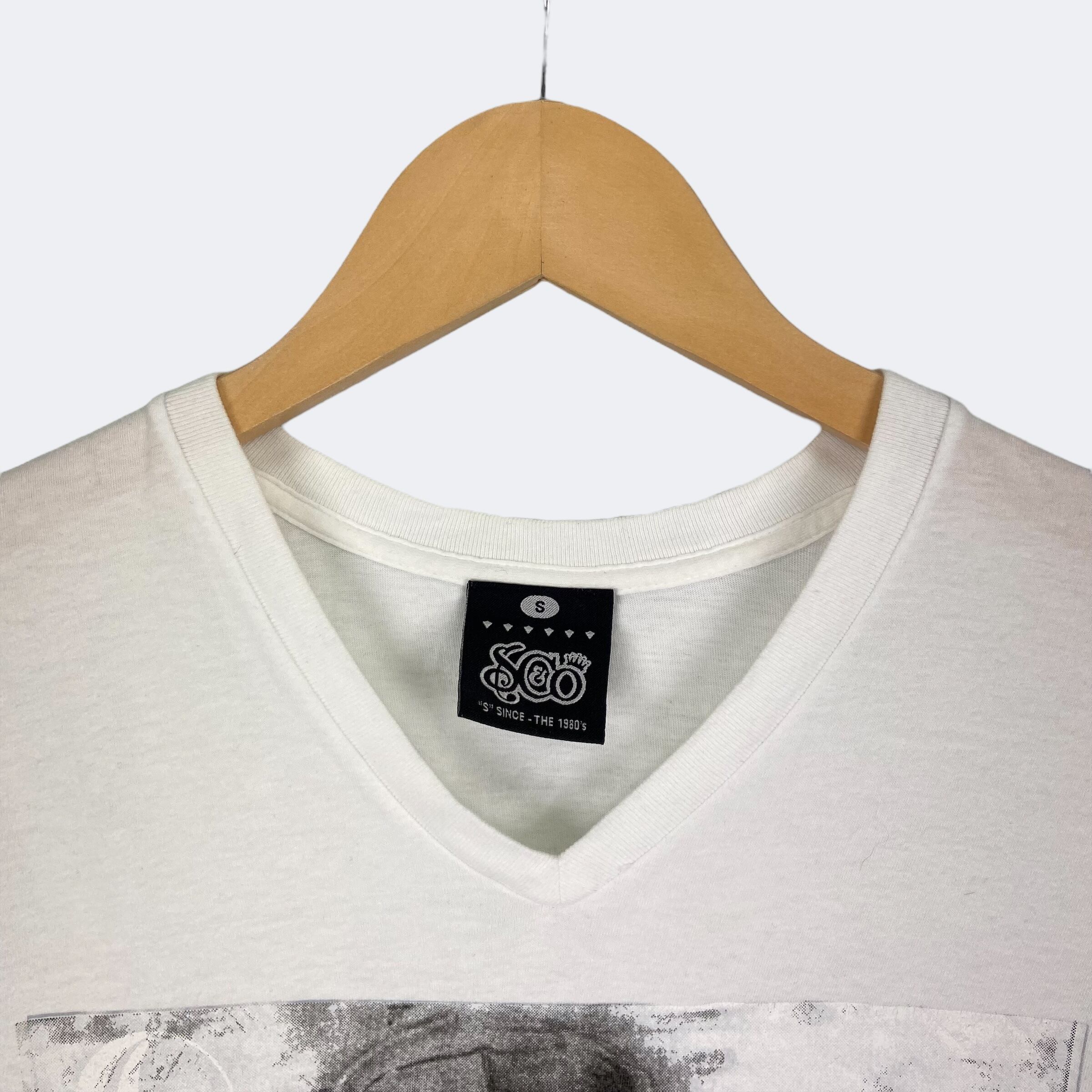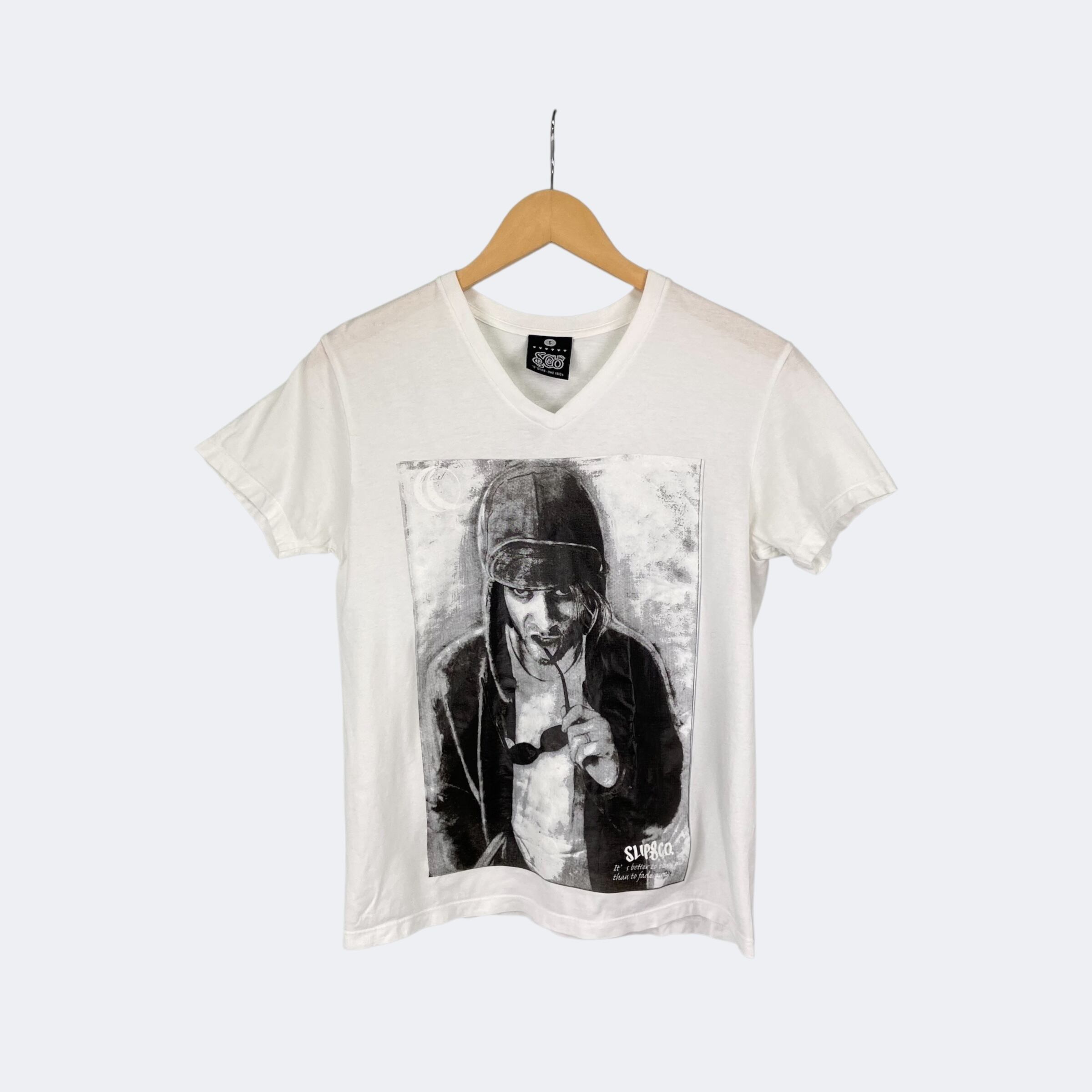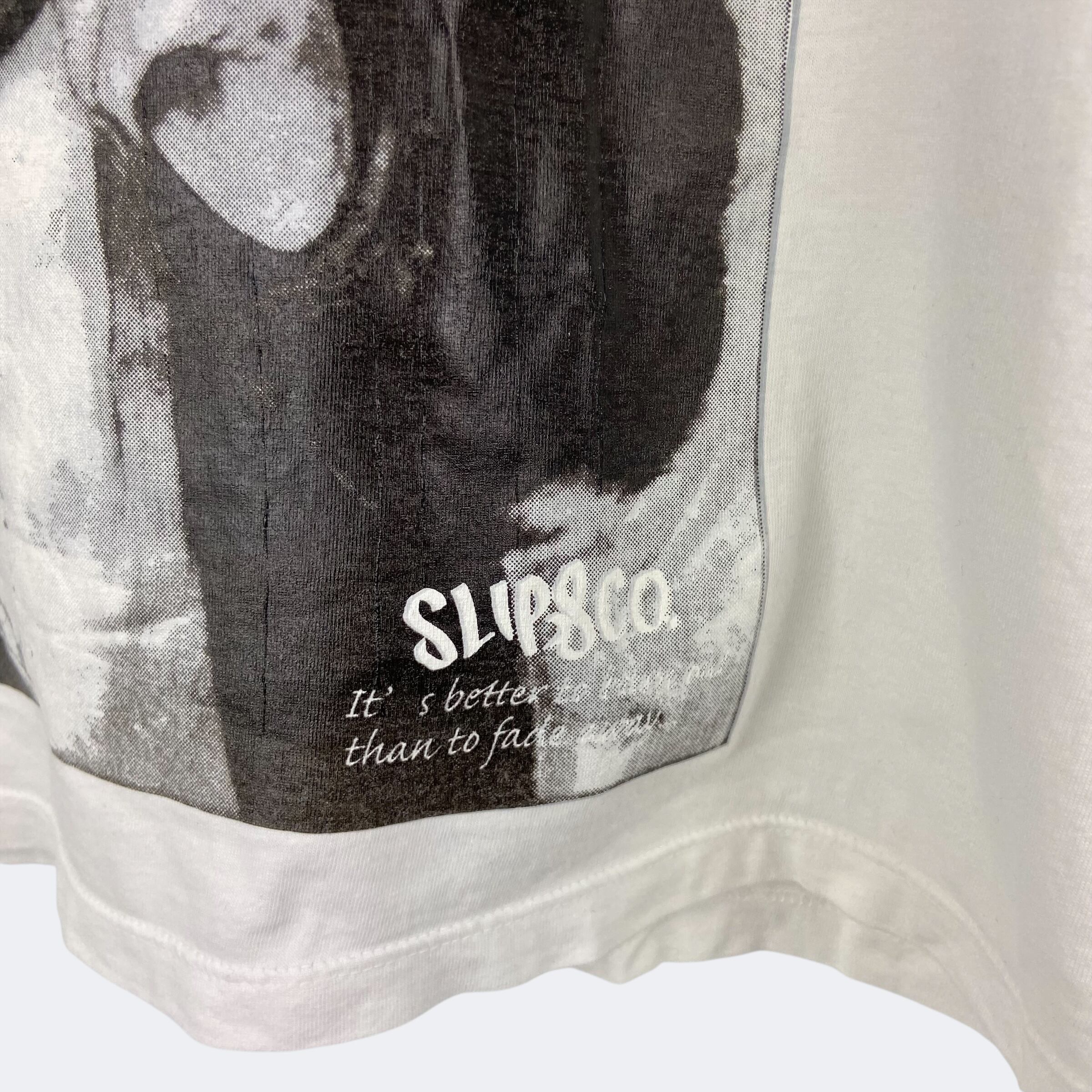 RIZEのJESSEがプロデュースするオリジナルブランド、スリップアンドコーのVネックTになります。フロントにはカートコバーンのグラフィックがプリントされています。
