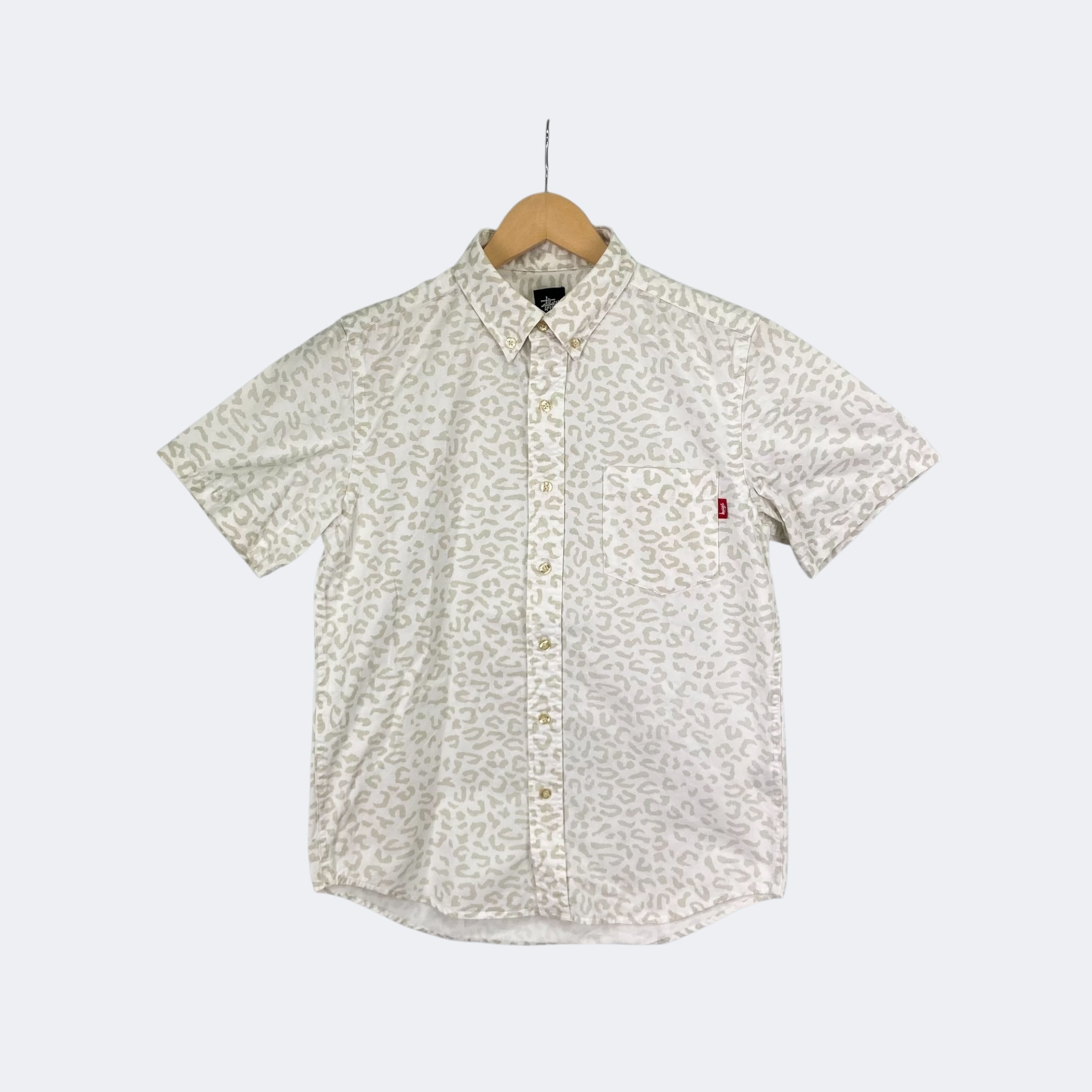 全体にレオパード柄がプリントされたステューシーの半袖シャツになります。胸にはポケット、ビスネームが付きます。