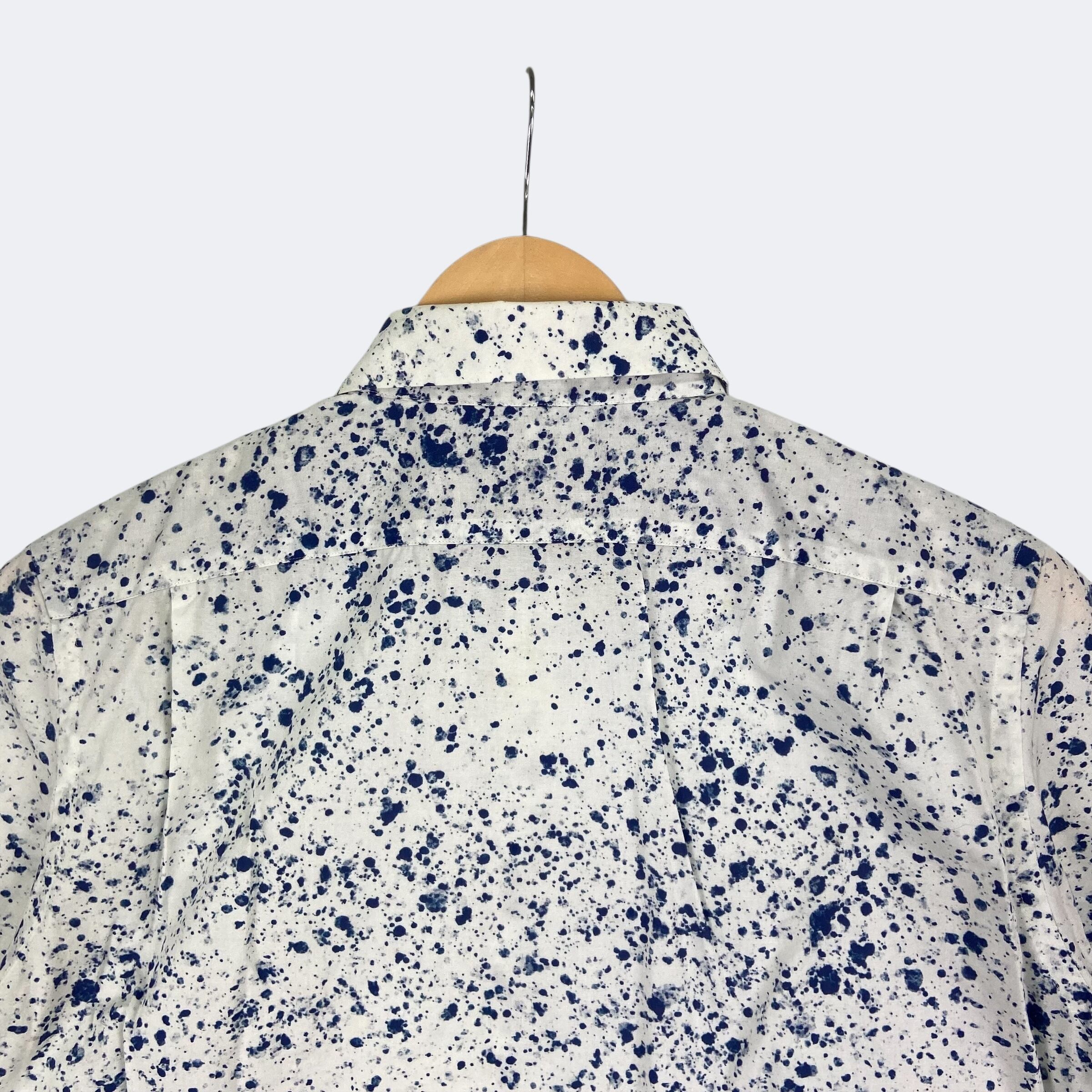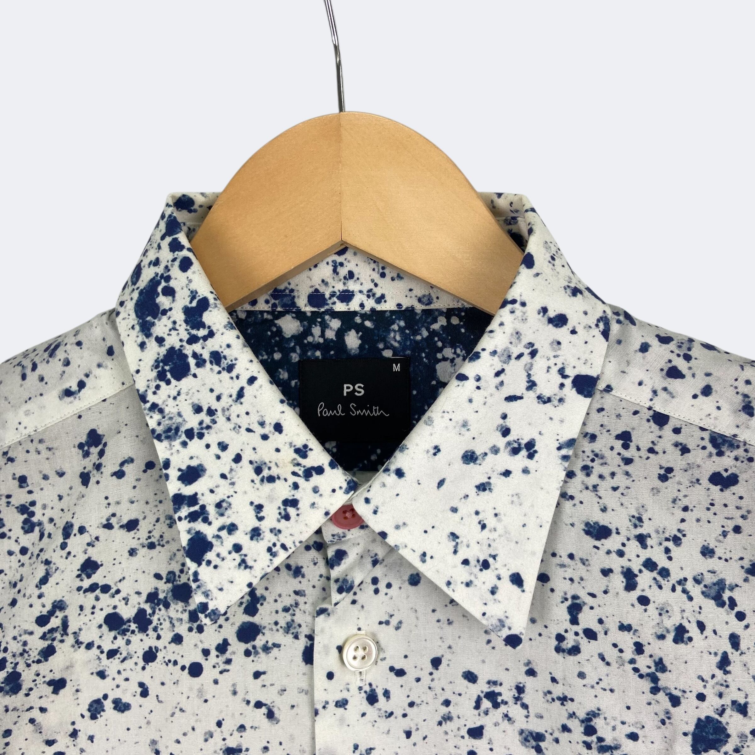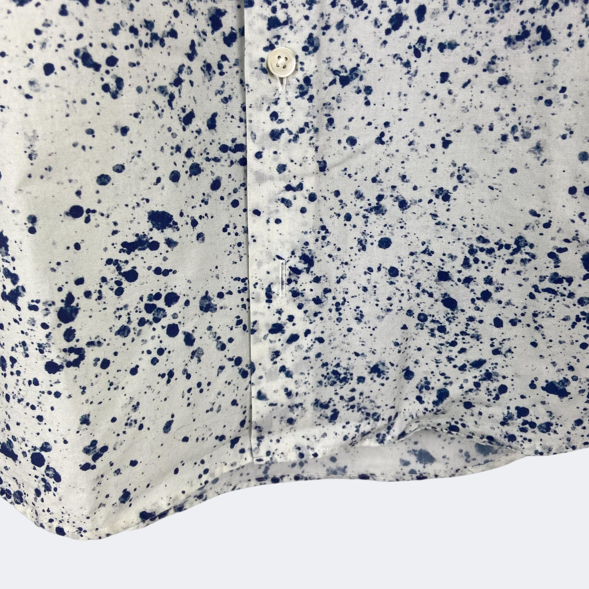 ペンキを散らしたようなインパクトのあるプリントシャツ。PS Paul Smith のシーズンテーマ「POPアート」を感じさせるアーティスティックなデザイン。個性的なアイテムで着こなしにアクセントを加えてくれます。第1ボタンとボタンホールにはコントラストカラーを使用し、ヨーク裏には色違いのプリントを施したポールスミスらしい細部にまでこだわった仕様です。