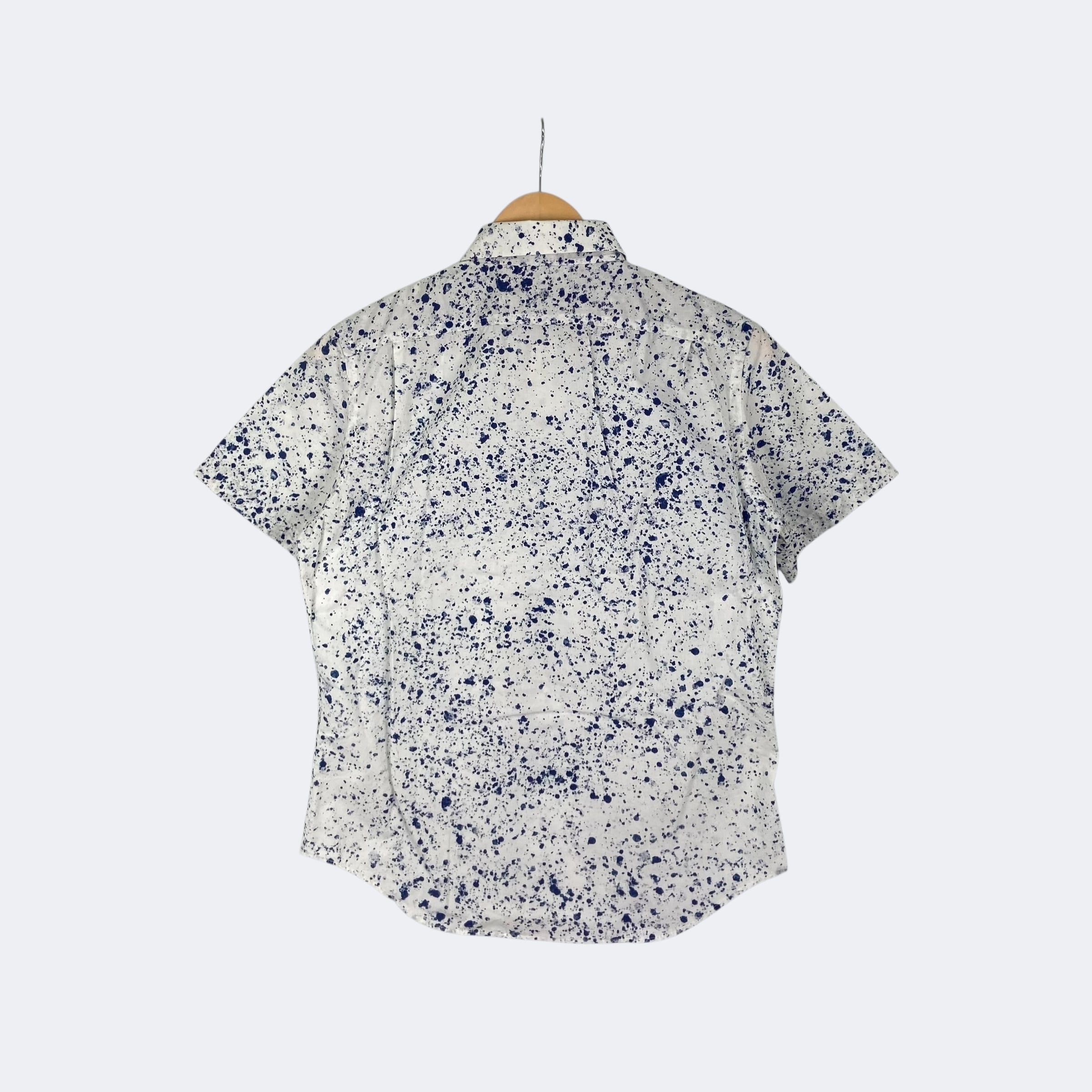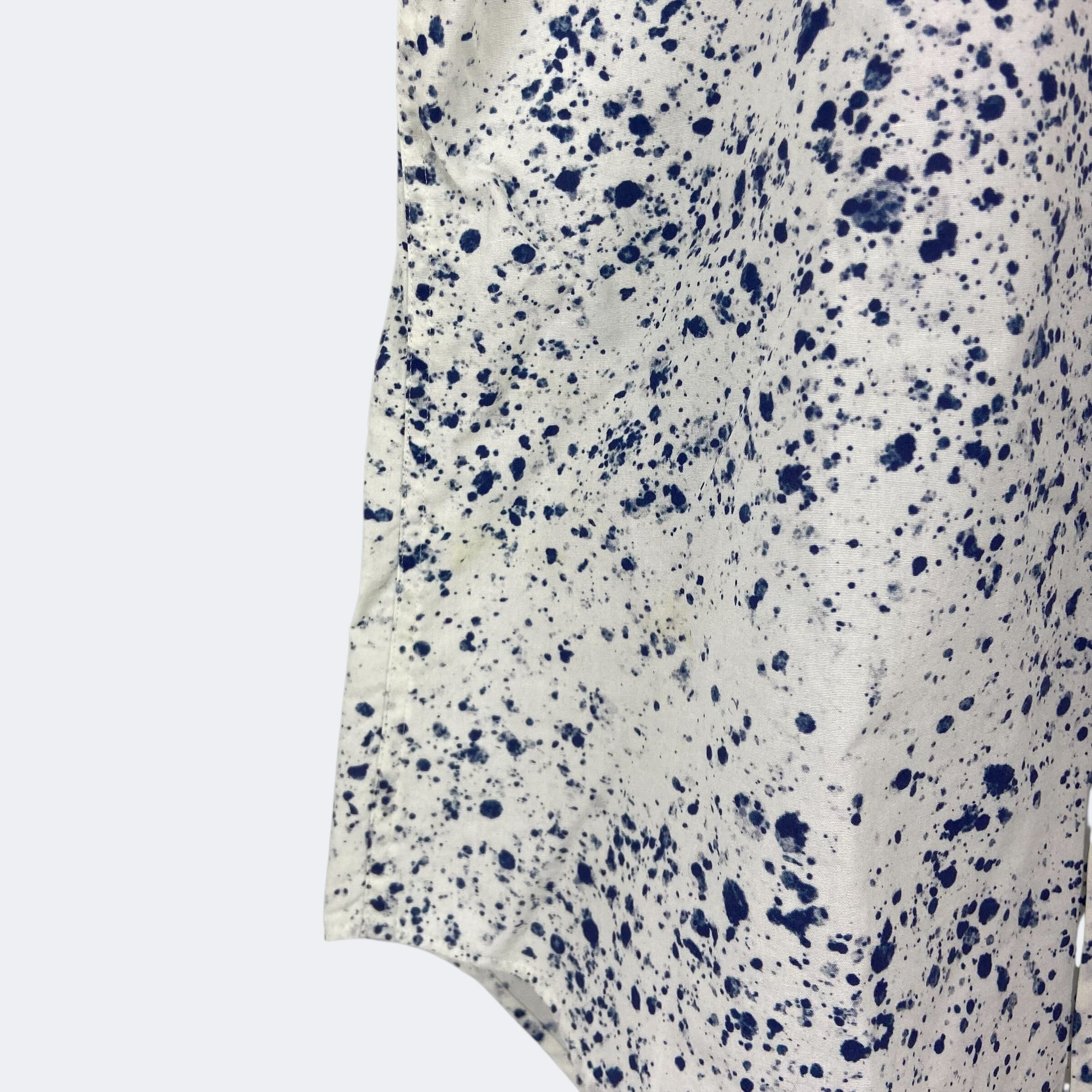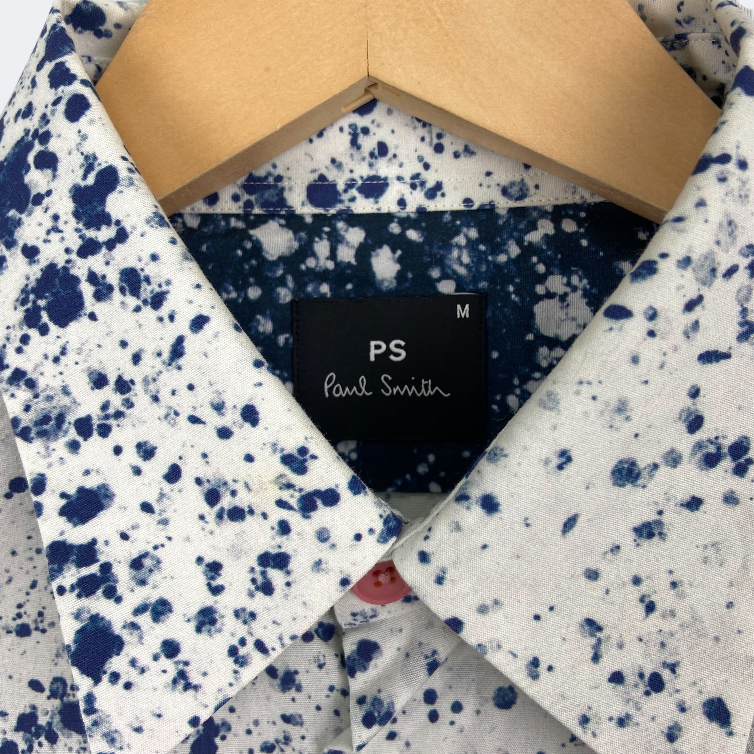 ペンキを散らしたようなインパクトのあるプリントシャツ。PS Paul Smith のシーズンテーマ「POPアート」を感じさせるアーティスティックなデザイン。個性的なアイテムで着こなしにアクセントを加えてくれます。第1ボタンとボタンホールにはコントラストカラーを使用し、ヨーク裏には色違いのプリントを施したポールスミスらしい細部にまでこだわった仕様です。