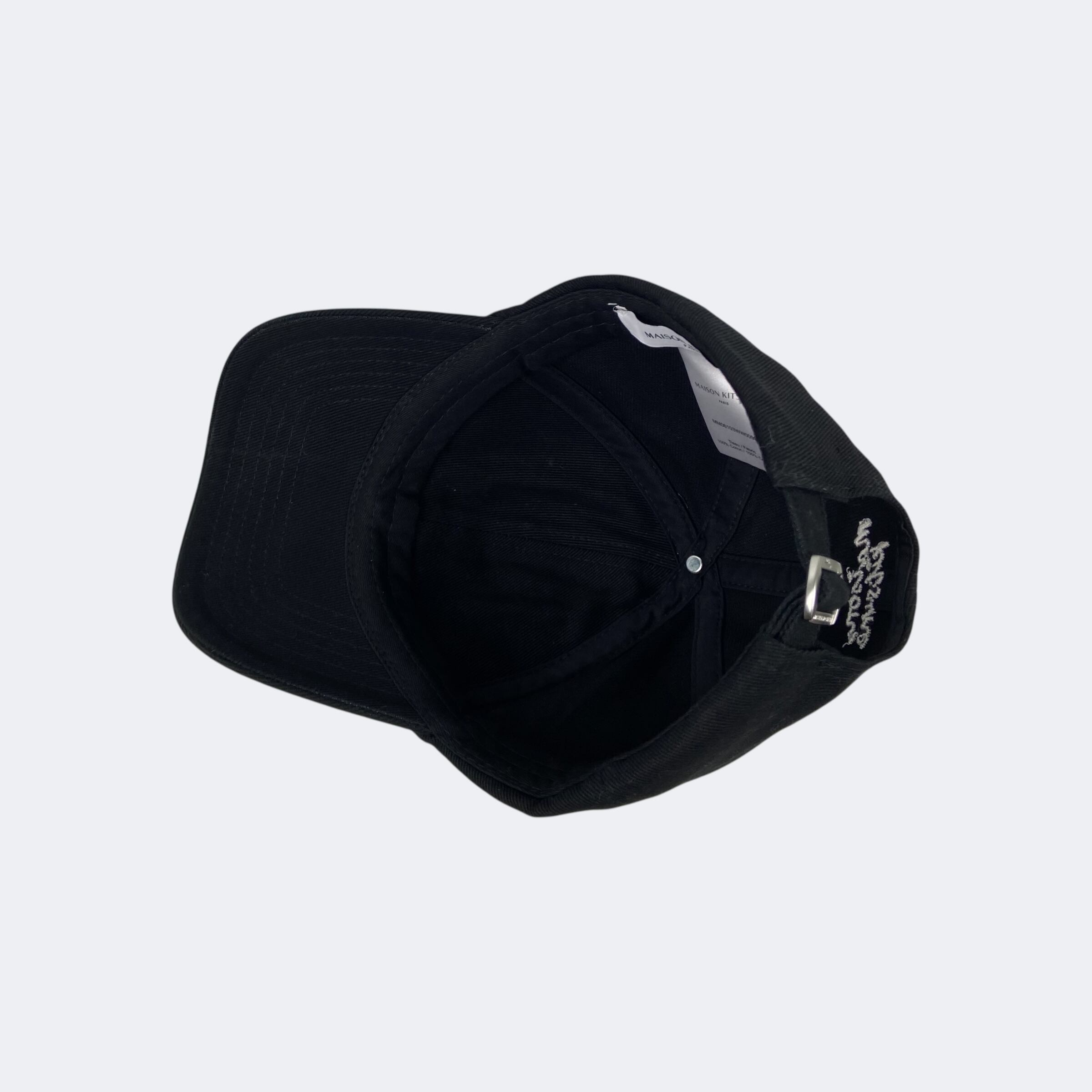 キャンバス素材を使用したメゾンキツネのベースボールキャップ。6パネルキャップで、フロントにラージフォックスヘッドの刺繡が施されています。バックに調整用のメタルバックル。