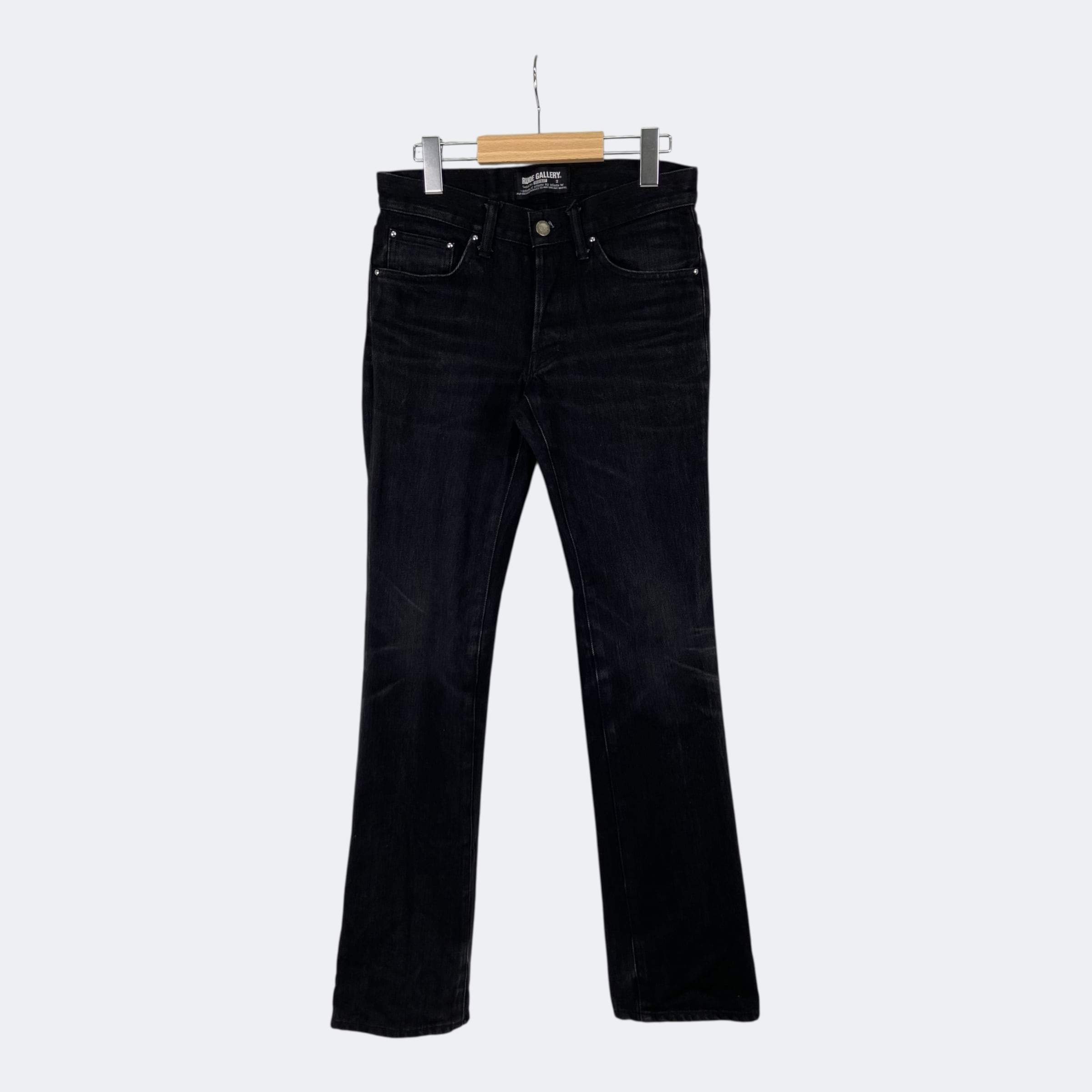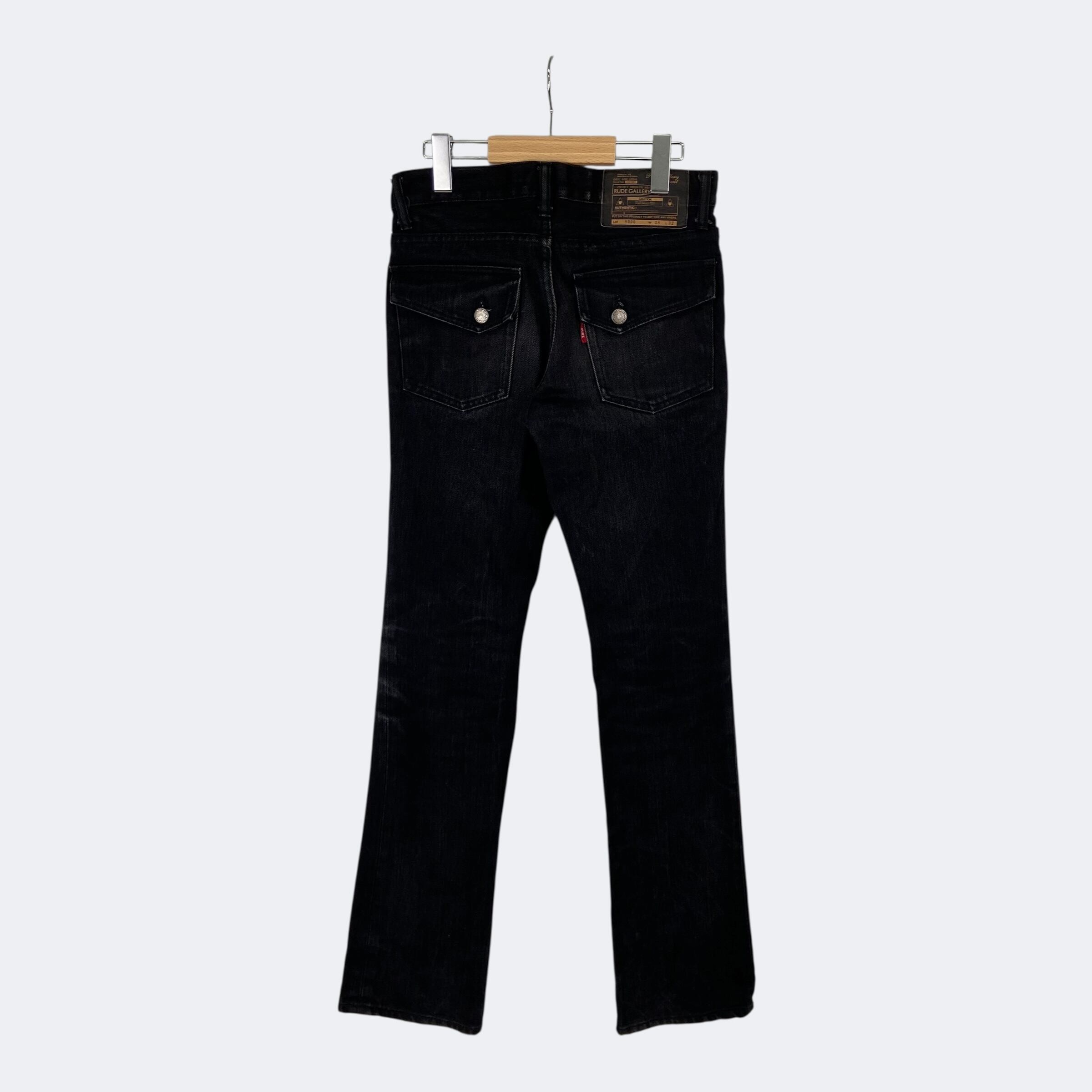 ルードギャラリーの5ポケットデニムパンツになります。ストレートに近いブーツカット仕様になるため、ブーツと合わせることも可能です。前開きはボタンフライになります。