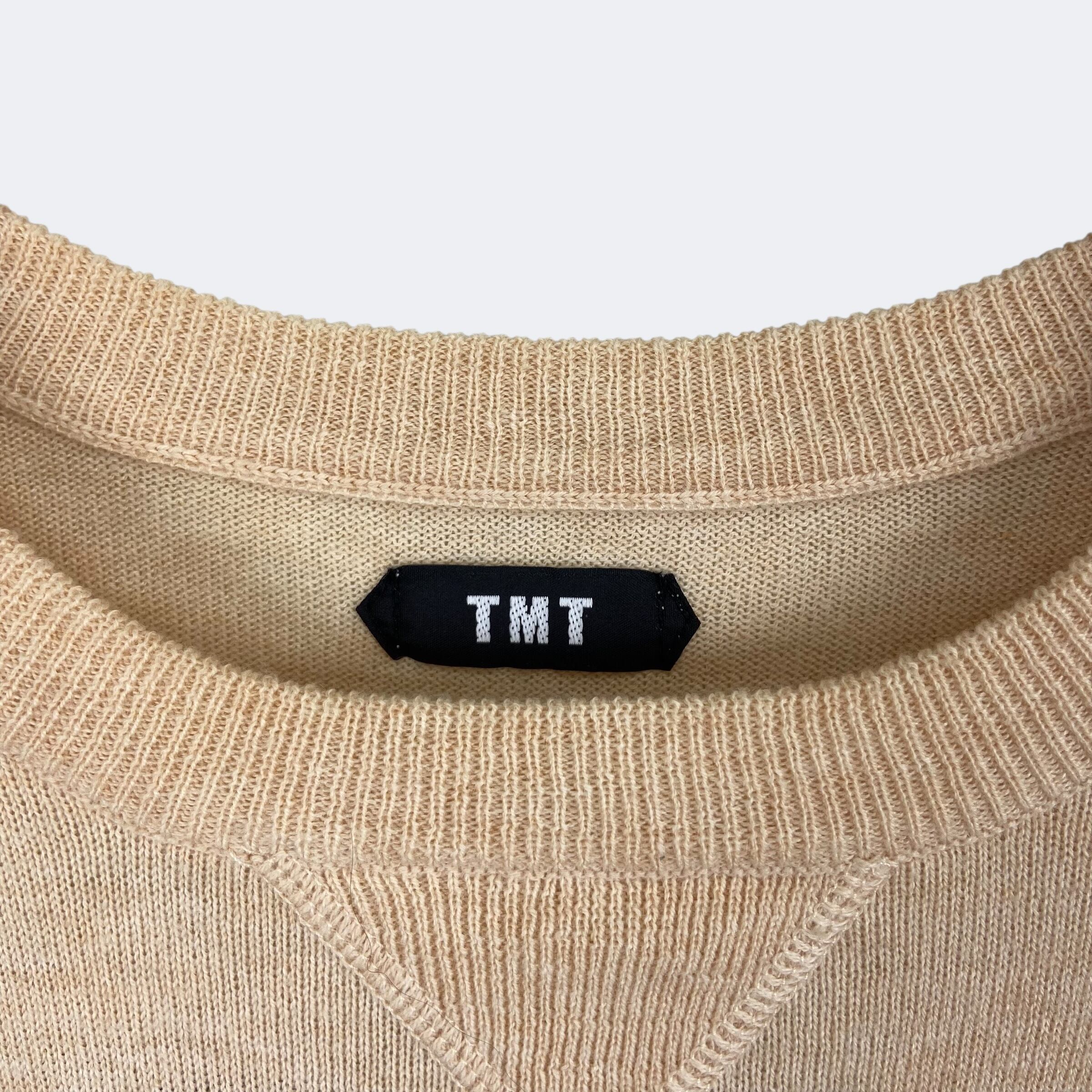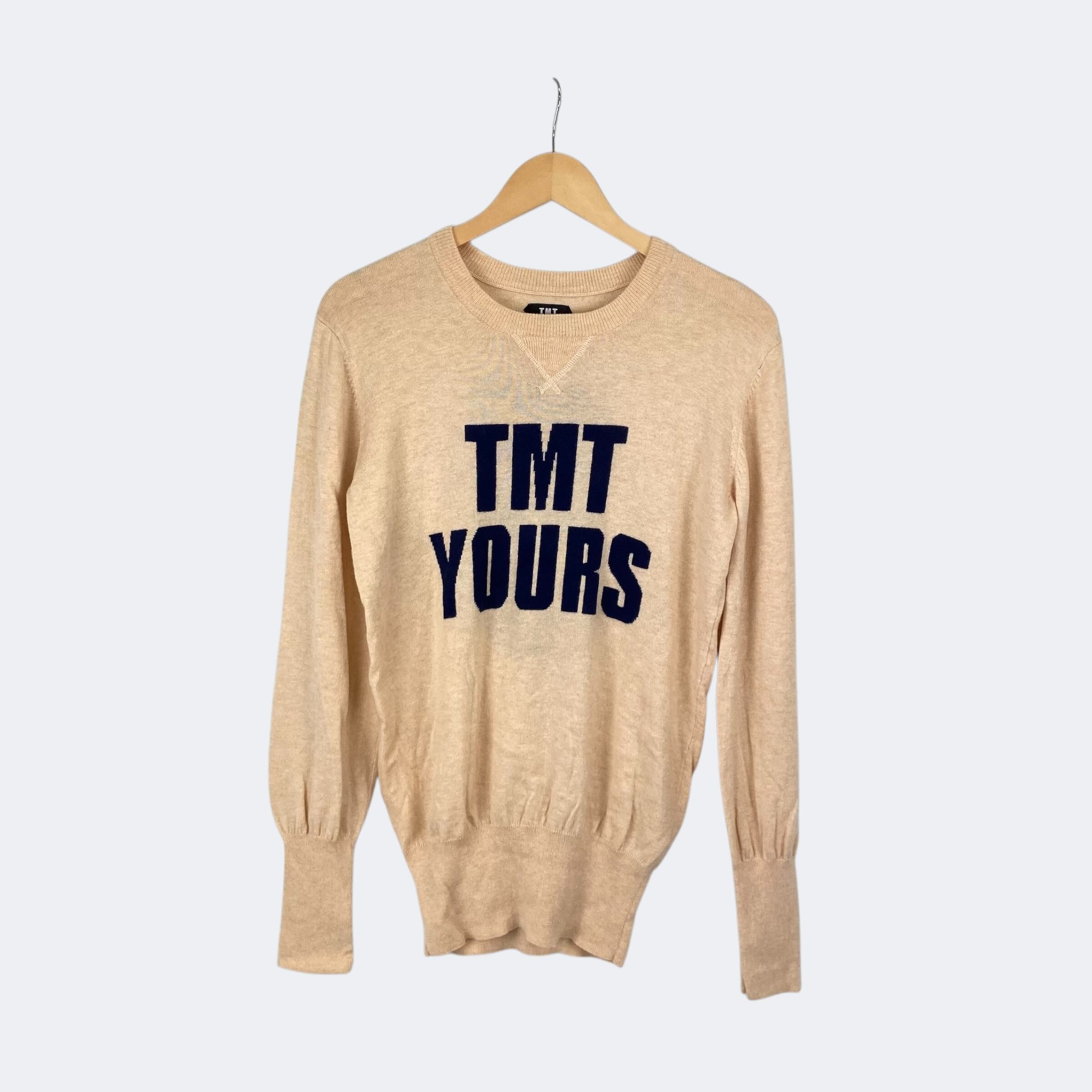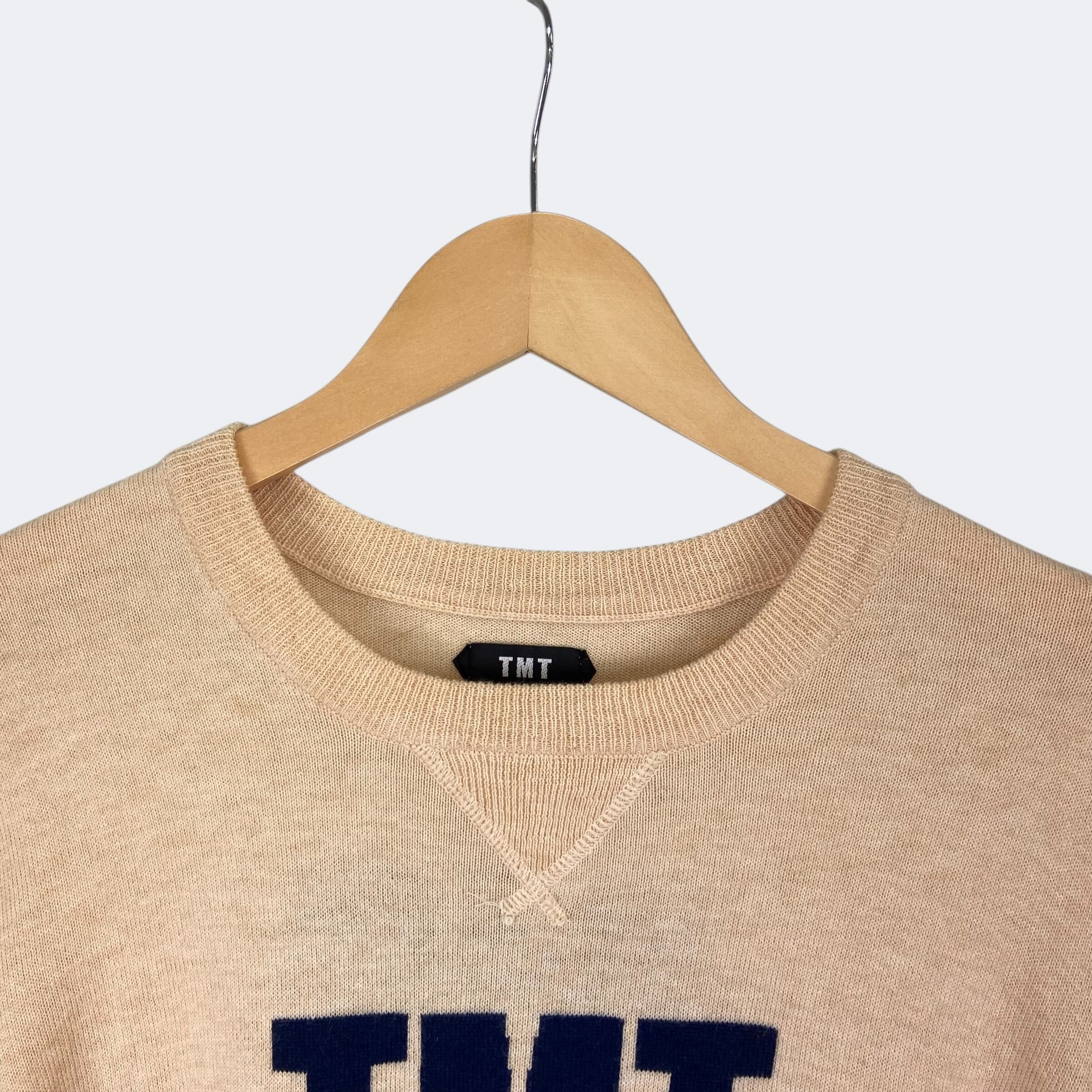 薄手のウール、コットンの混紡生地を使用したTMTのニットになります。フロントには「TMT YOURS」、バックには「BIG 3」の文字が織りで表現されています。汗止めや長めに採られたリブなどアメカジヴィンテージのディテールが落とし込まれた1着です。