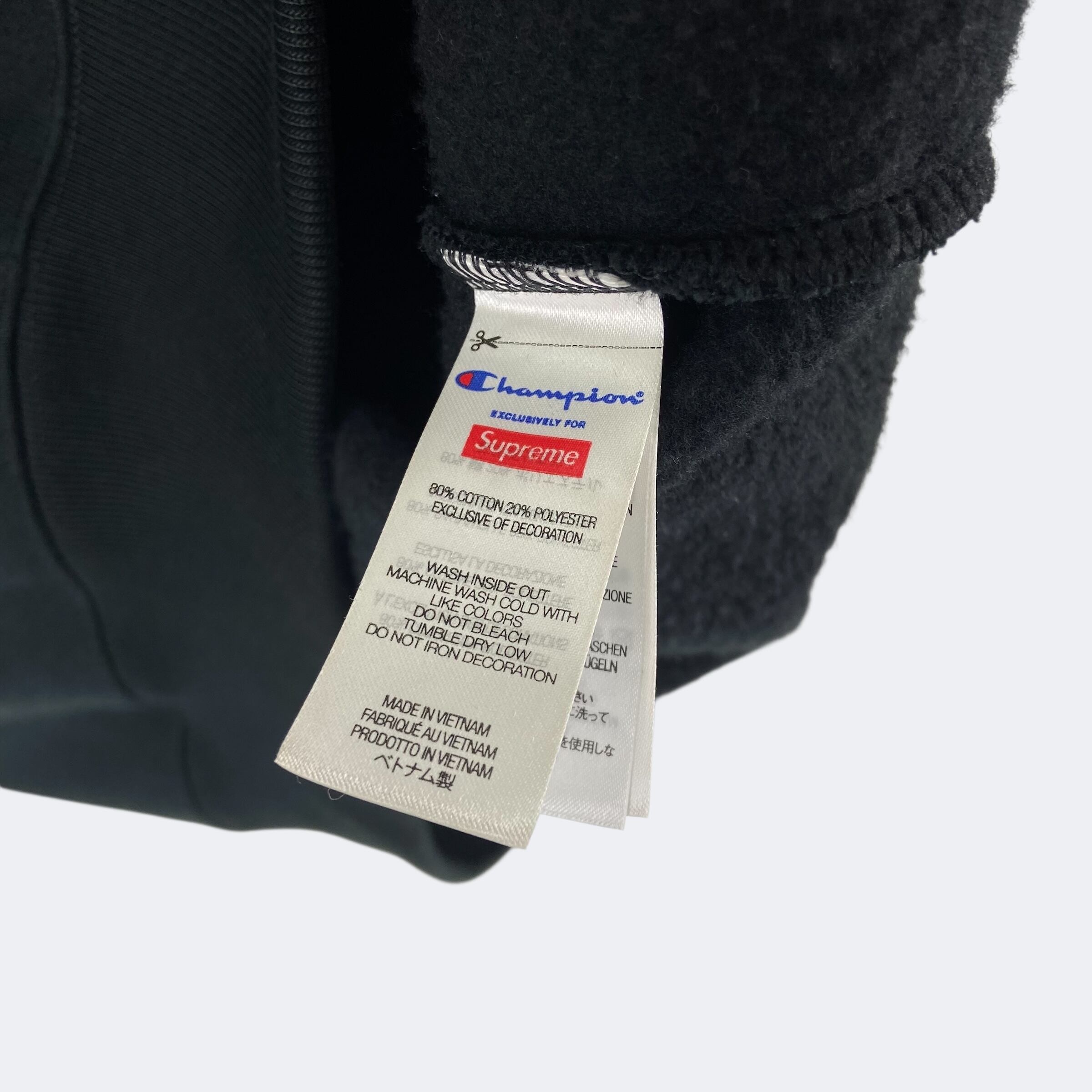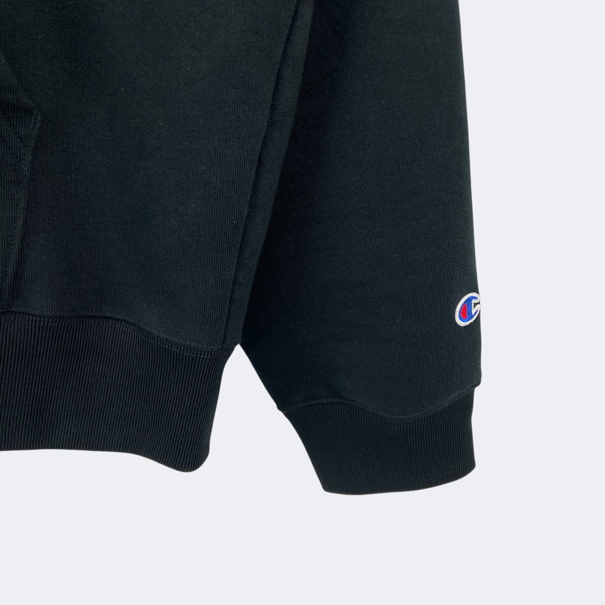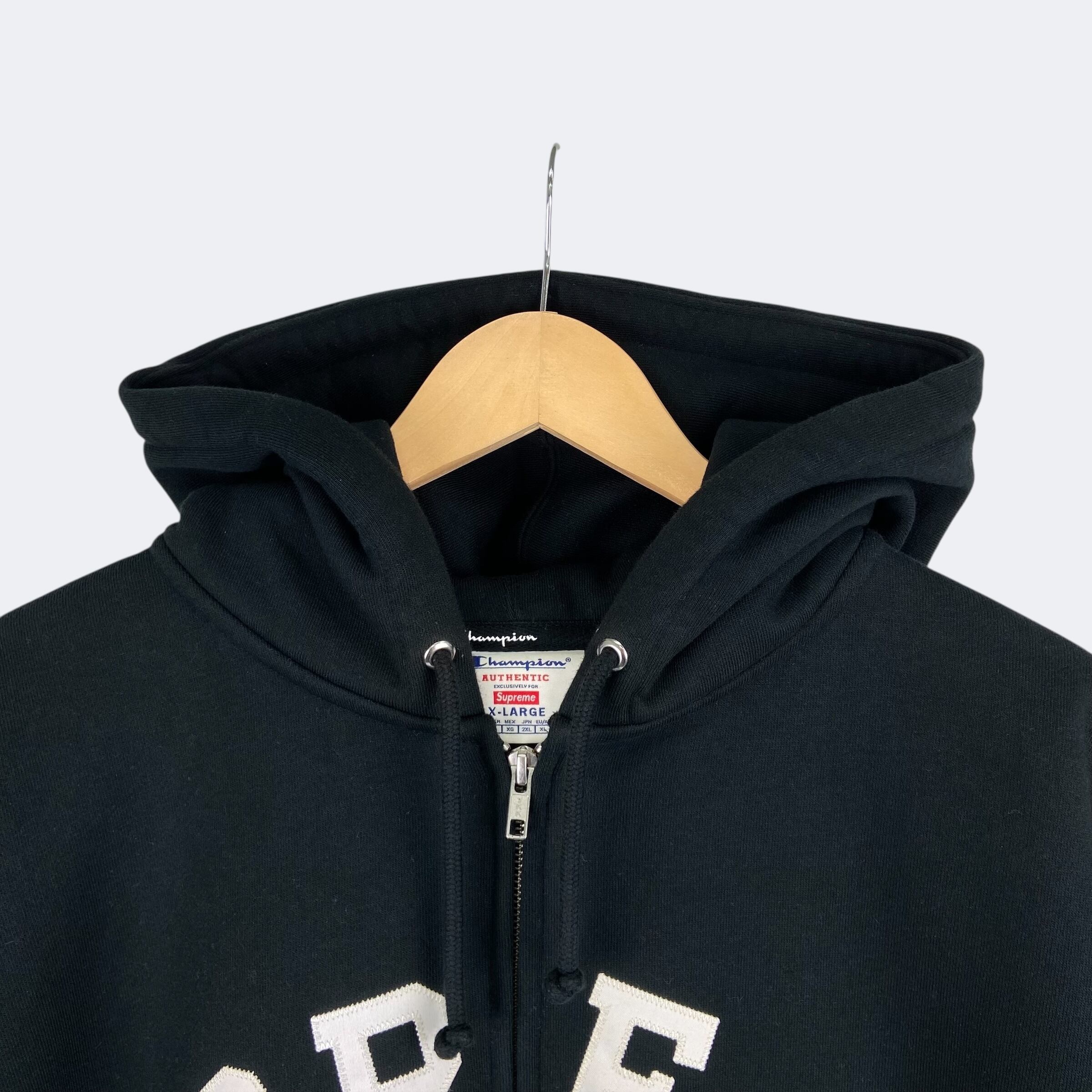 24SSリリースのチャンピオンとのコラボレーションアイテム。チャンピオン製のフルジップパーカーにタックルツイルアップリケでSupremeアーチロゴが縫い付けられたオーセンティックなデザインになります。左袖口のチャンピオンのCロゴパッチが付き、ボディーはヘビーオンスコットンポリ混紡の裏起毛となっており肌触りが良く柔らかさが特徴です。