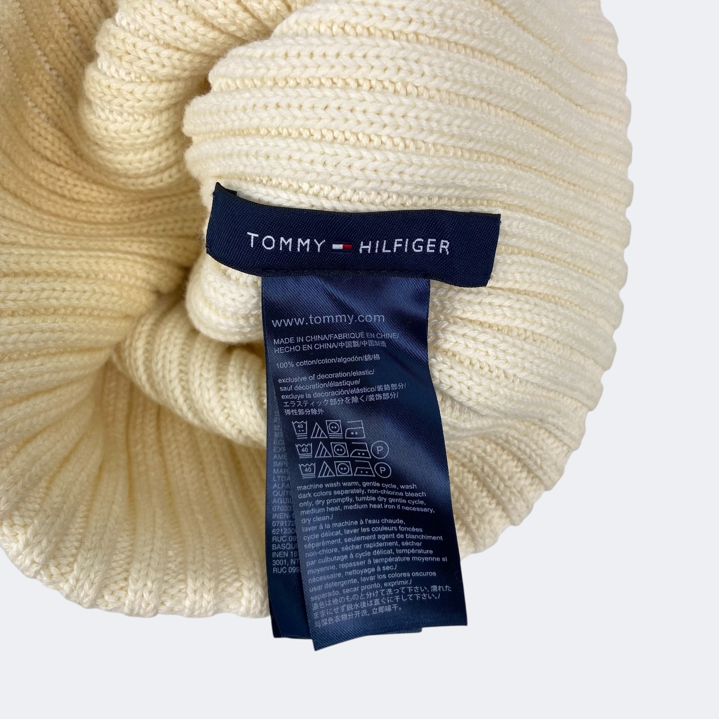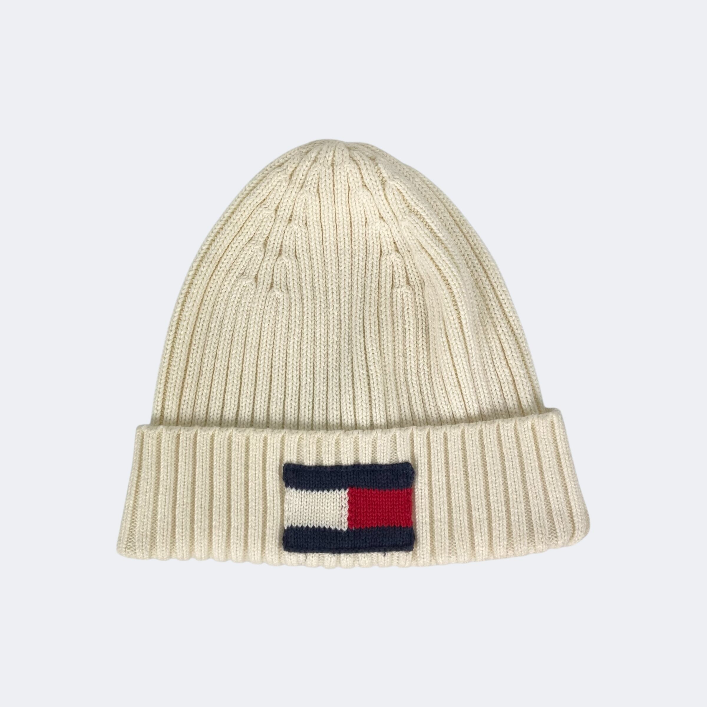 フロントにブランドアイコンが織りで表現されたトミーヒルフィガーのニットキャップになります。リブ編み仕様のシンプルなディテールながらも、アイコンが目を惹くアイテムです。