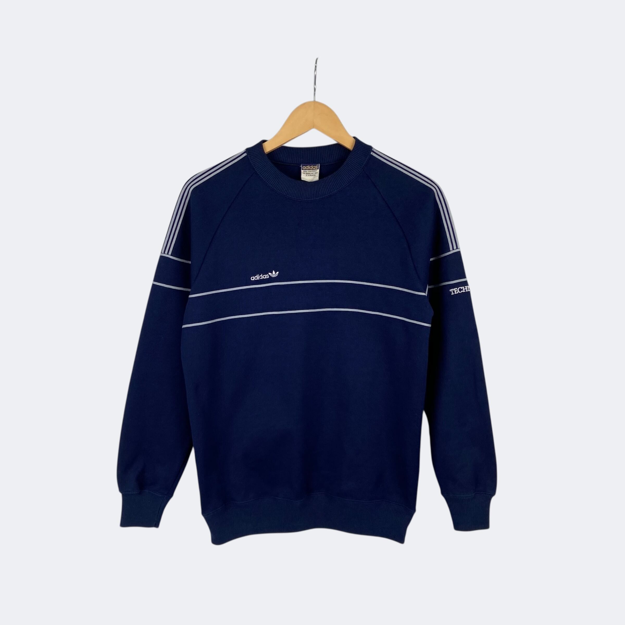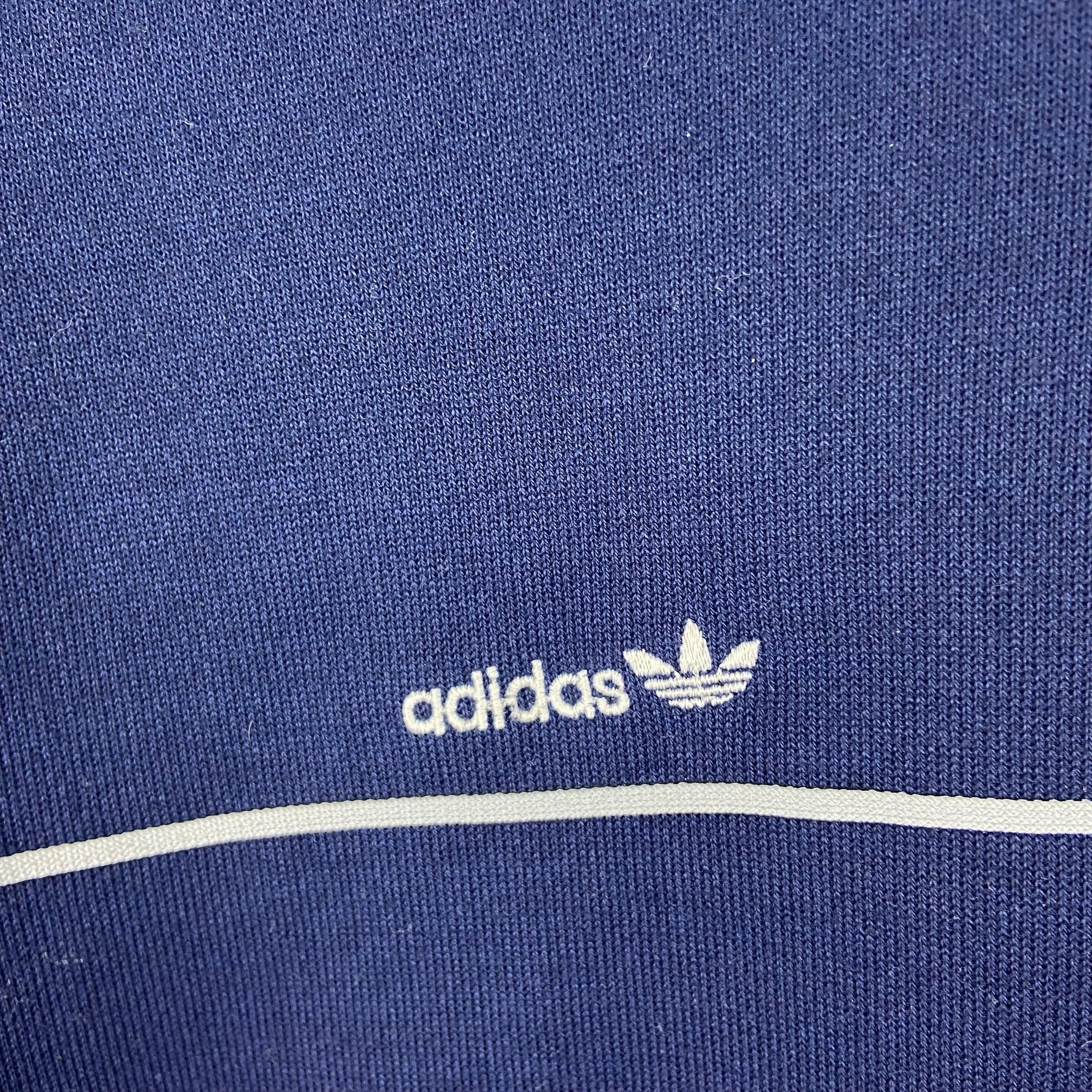 80年代デサント社製のアディダス商品。テクノラインになり、BIO-FIXというスポーツ時の発汗メカニズムを分析し効果的に発汗処理をする為に開発されたハイスウェットコントロール素材を使用しているため、軽量且つライトな質感になります。襟から肩にかけてスリーストライプスが施され、左腕にはTECHNOの刺繍が入ります。