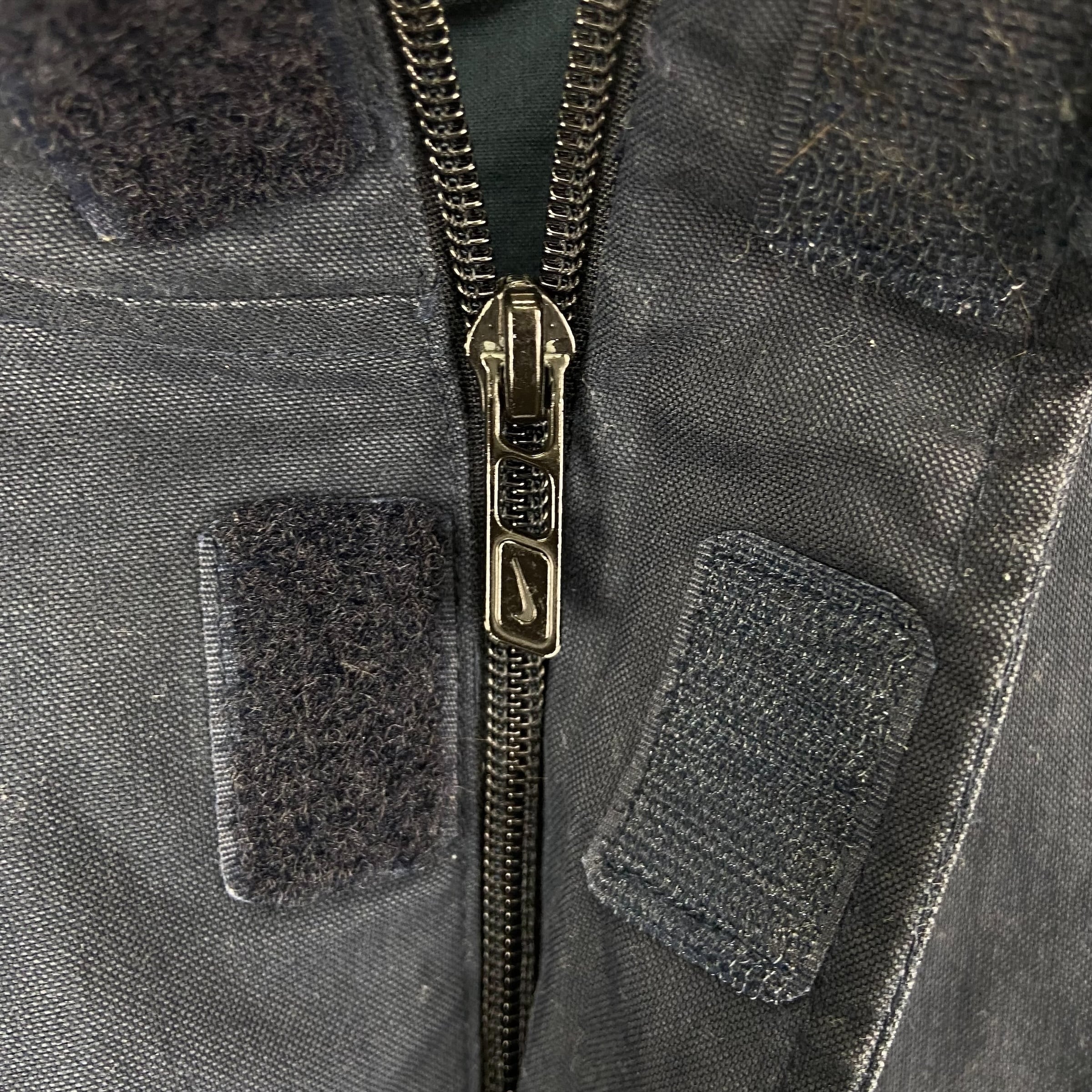 ナイキヨーロッパ企画のワークジャケット。ラグランスリーブ仕様になり胸にはフラップポケット、ブランドタグが付きます。腹部にはポケットが付き、裾サイドシーム部分にはピスネームが施されています。比翼仕立てになるため防寒性にも優れた仕様です。