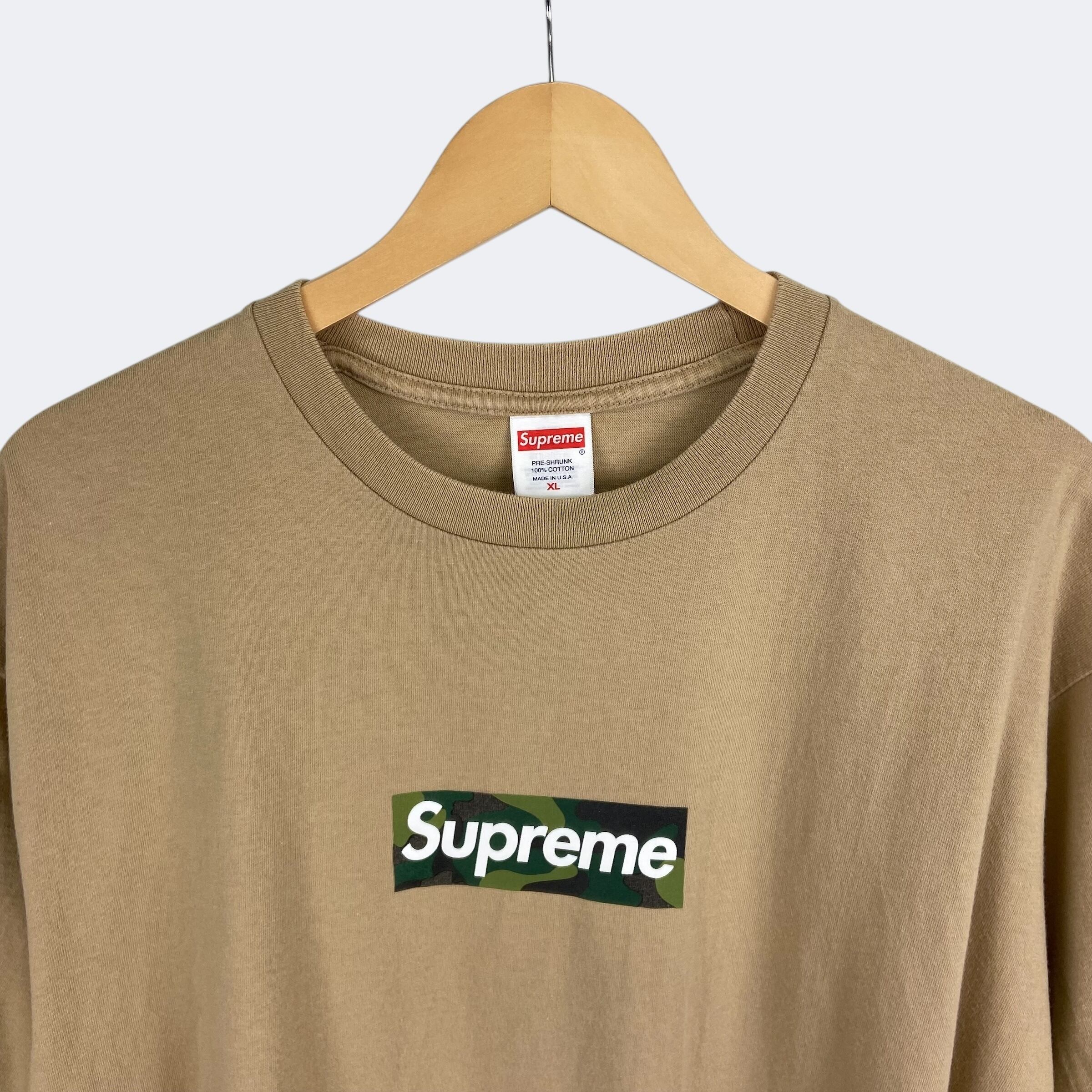 95年のアーカイブを採用したBox Logo Tee。シュプリームのアイコンアイテムとしてブランド設立当初から不動の人気を誇るアイテムになり、ボックスロゴフーディーのアッシュグレーにのみ採用された95年のアーカイブデザインとなるカモ柄をTシャツに採用。ボックスロゴクルーまたは、フーディーはどちらかが毎年リリースされていますが、ことTシャツに関してはリリースがない年もあるため、その希少性は絶大になります。