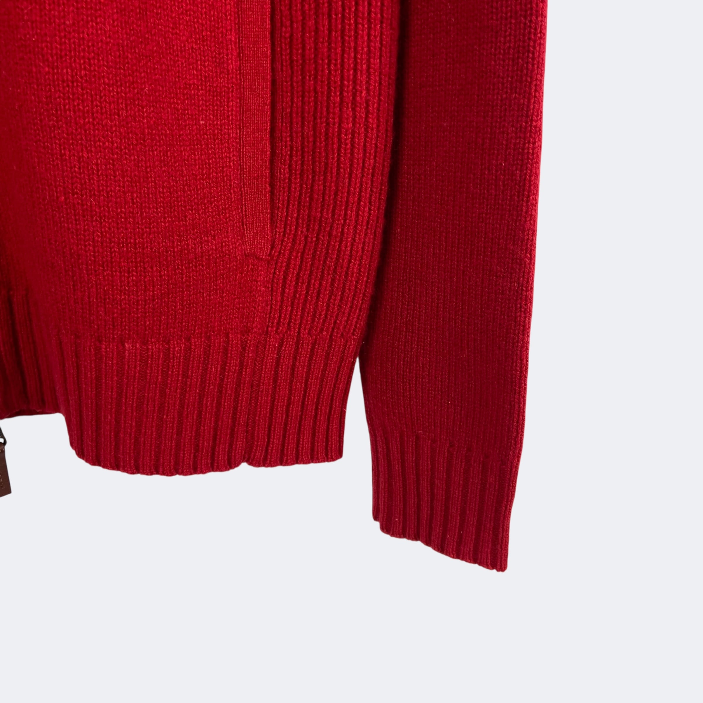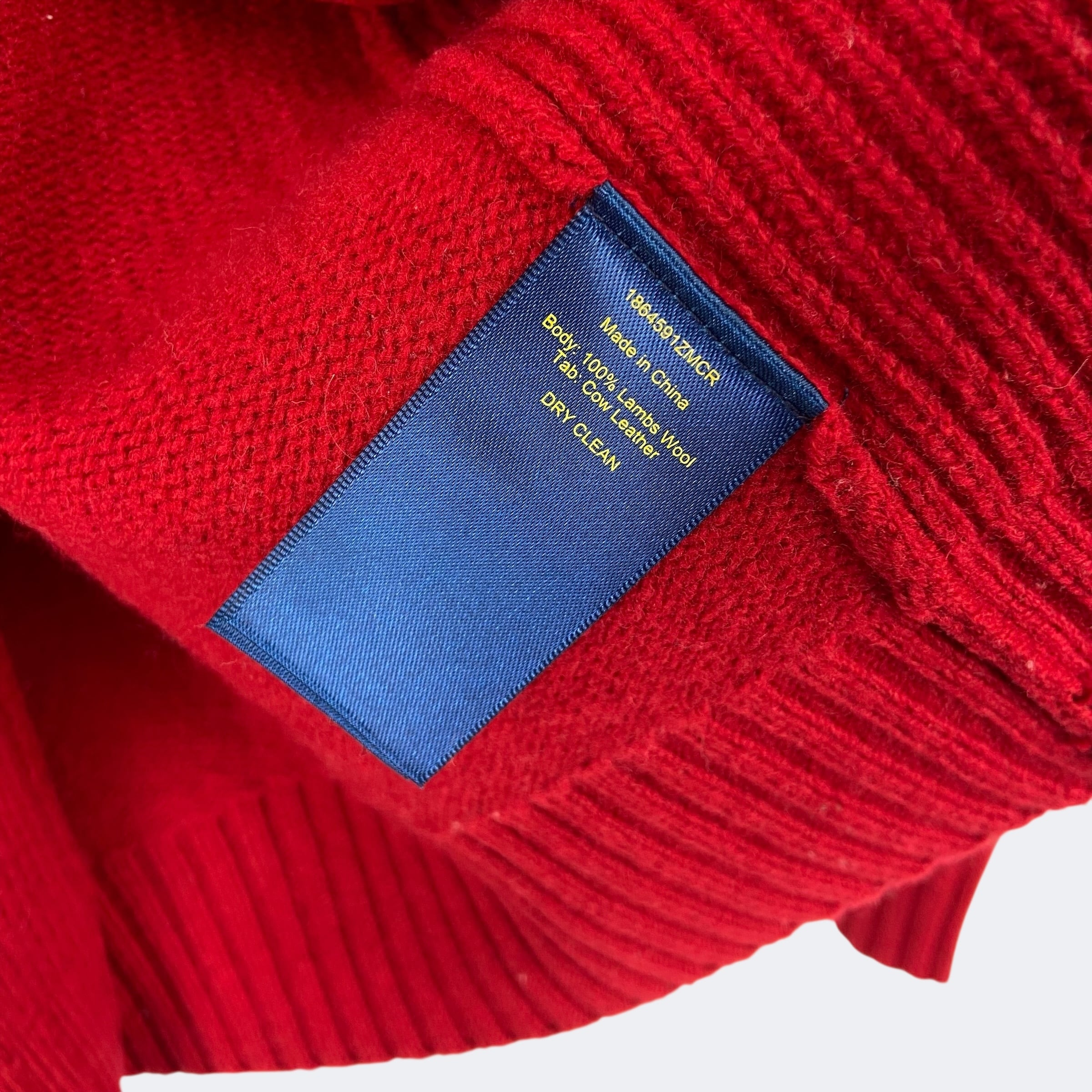 胸にビッグポニー、袖にナンバリングを刺繍で施したポロ ラルフローレンのジップアップニットになります。ショルダー、エルボー部分に同生地でパッチが施されており、身頃両サイドはリブ仕様になります。両脇下にはベンチレーション穴が施され、前開きのダブルジップ持ち手にはレザーを使用しています。