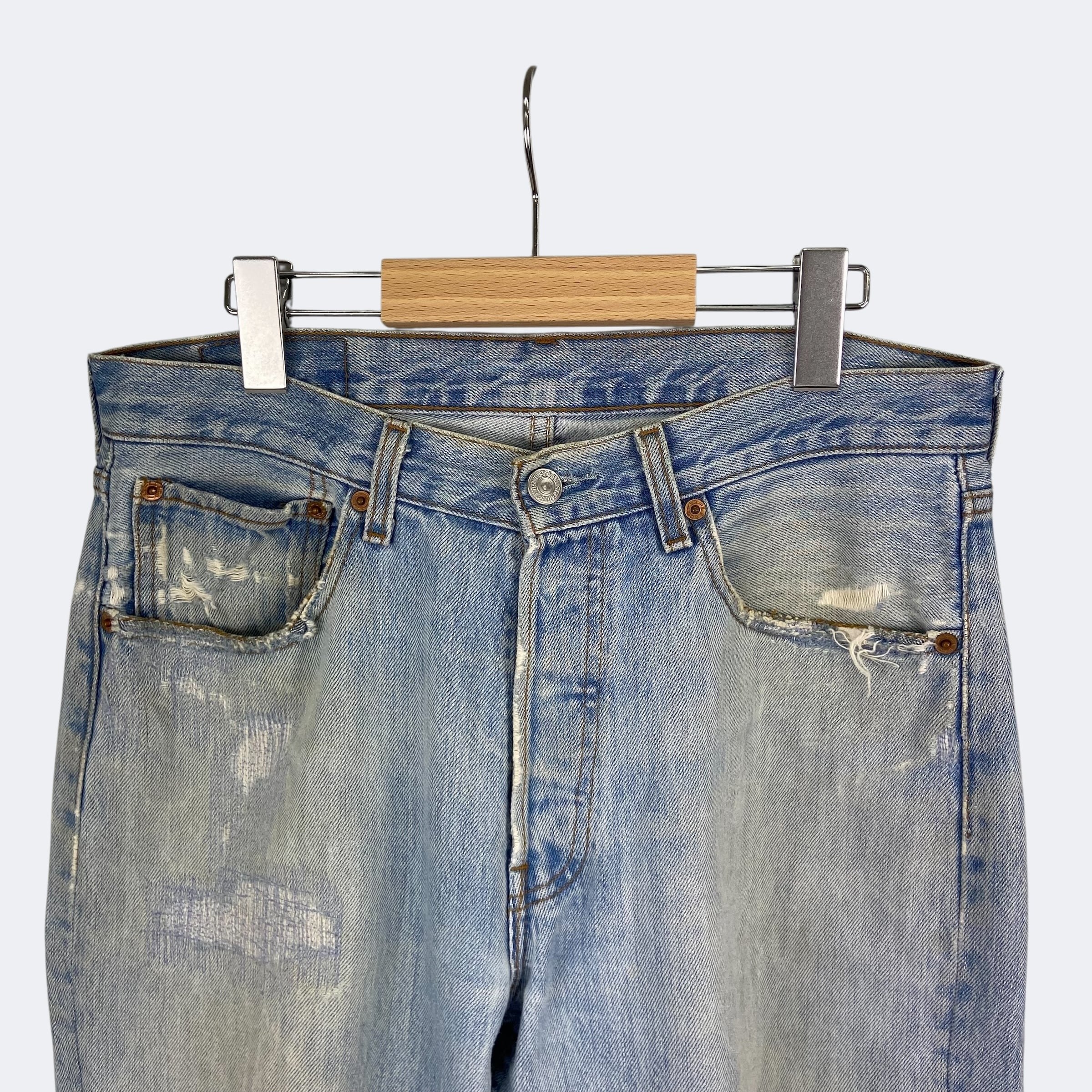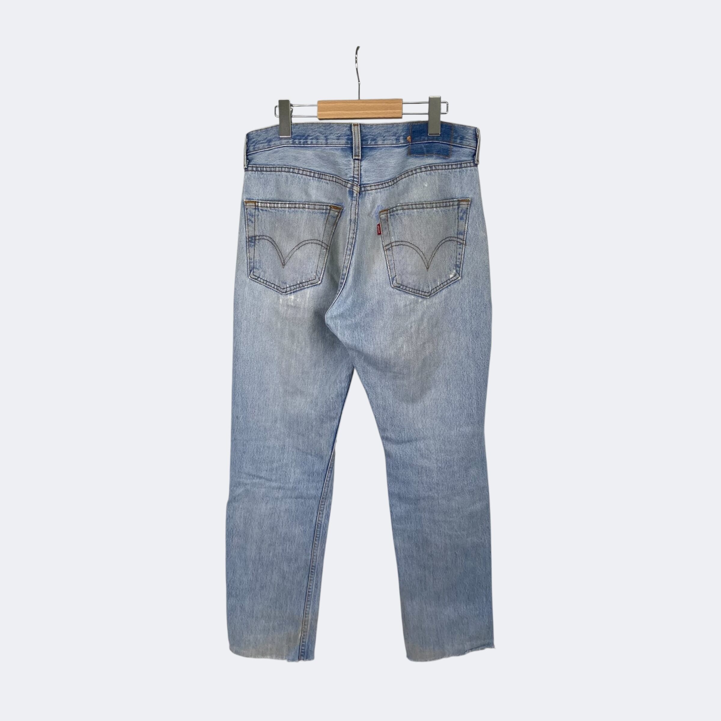 ジャーナルスタンダードがリメイクを手掛けたリーバイスのデニムパンツになります。ハンガリー製ボタン裏の刻印は252になります。大胆なクラッシュ、リペア加工が施されており、前開きはボタンフライになります。