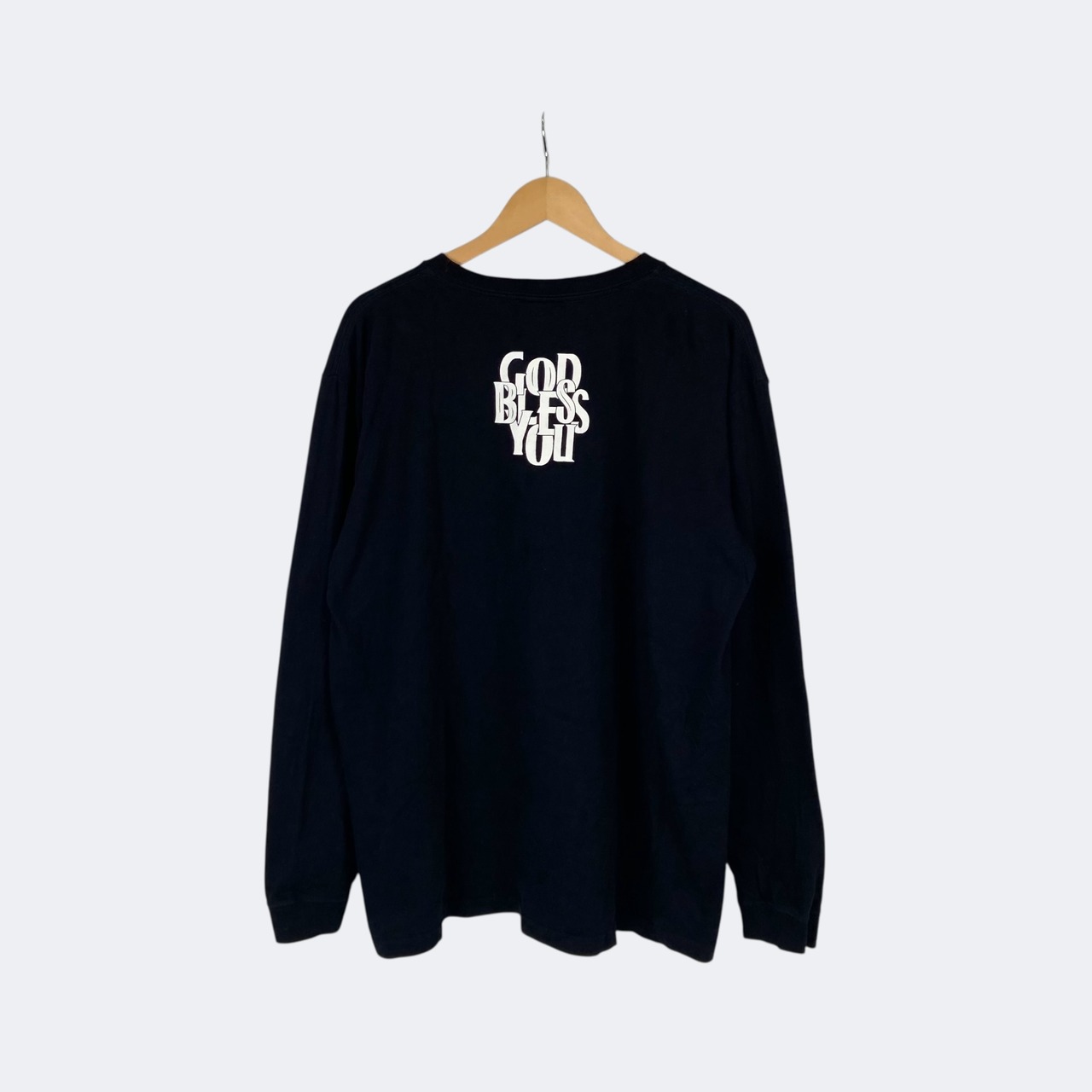 ゴッド ブレス ユーのロングスリーブTシャツになります。フロント、バック首元にグラフィックがプリントで入ります。