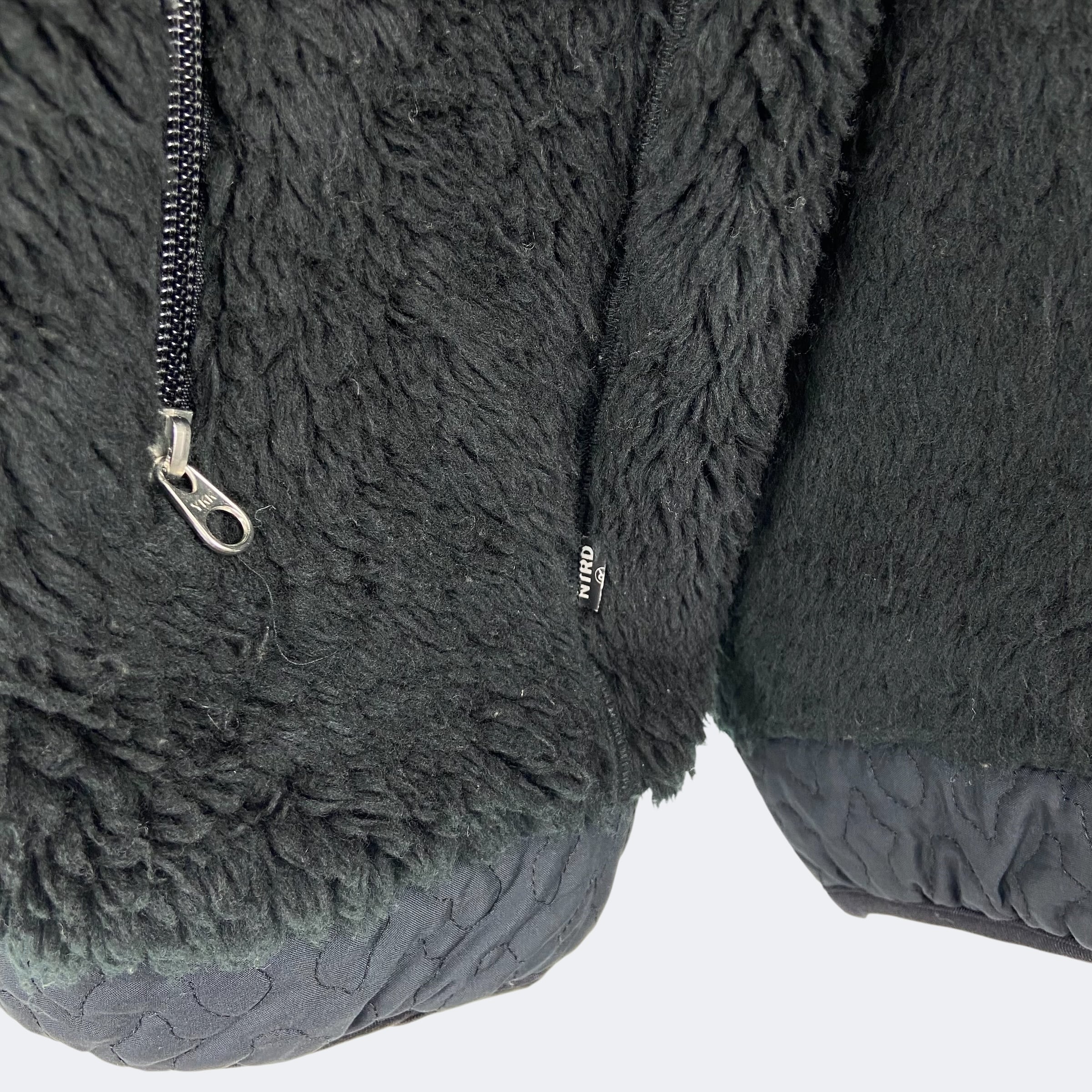 ボディにボアを使用したnitraidのフードジャケット。裾部分、肘から袖口にかけて、別生地のキルティング素材で切り替えされておりアクセントになっています。両サイドにはジップポケットが付き、サイドシームにはリフレクターのピスネームが付きます。