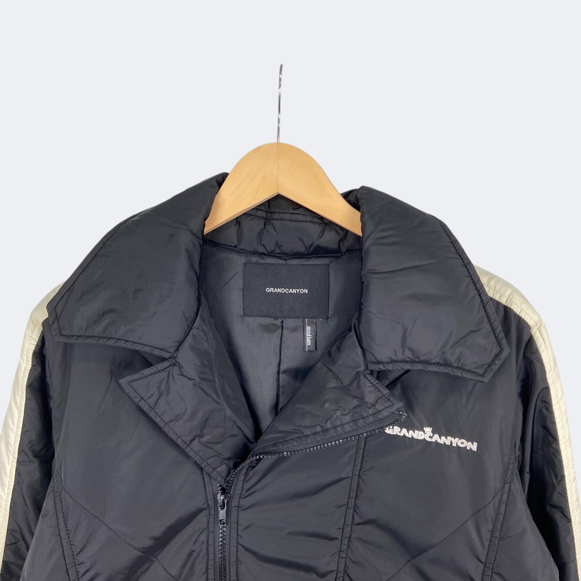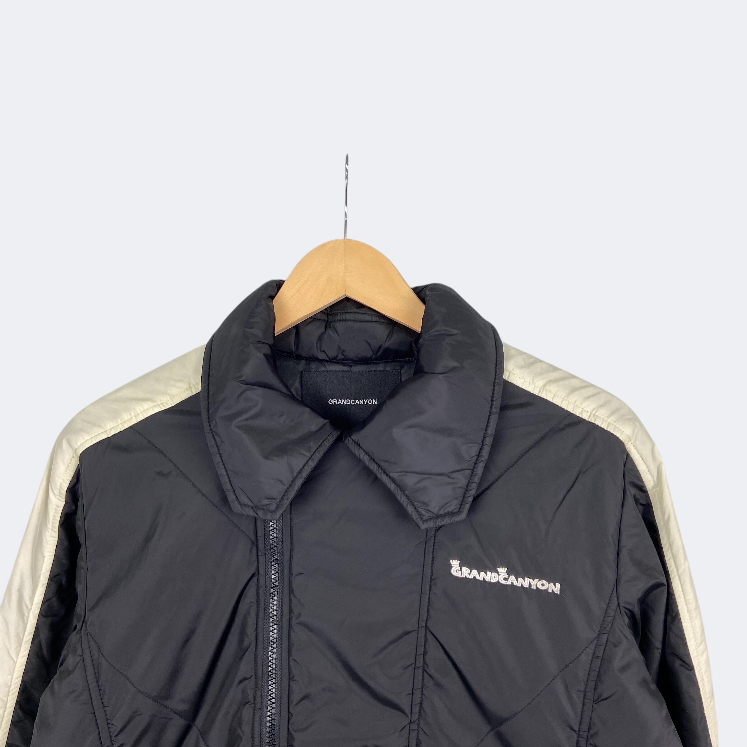 中綿を施したグランドキャニオンのライダースジャケット。ステッチラインが特徴的で袖には切り替えでラインが入ります。胸にはブランドロゴが刺繍で入り、腹部にはジップポケットが付きます。