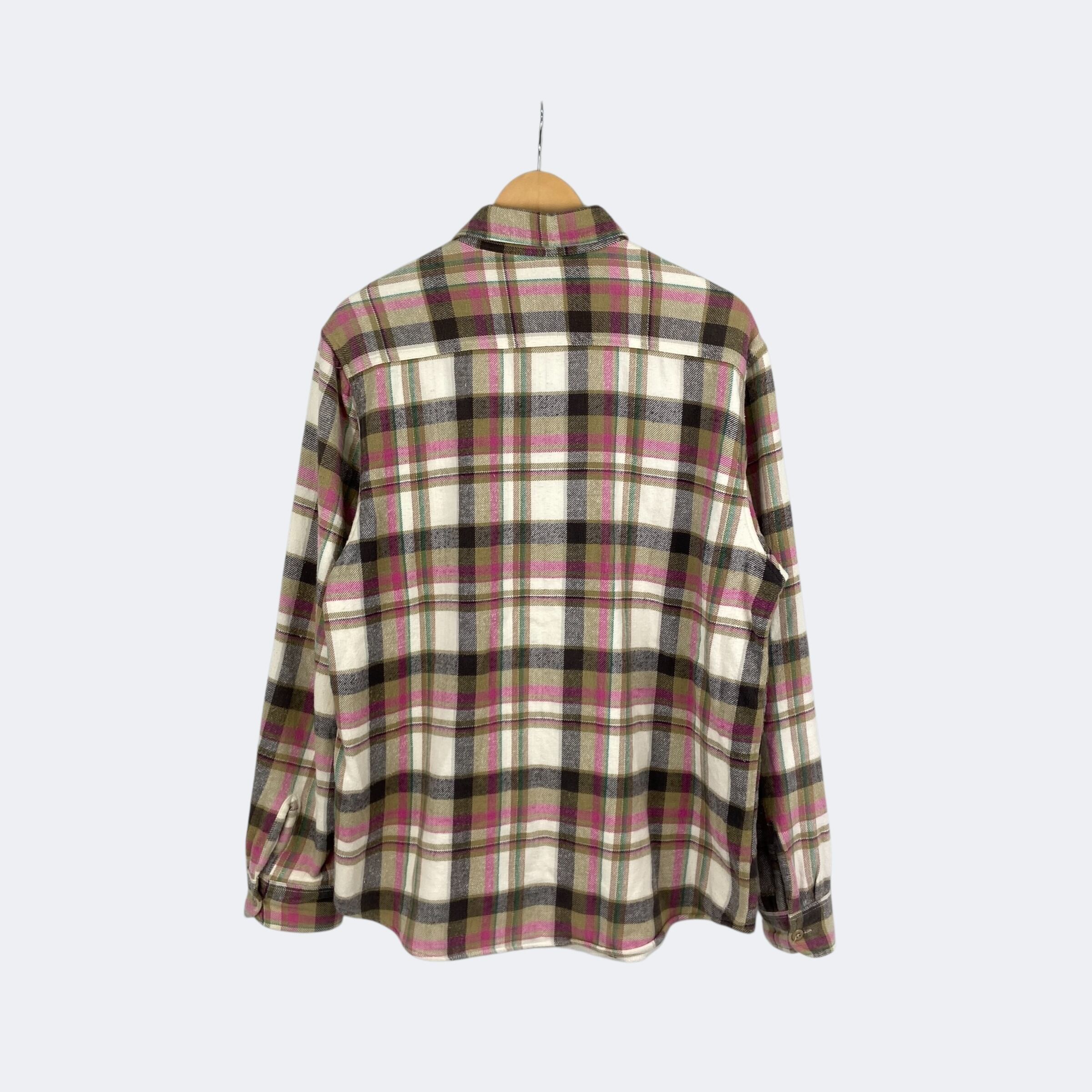 裏地にサーマル生地を施したステューシーのネルシャツになります。全体にチェック柄が織りで表現されており、胸にはパッチポケットとピスネームが付きます。保温性に優れた素材やカラーリングが季節感を与えてくれる1着です。