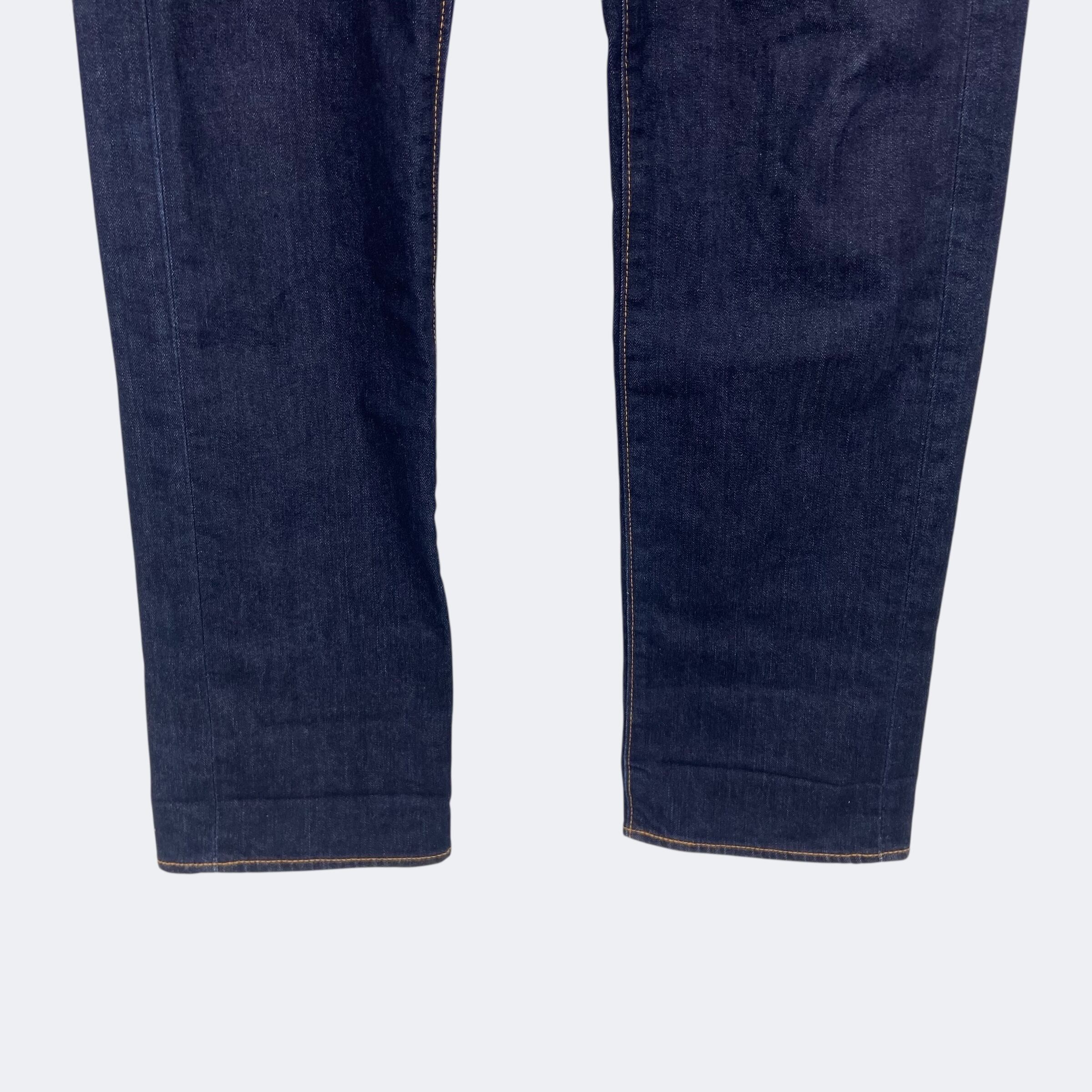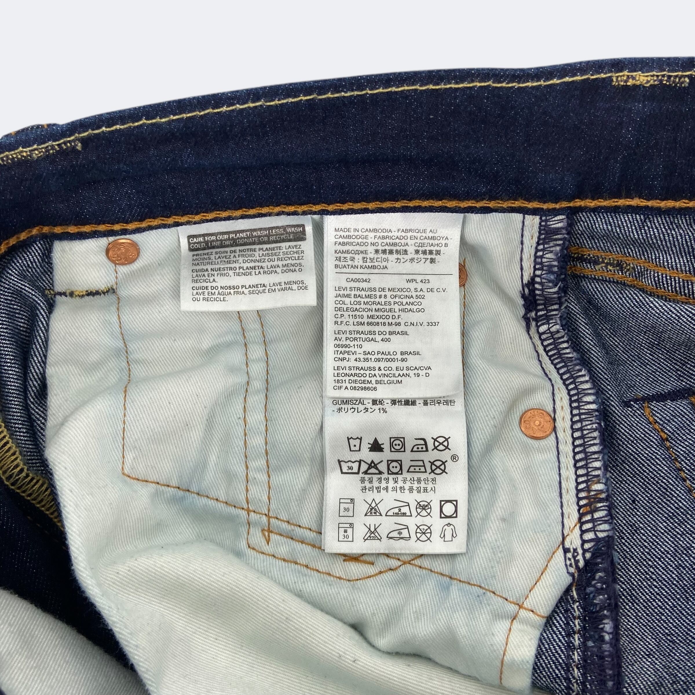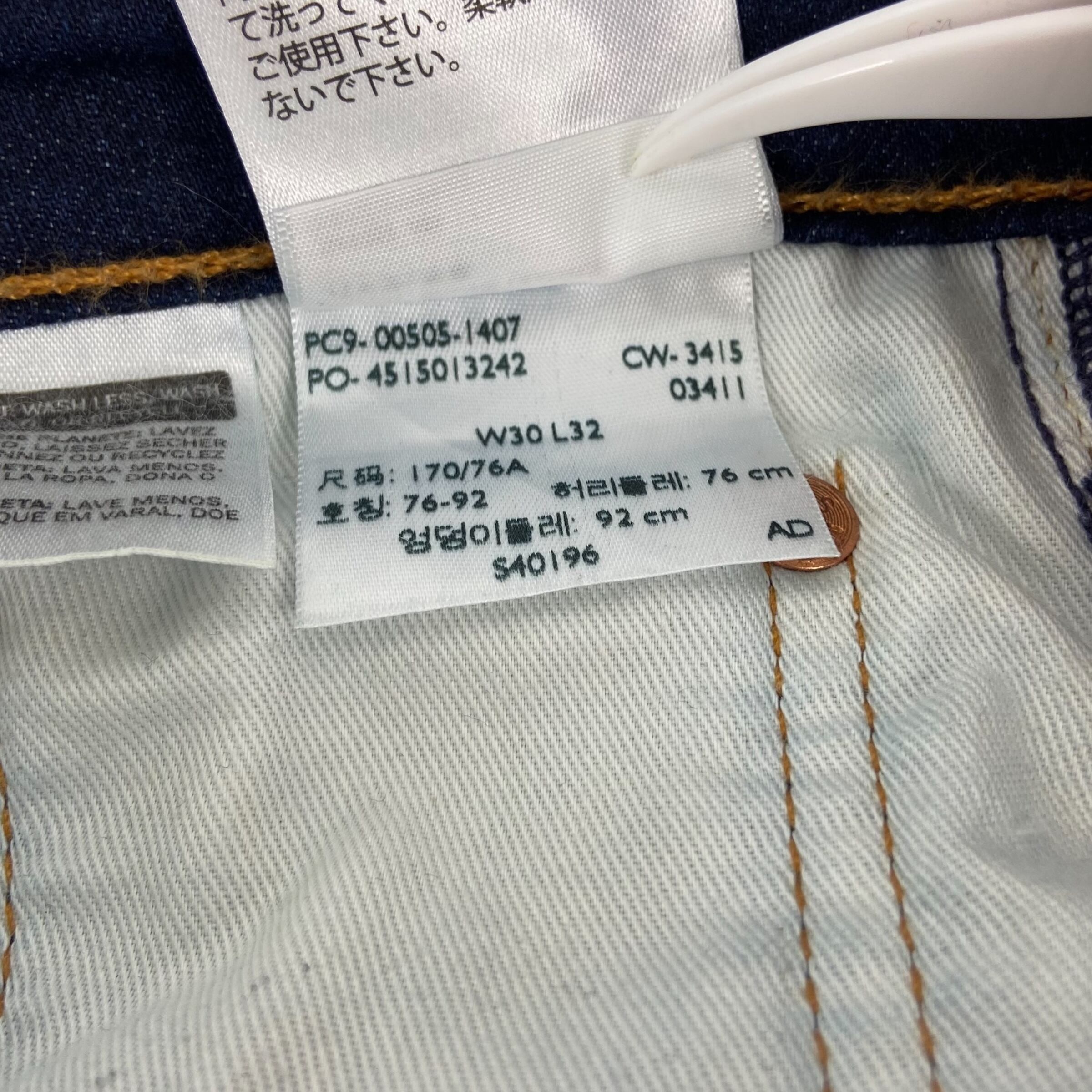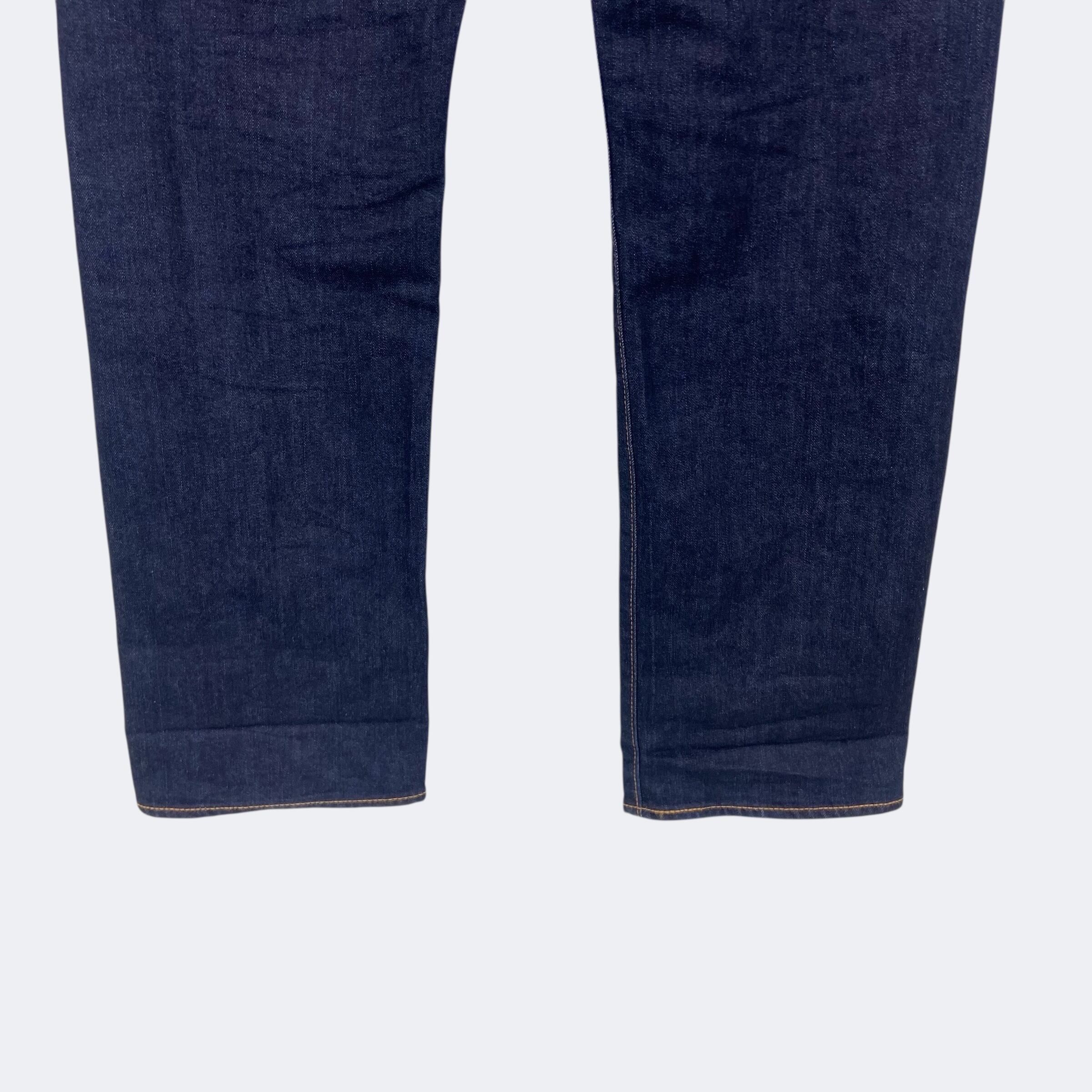 リーバイス505 ダークインディゴデニムパンツ。濃紺色になるため合わせやすく、流行り廃りなく着用いただけます。前開きはジップフライになり、バックにはレザーパッチが付きます。