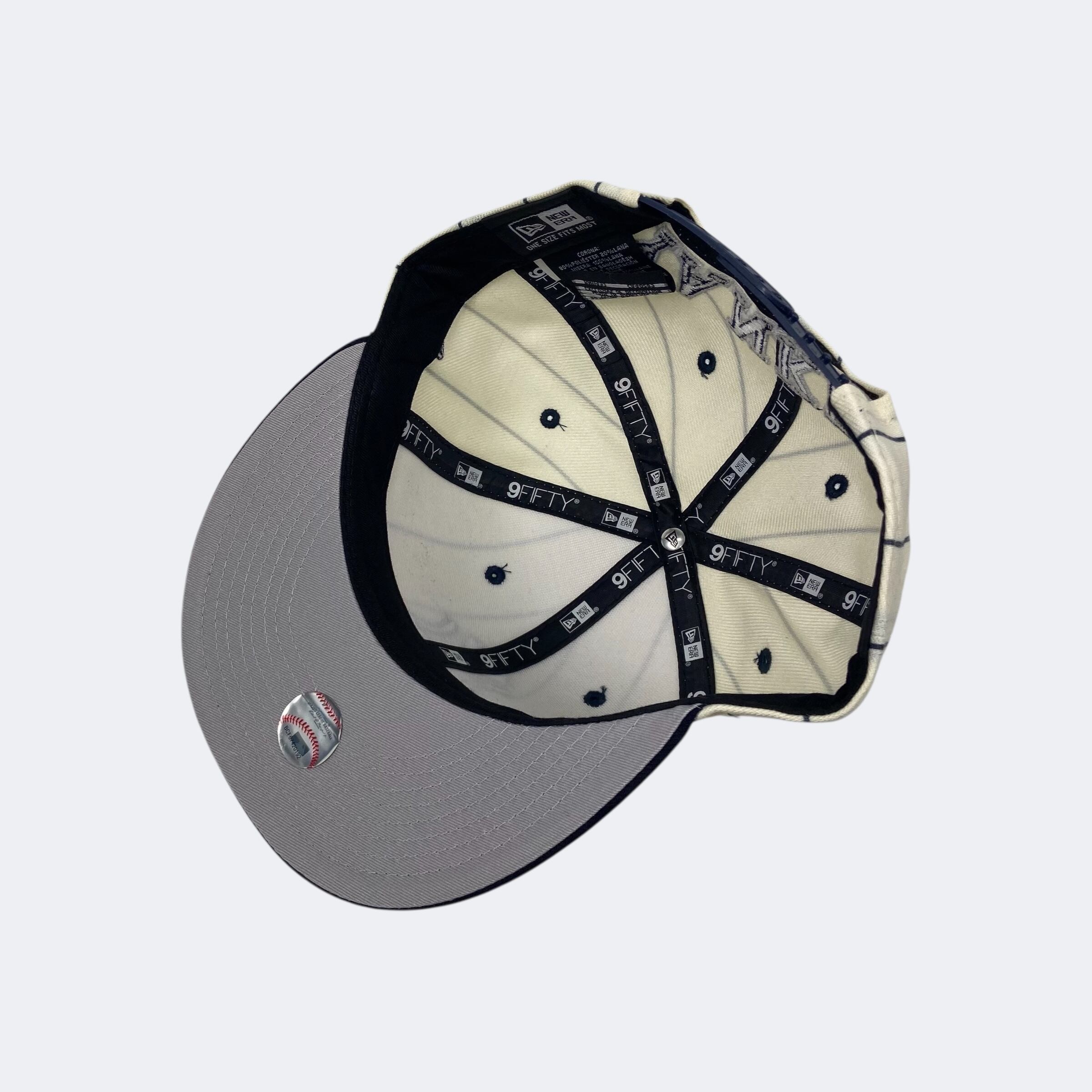 ホワイトのベースカラーにチームカラーのピンストライプをレイアウトしたクラシックなデザイン。ライトサイドにチームロゴ、リアにチーム名をアーチ状にレイアウト。アンダーバイザーはグレーでカラーリング。シルエットはアジャスタブル仕様でサイズ調整が可能な9FIFTYです。
