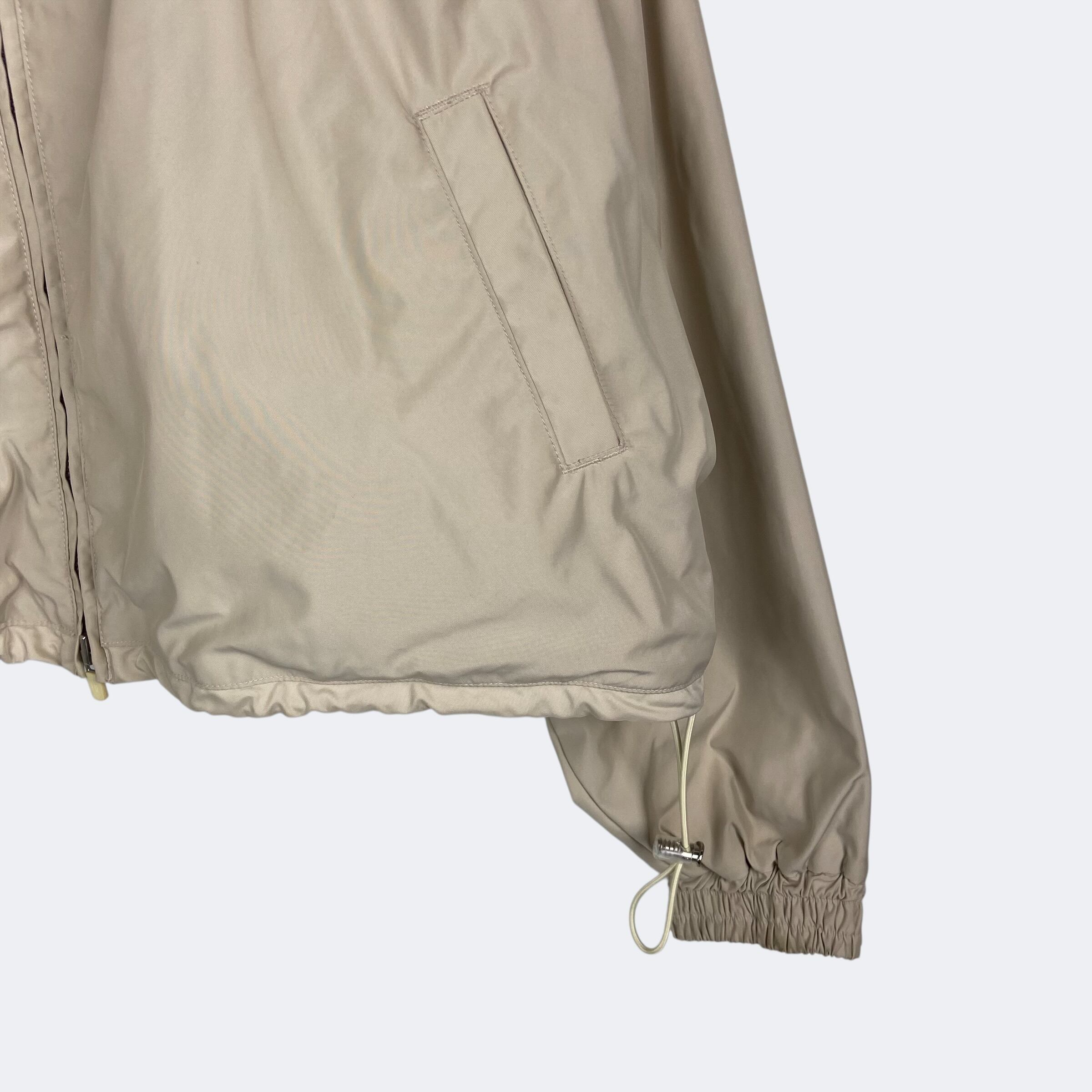 ショートめな丈感にワイドシルエットが特徴的なナイロンフードジャケット。バックにはキャンバス地で切り替えが施されており、ラバーの立体モチーフがプリントされているため、アクセントになっています。袖口はベルクロ仕様になり、裾にはドローコードが通るためサイズ、シルエット調整が可能です。