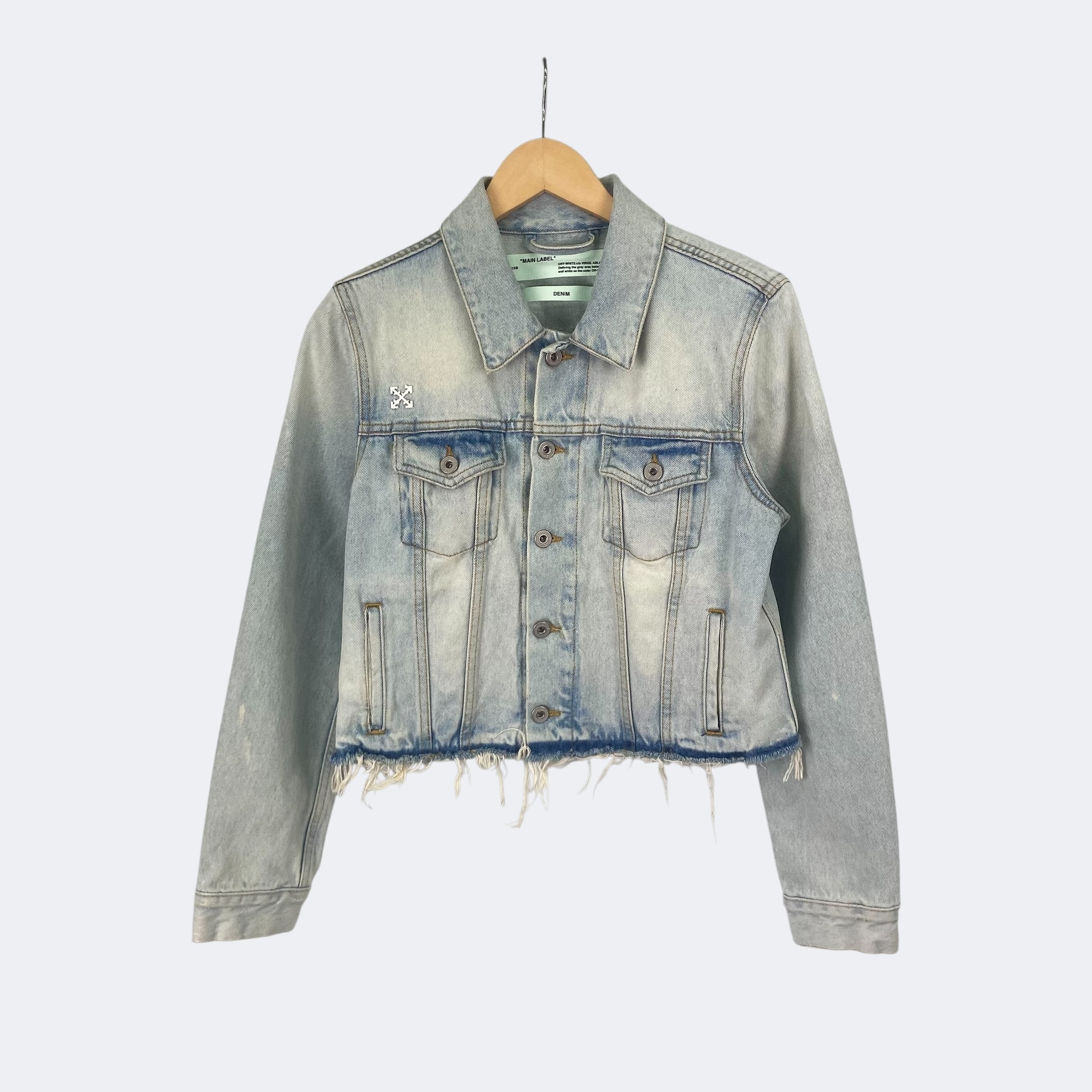 OFF-WHITE レディース デニム ジャケット オフホワイト クロップド ショート丈