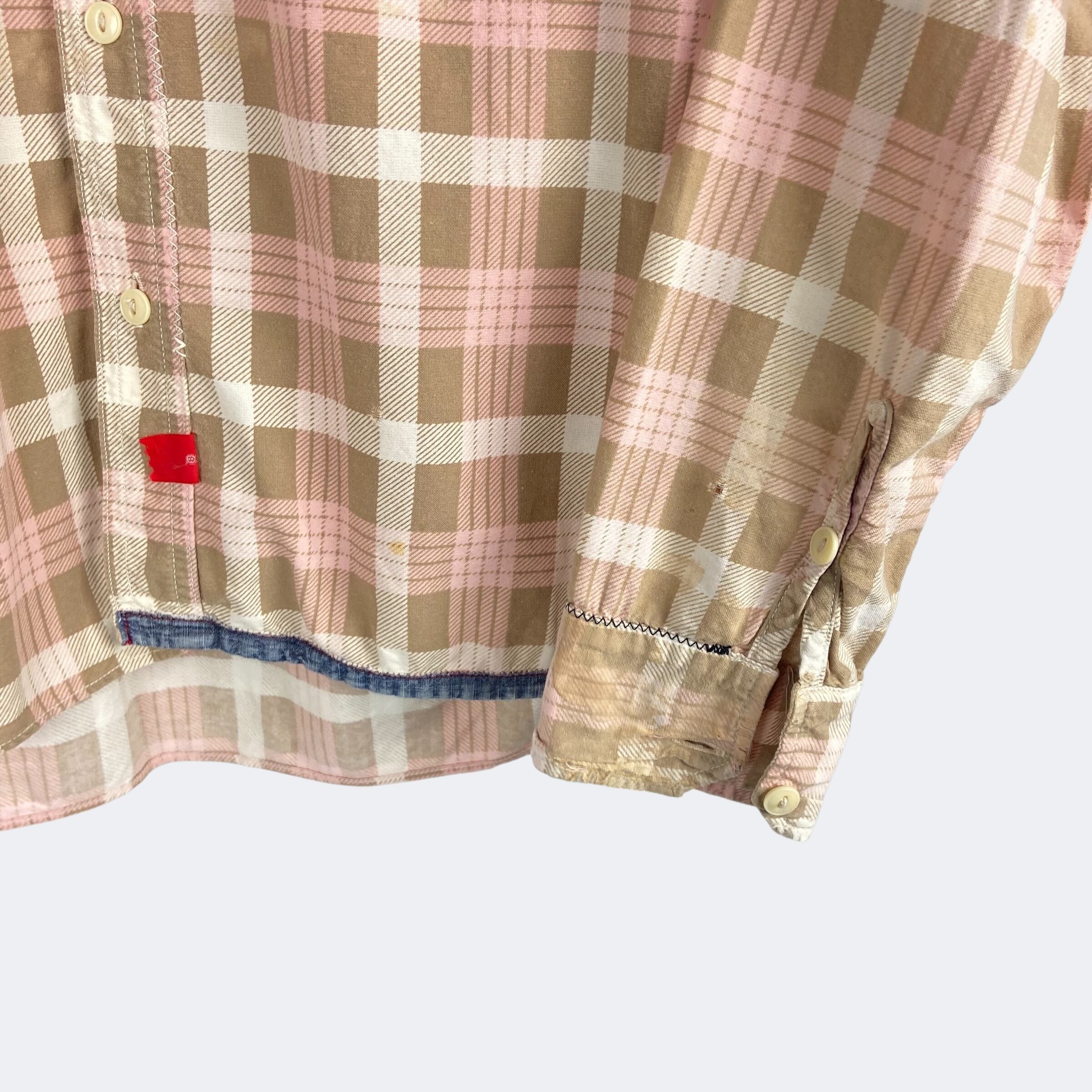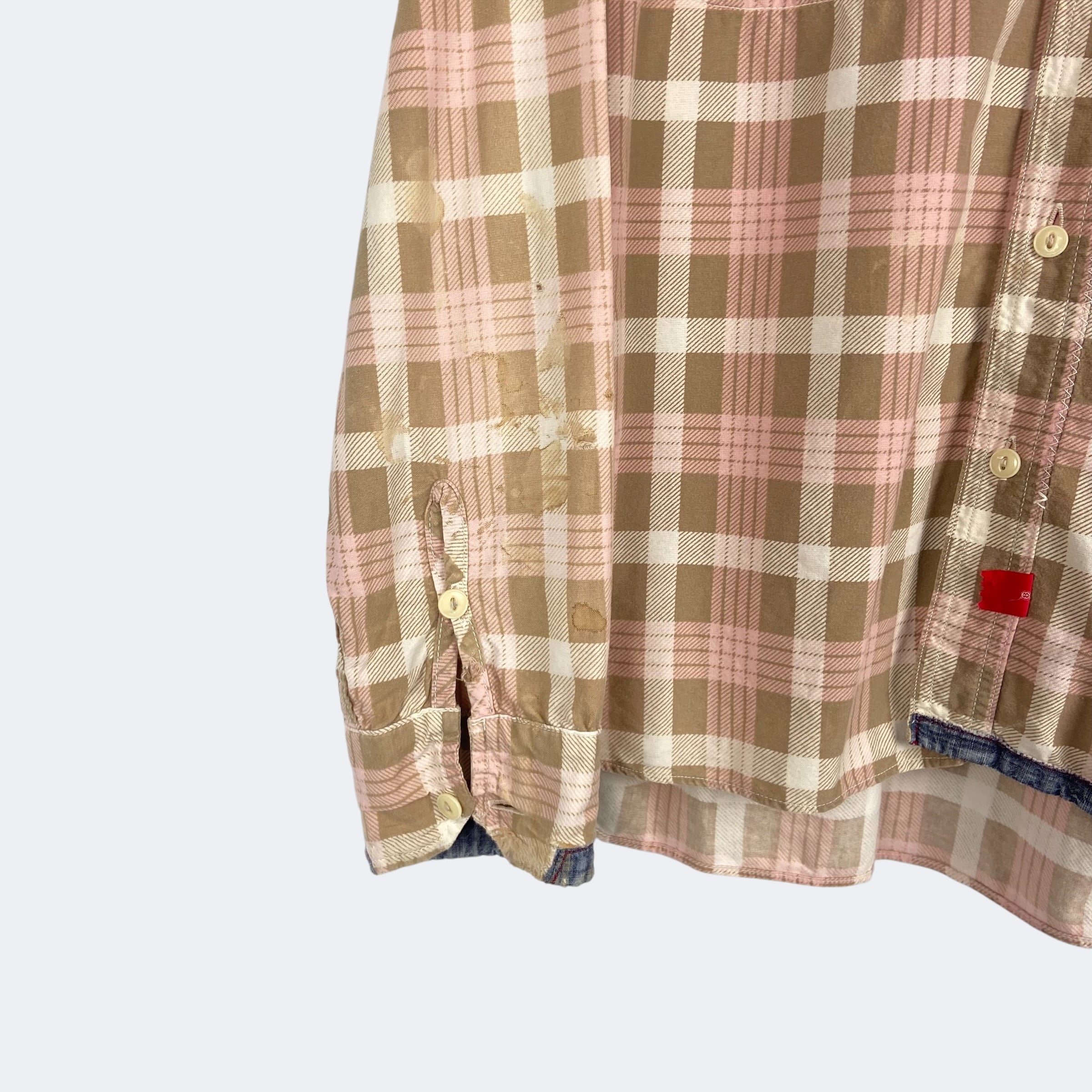 熟練職人による高度な加工・リメイク・縫製技術で仕立てられた、アナクロノームのチェックシャツになります。リペアやダメージは手作業による加工が施されているため唯一無二の風合いに仕上がっています。