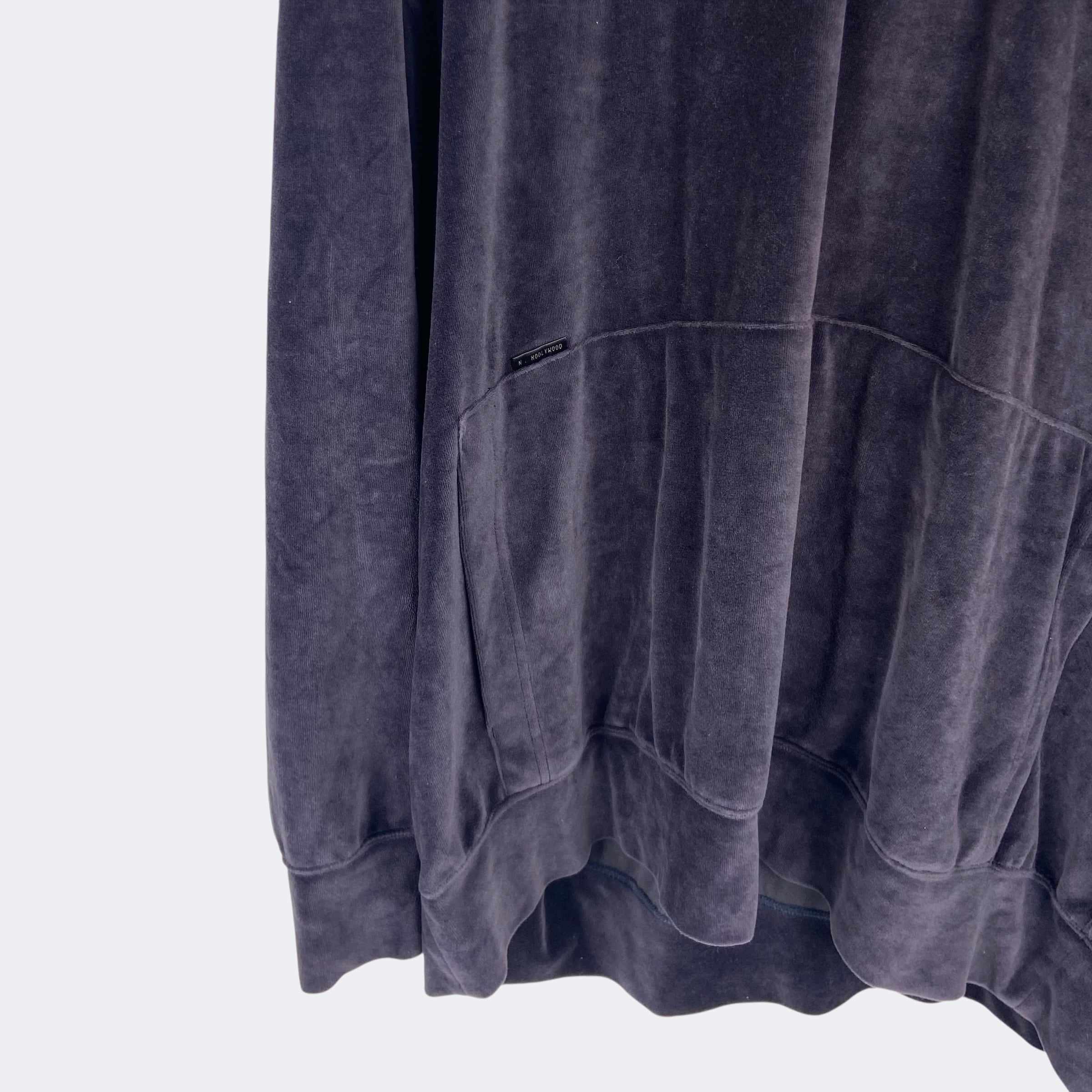 ボディに柔らかく膨らみがあり、肌触りの良いベロア素材を使用したNハリウッドのプルオーバーパーカーになります。中肉厚でドレープ感があり、程よい光沢感が特徴でストレッチ性に優れます。また、顔をすっぽり包み込む大きめのフードが付き、裾は締め付けのないリブ仕様になります。フロントポケット上、左袖には N.HOOLYWOODのアイコンであるブラックのブランドネームを配置。ドロップショルダーのボックスシルエット。
