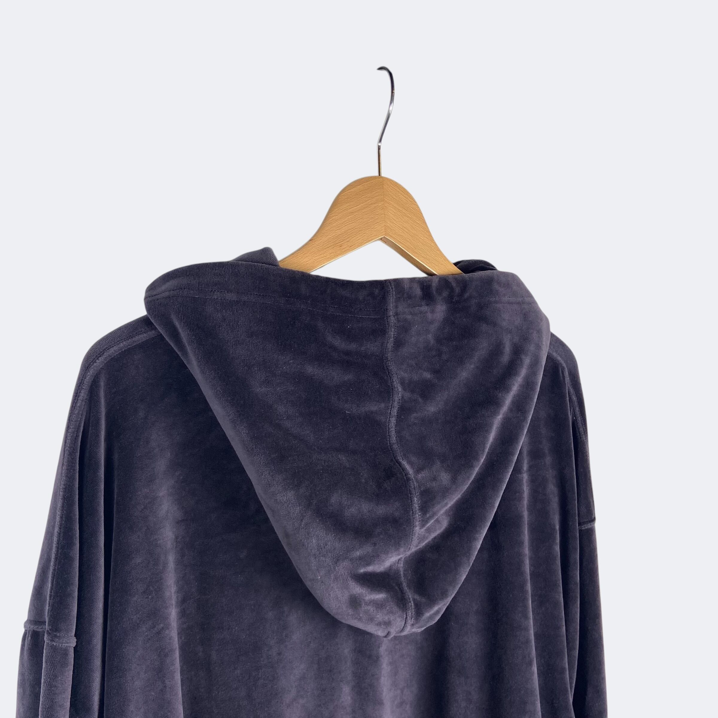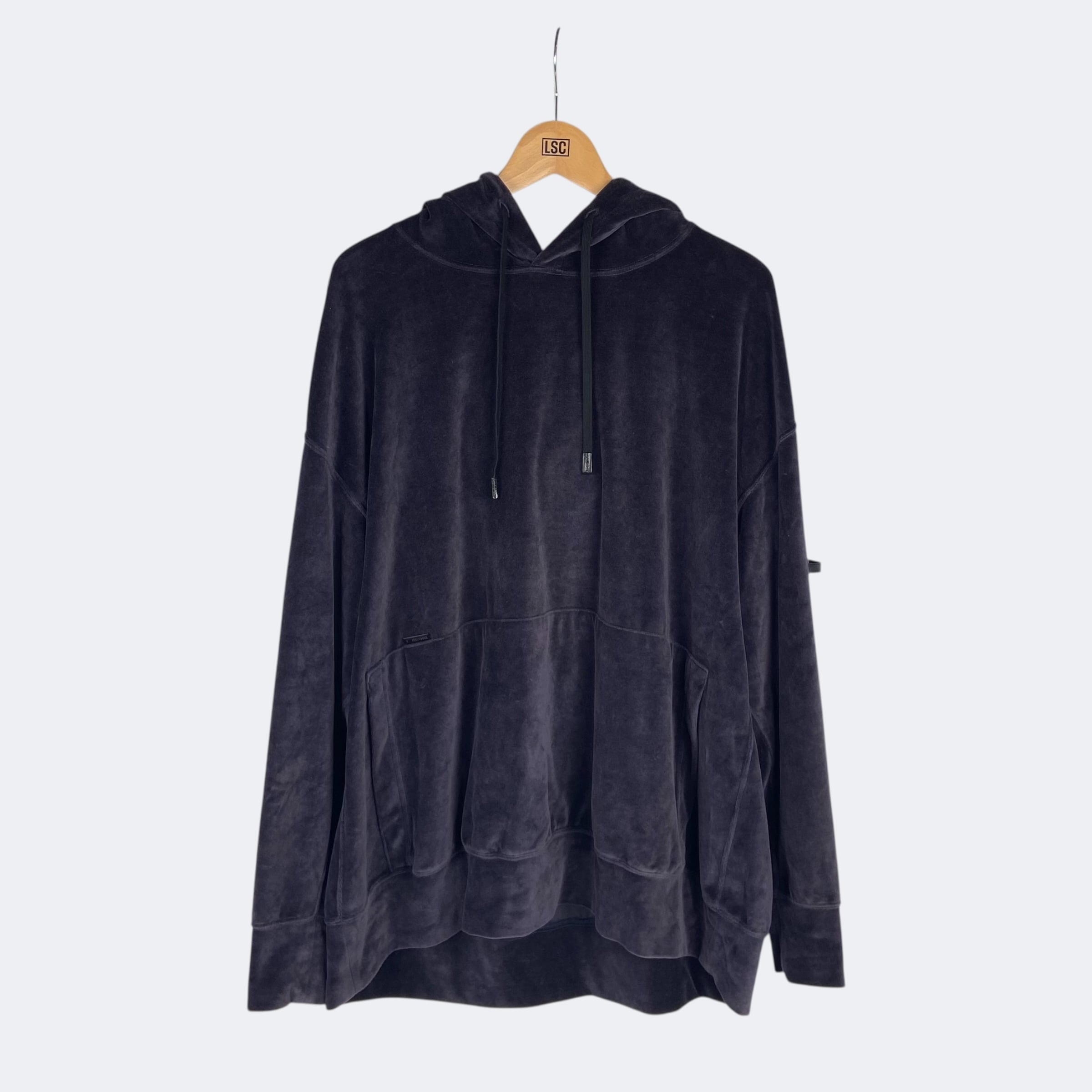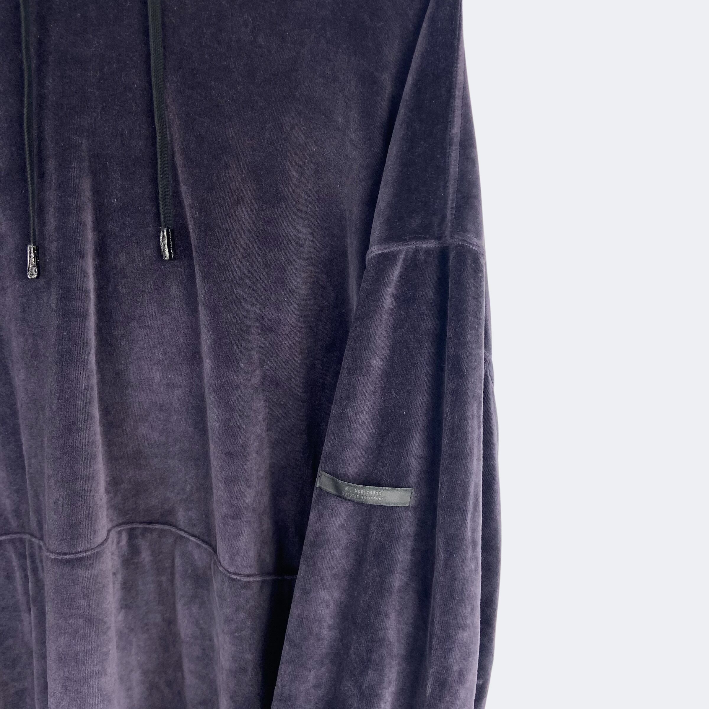 ボディに柔らかく膨らみがあり、肌触りの良いベロア素材を使用したNハリウッドのプルオーバーパーカーになります。中肉厚でドレープ感があり、程よい光沢感が特徴でストレッチ性に優れます。また、顔をすっぽり包み込む大きめのフードが付き、裾は締め付けのないリブ仕様になります。フロントポケット上、左袖には N.HOOLYWOODのアイコンであるブラックのブランドネームを配置。ドロップショルダーのボックスシルエット。