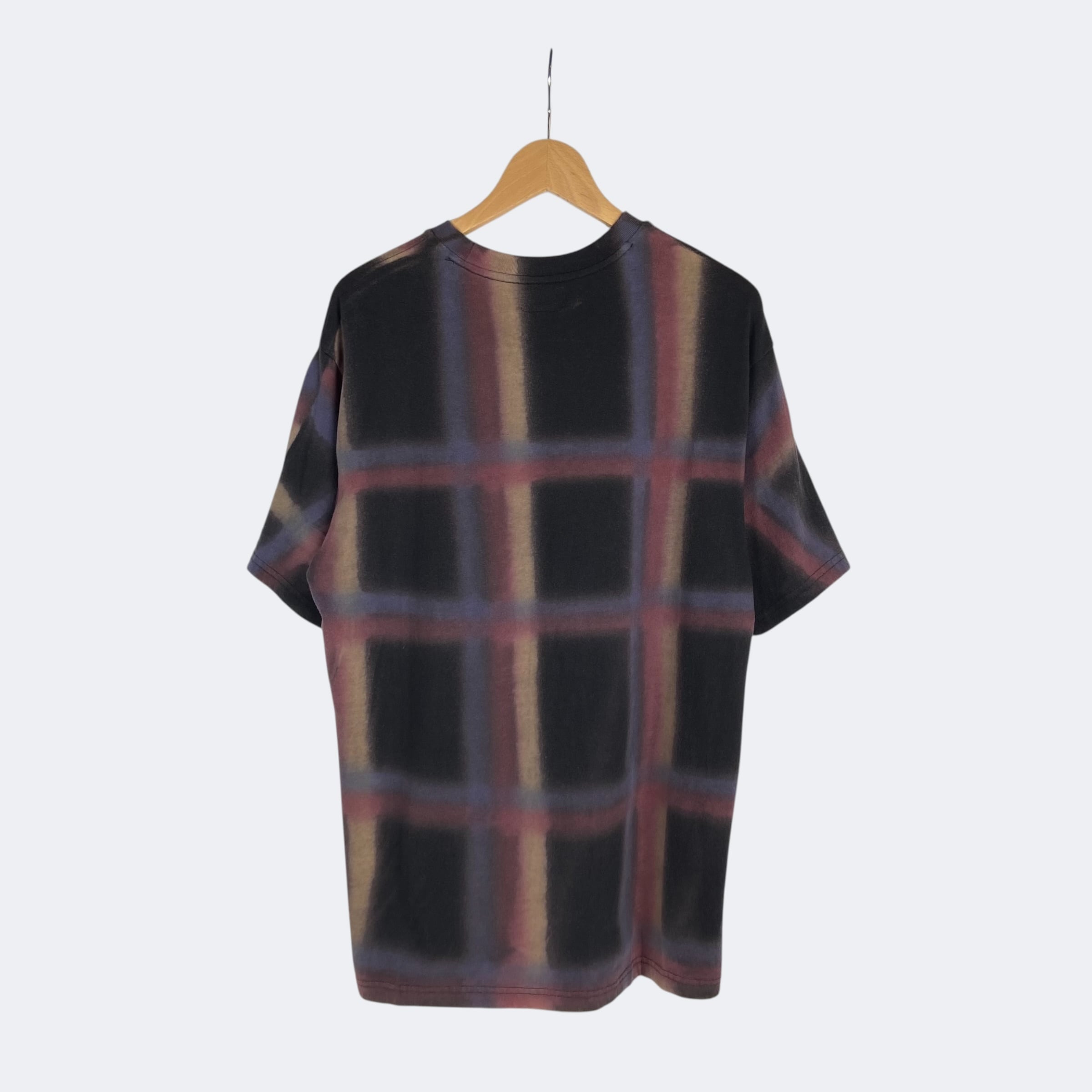 スプレーで表現したかのようなチェック柄をあしらったクルーネックTシャツになります。ボディには肌触りの良いソフトなコットン生地を使用しています。左胸にはブランドロゴが刺繍で入ります。