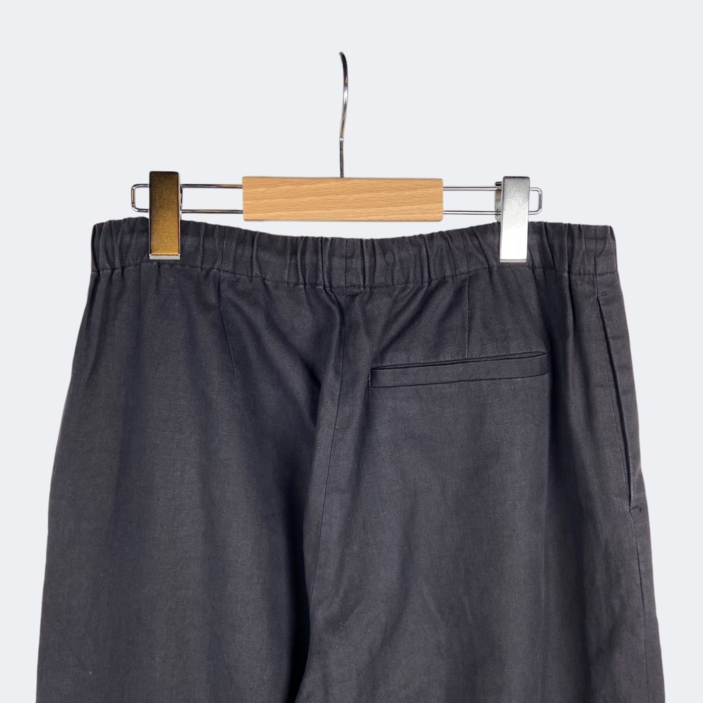 リネン混紡のコットン生地を使用したイージー仕様のパンツになります。ウエストはゴム+紐が通るため着脱が容易になります。両サイドにはポケットが付き、バックのみフェイクポケットになります。