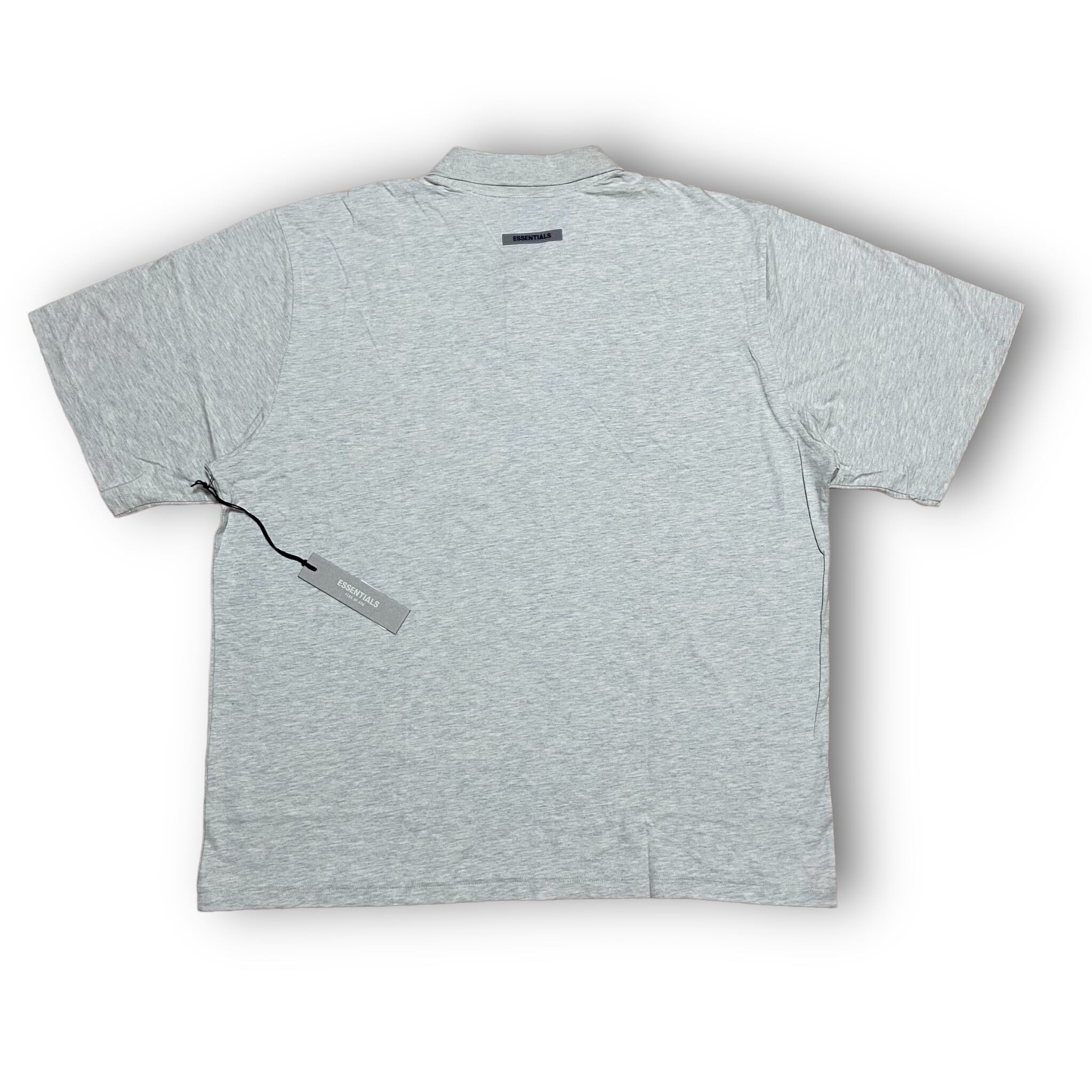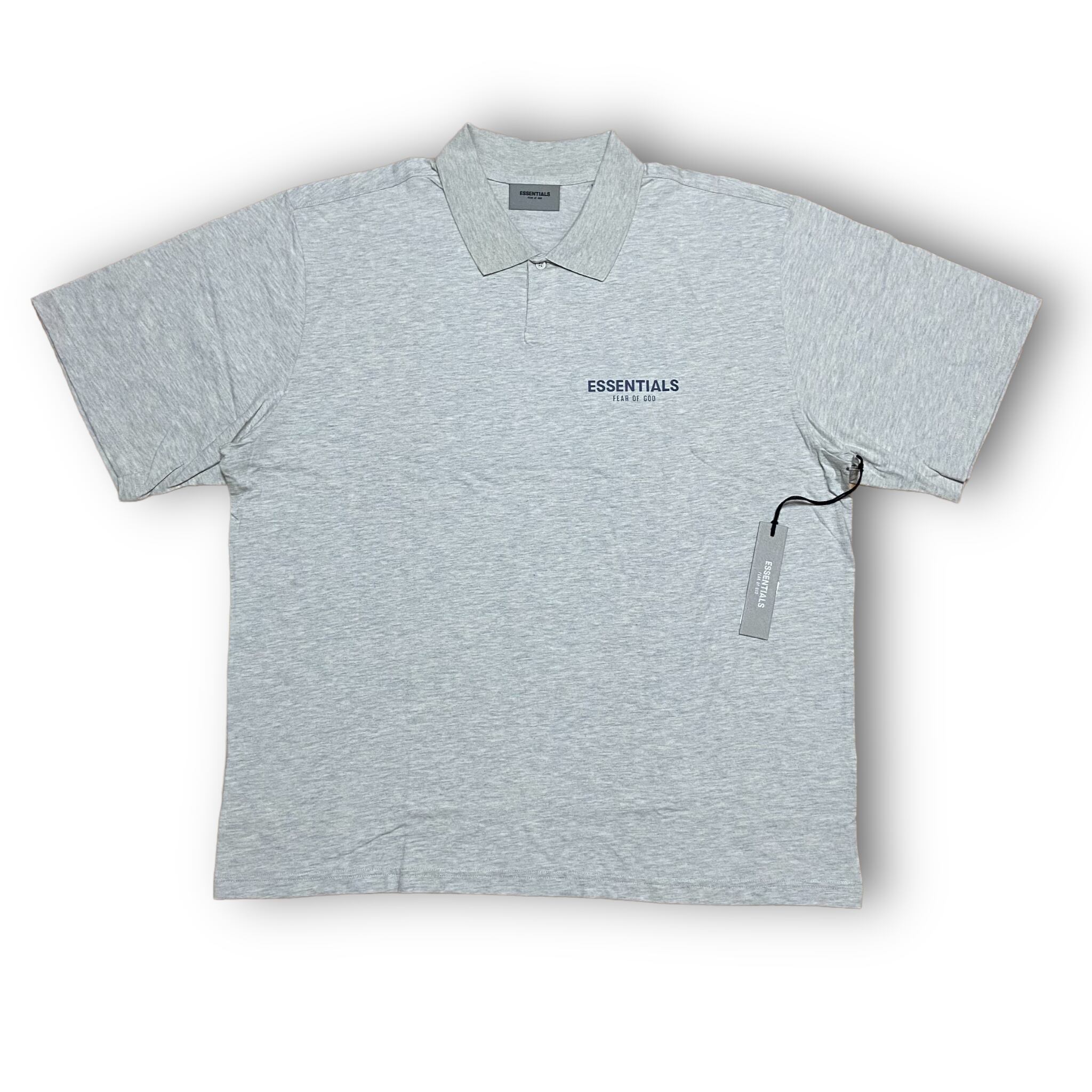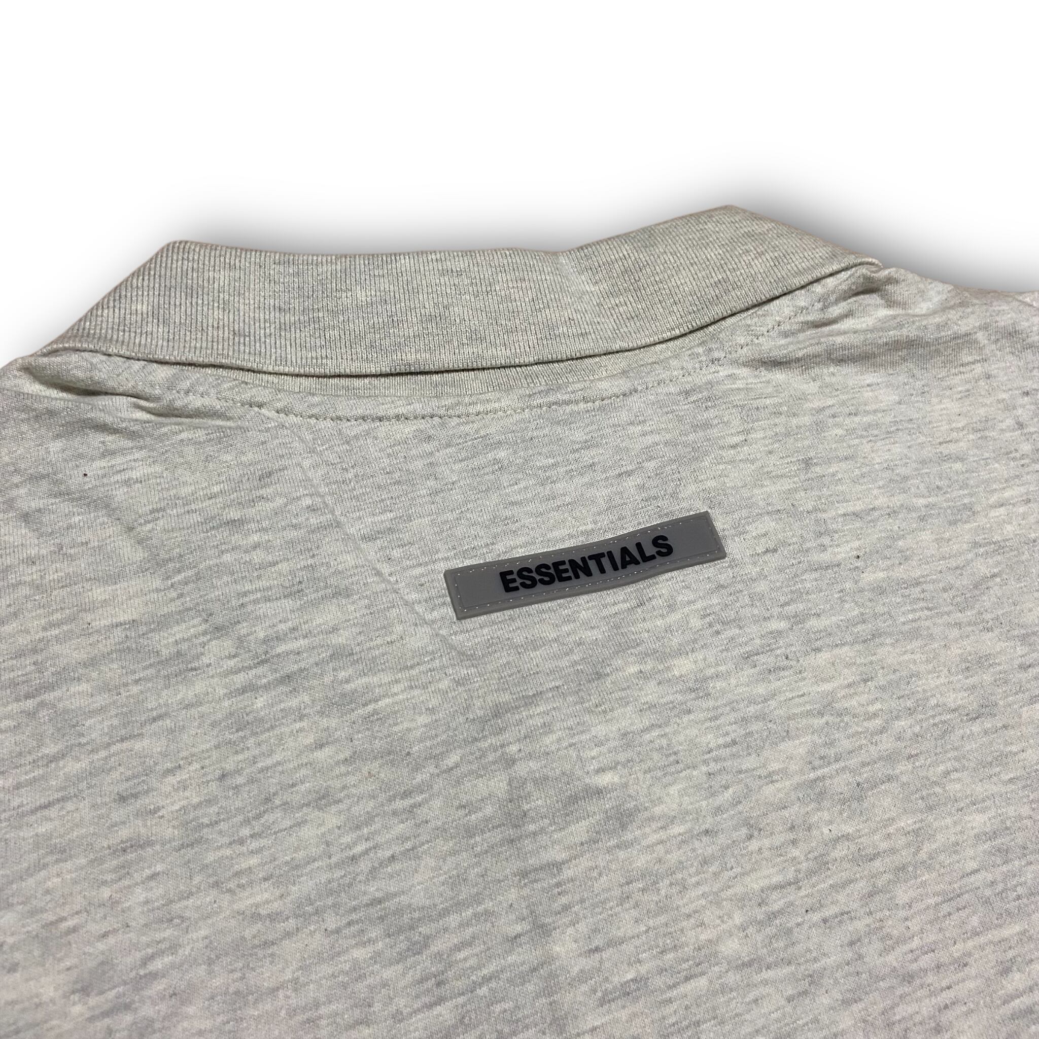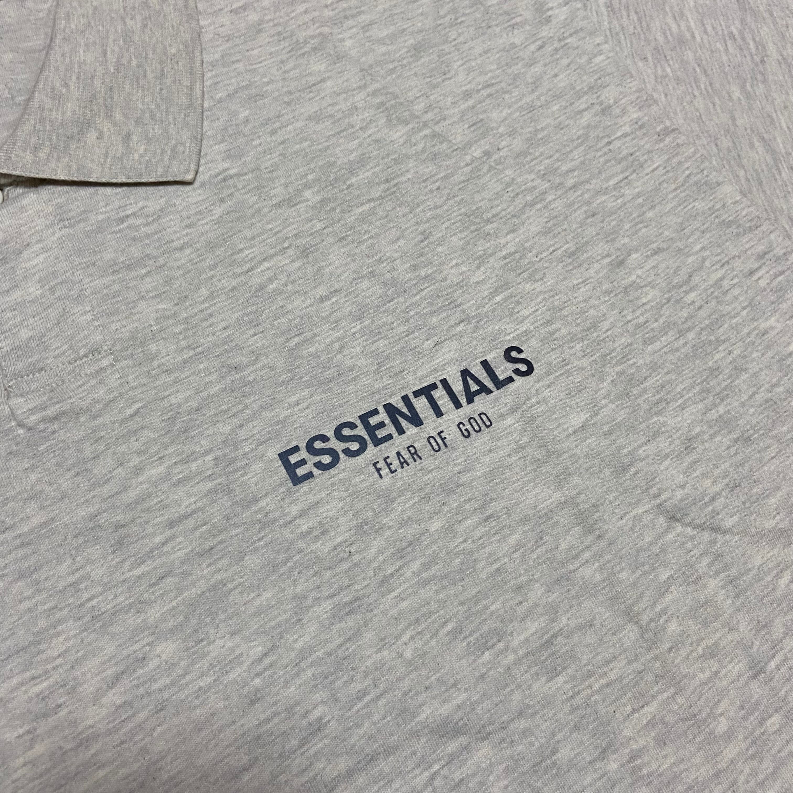 左胸に"ESSENTIALS FEAR OF GOD"のリフレクタープリントが施されたポロシャツ。