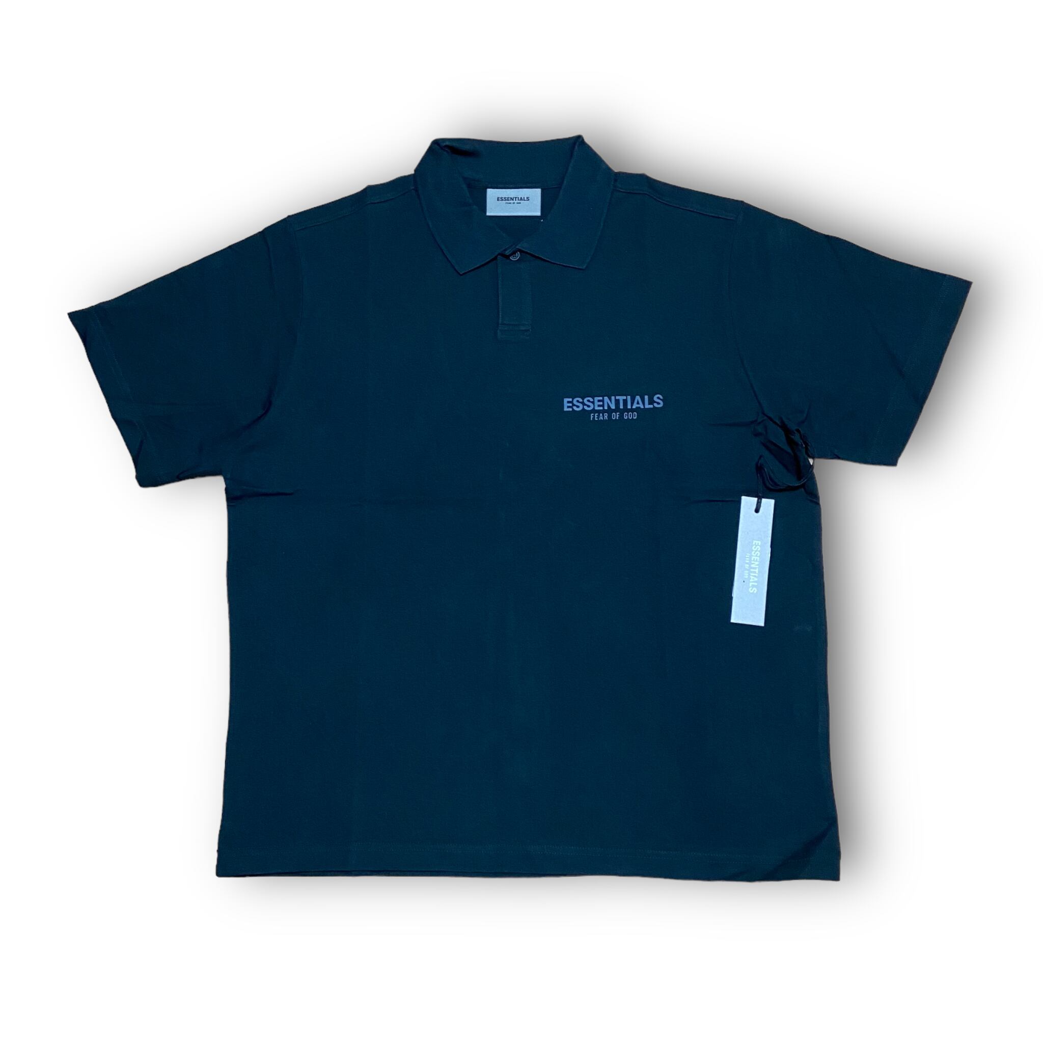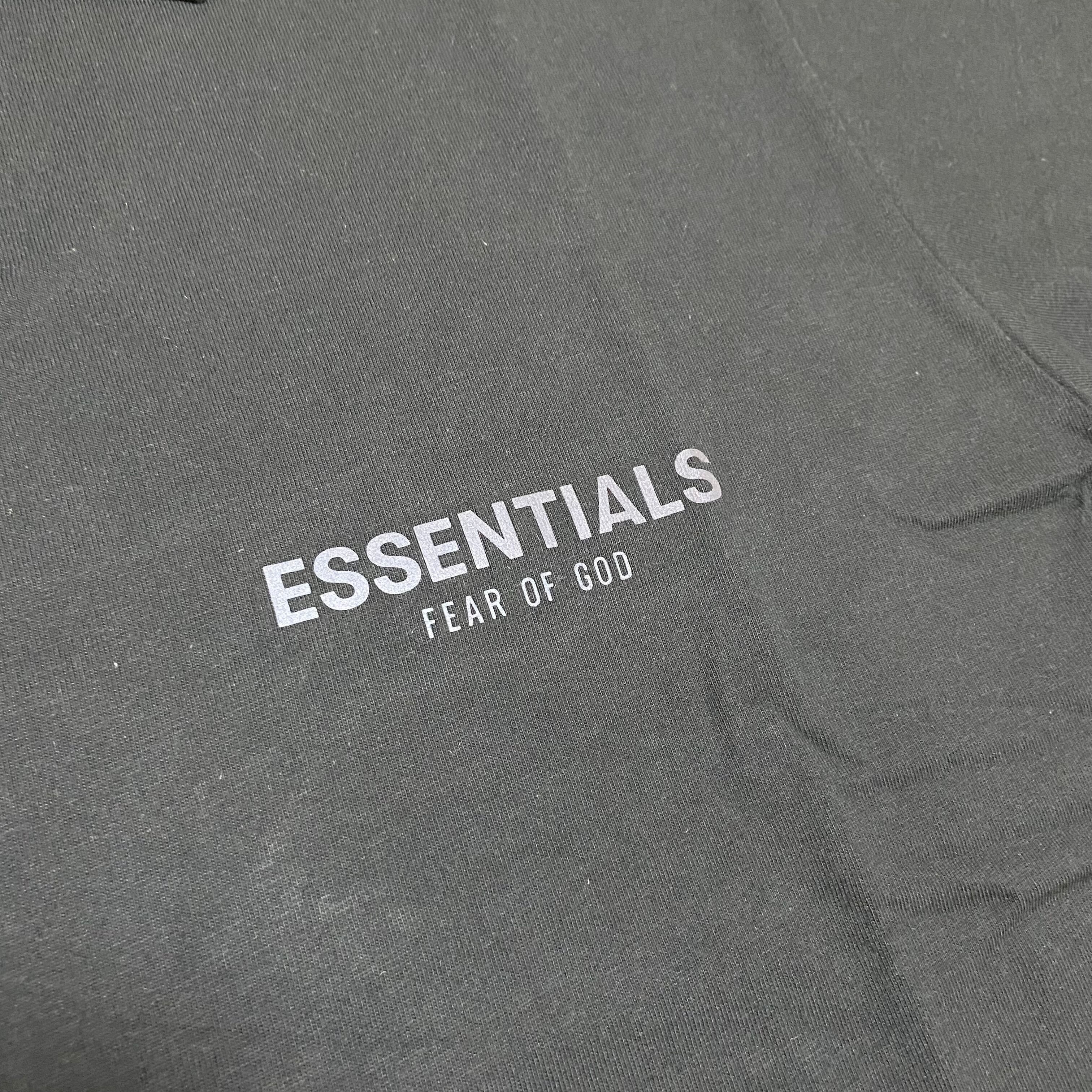 左胸に"ESSENTIALS FEAR OF GOD"のリフレクタープリントが施されたポロシャツ。