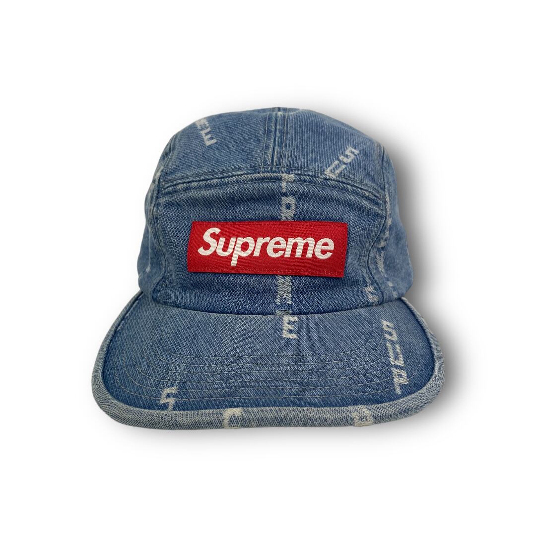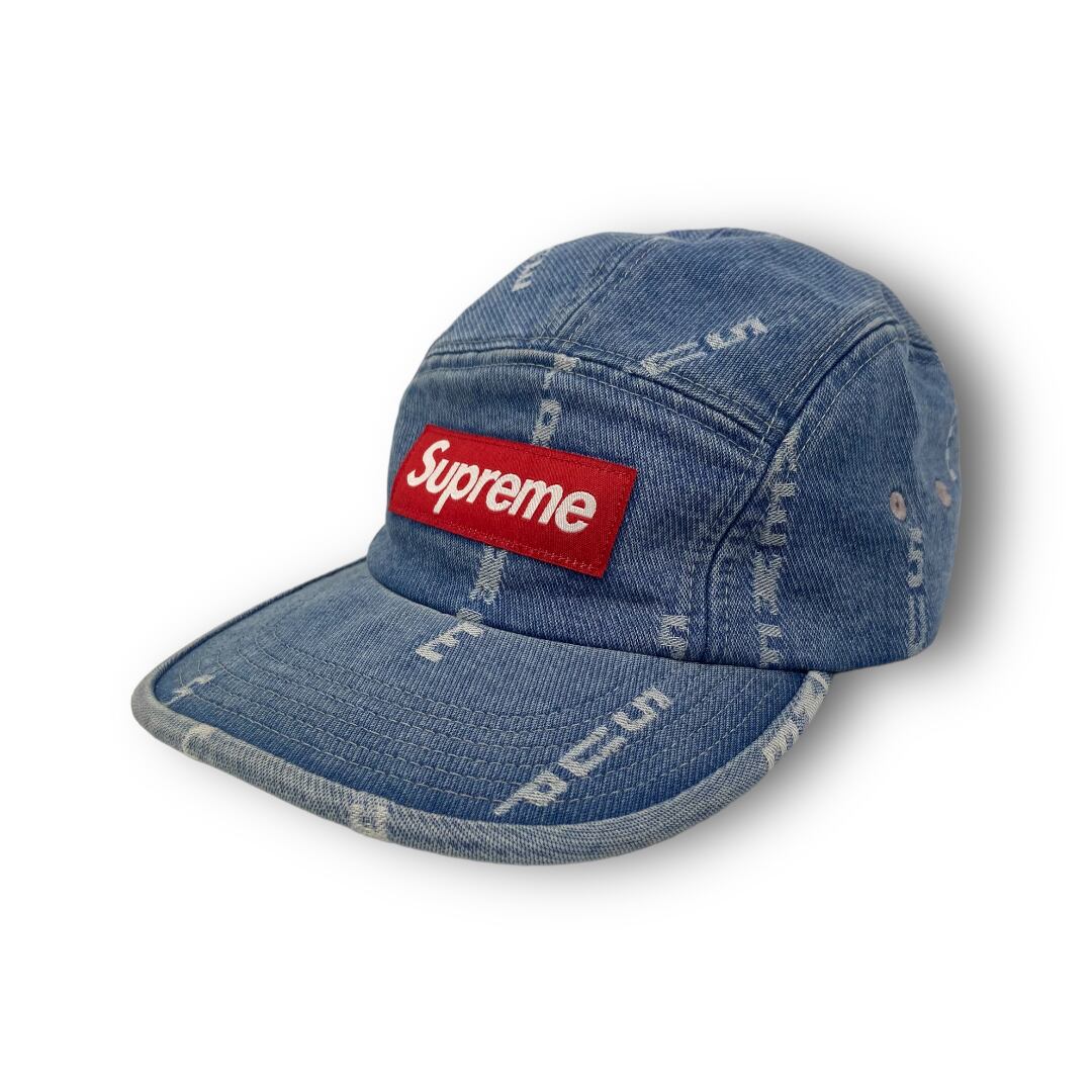 SUPREMEロゴをジャガード織りで表現したキャンプキャップになります。ウォッシュ加工を施したデニム生地の風合いある表情が特徴になり、フロントにはBOXロゴが施されています。