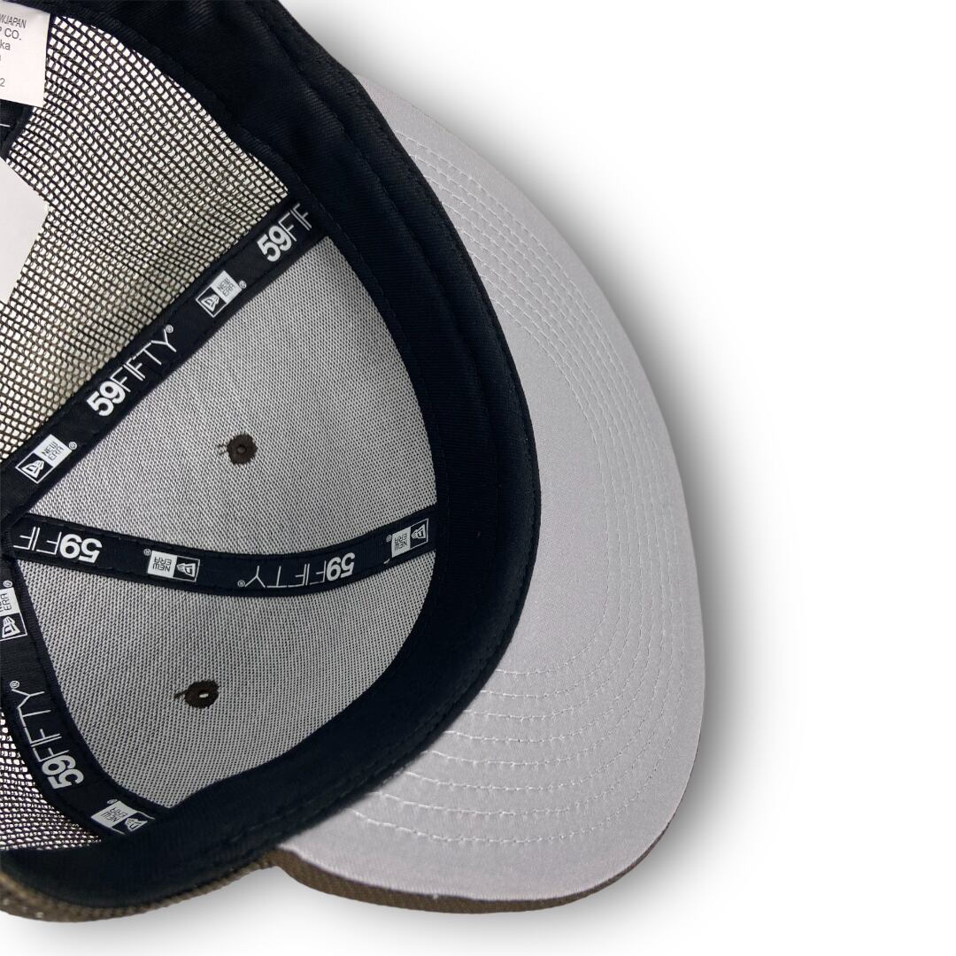 ボックスロゴが施されたニューエラボディのメッシュベースボールキャップ。