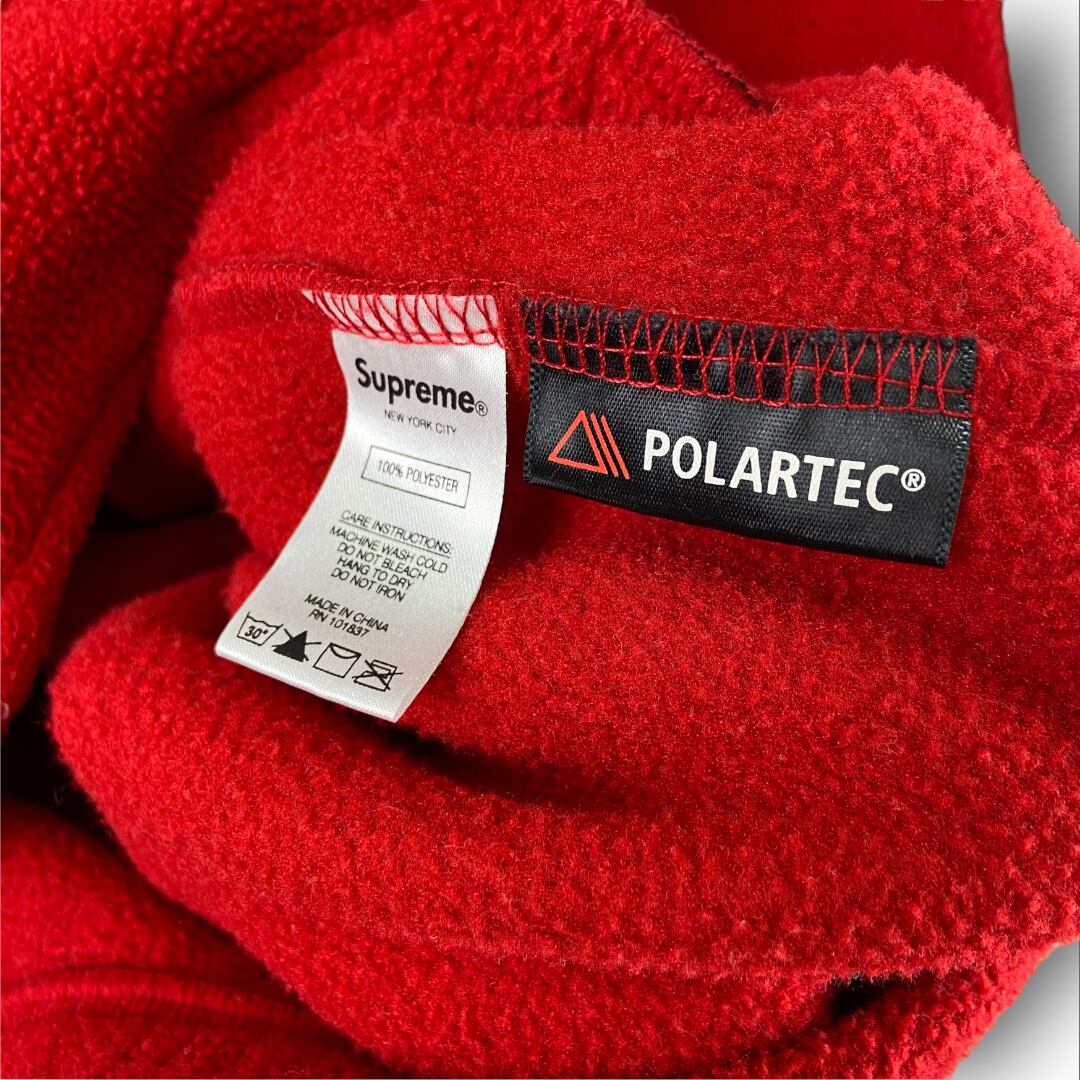ポーラテックフリースを使用したシュプリームのフードジャケット。フロントにはスモールボックスロゴが刺繍で入り、フードにはブランドネームが立体的に施されています。