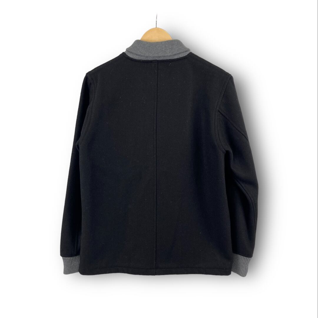 メルトンを使用したKNOWLEDGEのジャケットになります。襟、袖口はリブ仕様になり、フロントは比翼仕立てになるため防寒性に優れます。