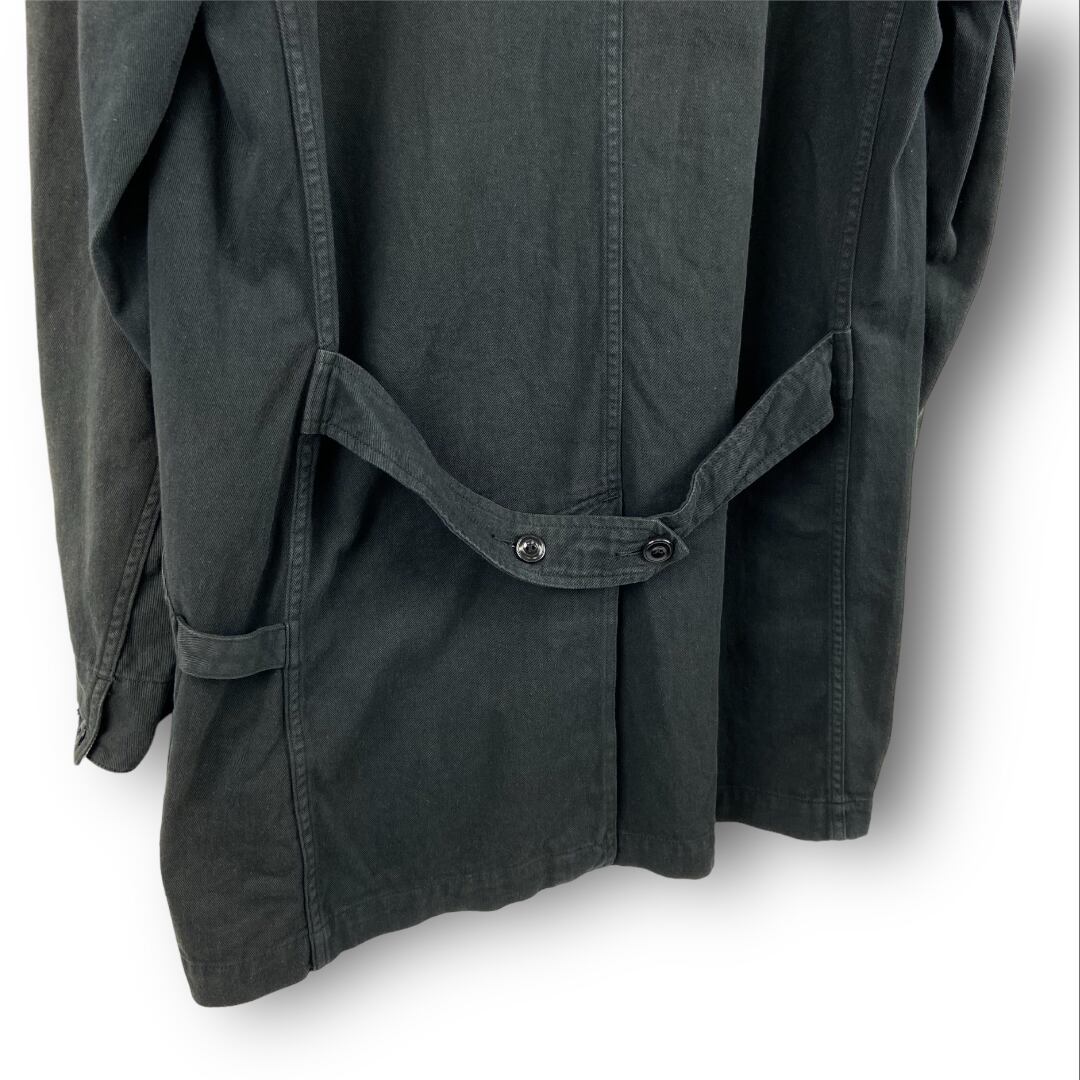胸にフェルト刺繍ワッペンが施されたダントンのコットンコートになります。テーラードカラーになり、バックベルトが付く仕様になります。