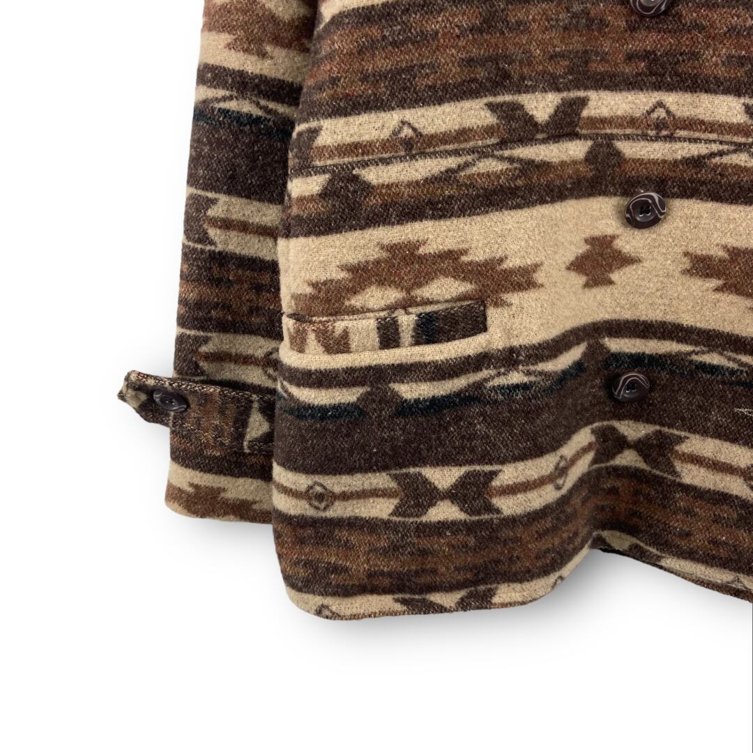 アーバンリサーチのショートコート。全体にはネイティブ柄が施され、裾部分にはポケットが付きます。※ポケットにはしつけ糸が施されています。