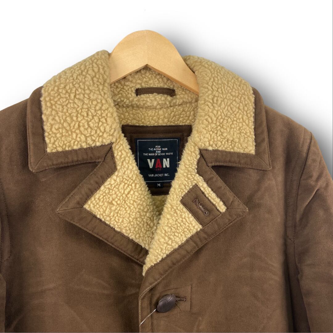 ボディ裏地にボア、袖裏地にキルティングが施されたバンジャケットのランチコート。