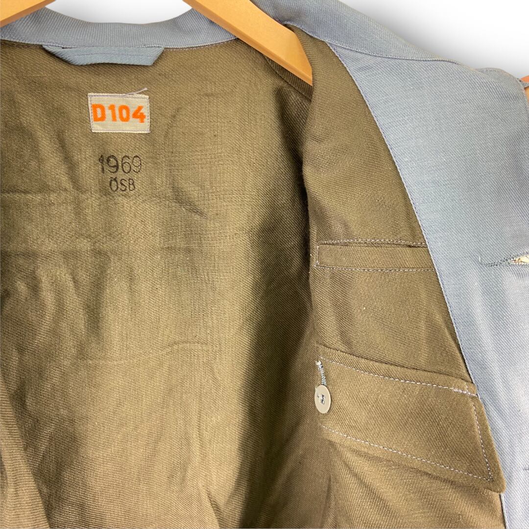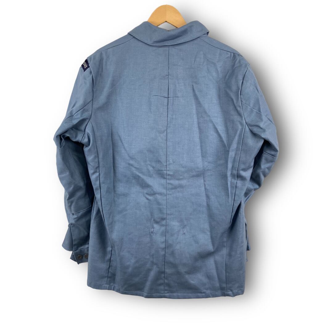 スウェーデンにおける防衛の一翼を担っていた民間防衛(Civilforsvar)で使用されていたフィールドジャケット。1960年~1980年代にかけて軍で採用されていたM-59のデザインはそのままに、民間向けにカラーリングをライトブルーに変更したアイテムです。ウエストまわりに設けられた大ぶりのフラップポケットや、肘の摩耗を防ぐためのあて布、絞りこまれたウエストなど、野戦用ジャケットとしての機能性だけでなく、どこかハンティングジャケットのような優雅さを感じさせます。重厚な質感のコットンツイルで、着込めば着込むほどに風合いが増すのが特徴です。無駄のないミニマルなデザインと、軍モノらしからぬ綺麗なシルエットになります。