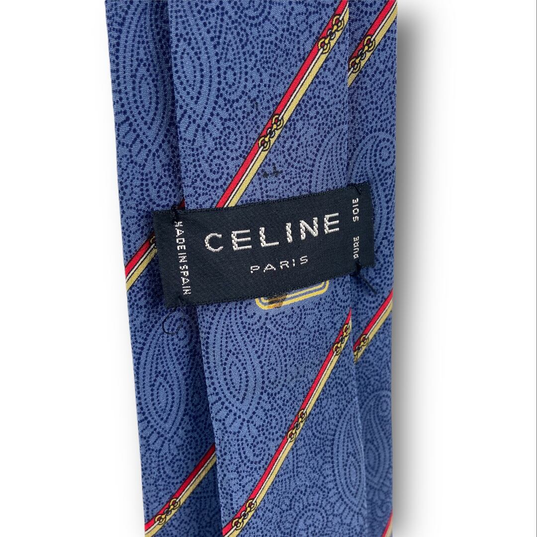 オリジナルのペイズリー柄が施されたセリーヌのネクタイになります。先端裏部分には織りでブランドロゴが入ります。