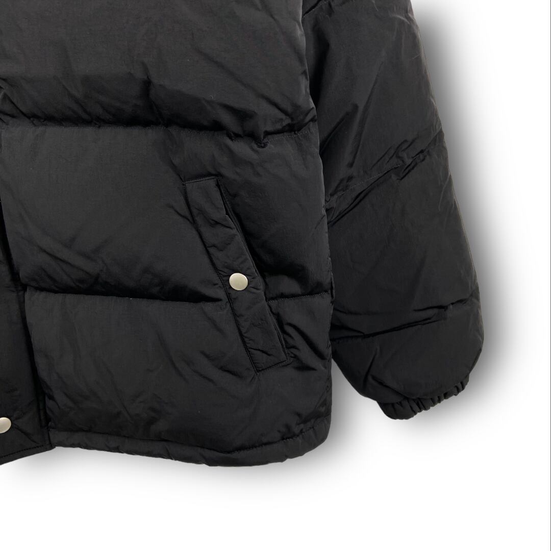 左胸にストックロゴの刺繍の入ったステューシーのダウンフィルパッファージャケット。前開きはジップ+スナップボタンの比翼仕立て、両袖口はゴムシャーリングになるため防風性に優れます。裾にソローコード付き。