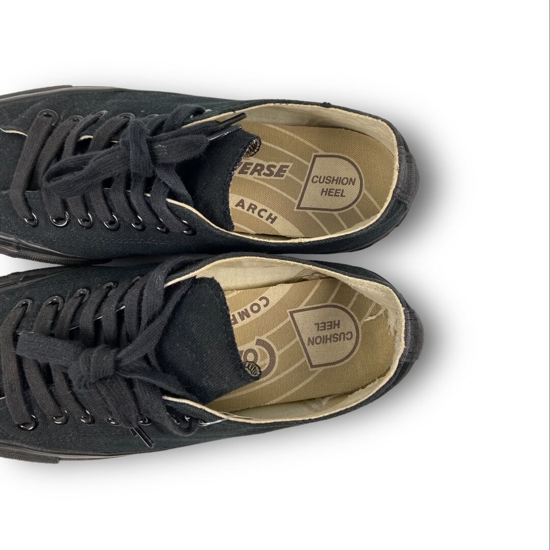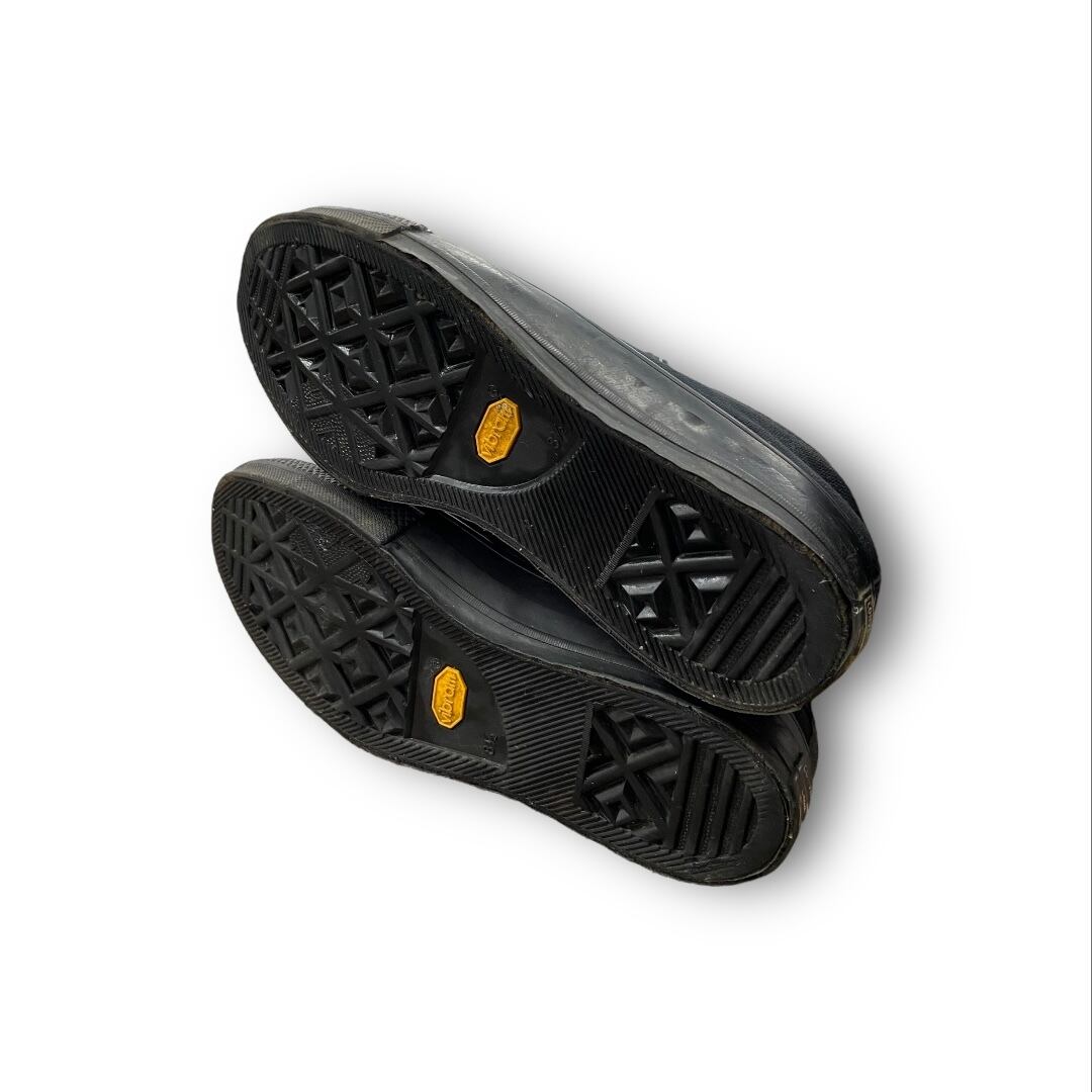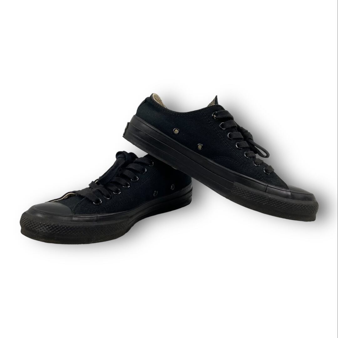 CONVERSE ADDICTの17AW CHUCK TAYLOR CANVAS OX(1CK925)です。コンバースの中でも特別なラインとして発売されている、コンバースアディクト。三つ星ヒールパッチ、プレイヤーズネーム、シャープなトゥキャップなど、1960年代のチャックテイラーに見られるシルエットやディテールは踏襲しつつ、ヴィブラムソールやアウトラストを採用するなど、美しく機能的に昇華させた逸品です。オールブラックで仕上げられており、様々なスタイルにお使い頂けるアイテムです。
