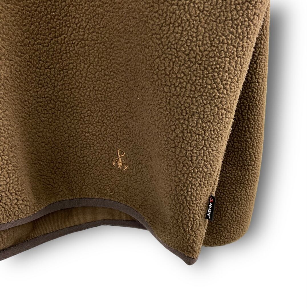 薄手で軽量ながらも高い保温性と肌にしなやかに寄り添う伸縮性をあわせもつポーラテック社の高機能ボアフリースを使用したクルーネックトップです。ドロップショルダーのルーズシルエットで仕上げた一枚になります。
