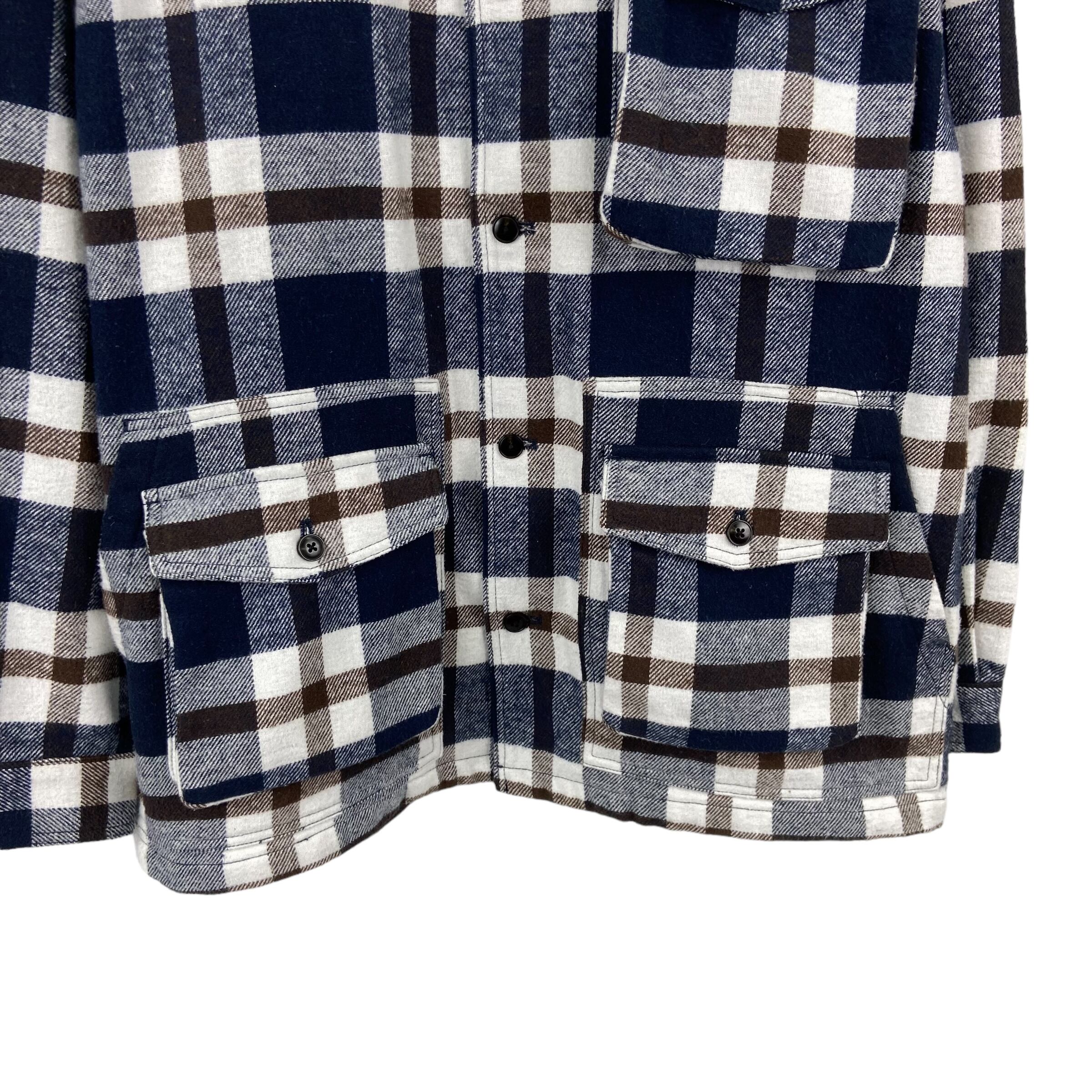 優しい肌触りと起毛感が着用感◎。定番のチェック柄で合わせやすいデザイン。ゆとりのあるリラックスシルエットでスウェットやニットなど幅広く合わせていただけます。フィッシングジャケットに落とし込んだマルチポケットデザインが特徴。