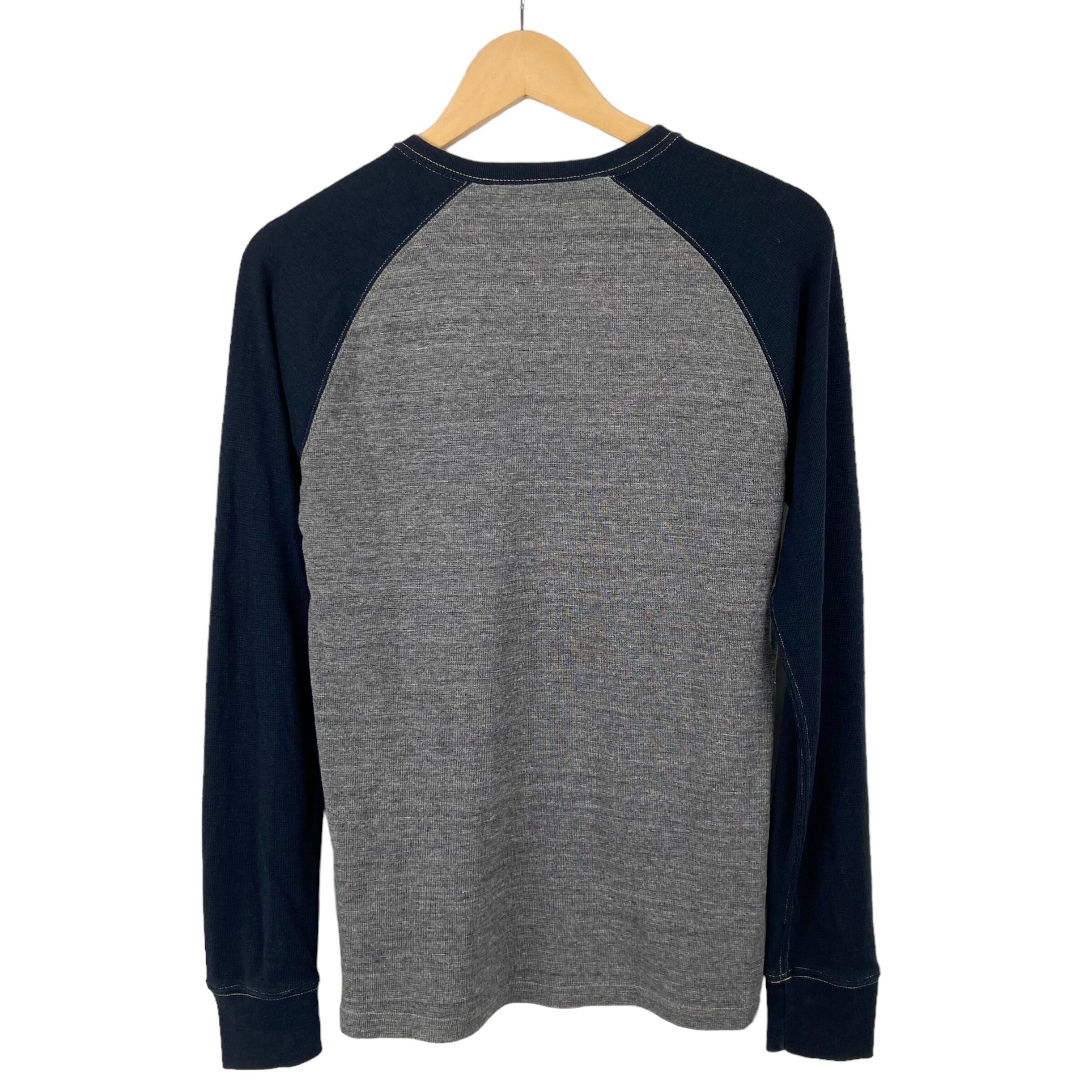胸にブランドアイコンが刺繍されたラグランスリーブ使用のサーマルになります。ヘンリーネック仕様になり、襟、袖口はリブになります。